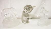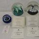 Caithness Cauldron Paperweight by Innes Burns with stand & certificate, Caithness Starlight by Colin Terris with certificate & stand & Miniature Thistle with blue ground & centre thistle surrounded by white floral canes & Moon Crystal both with leaflets (4)