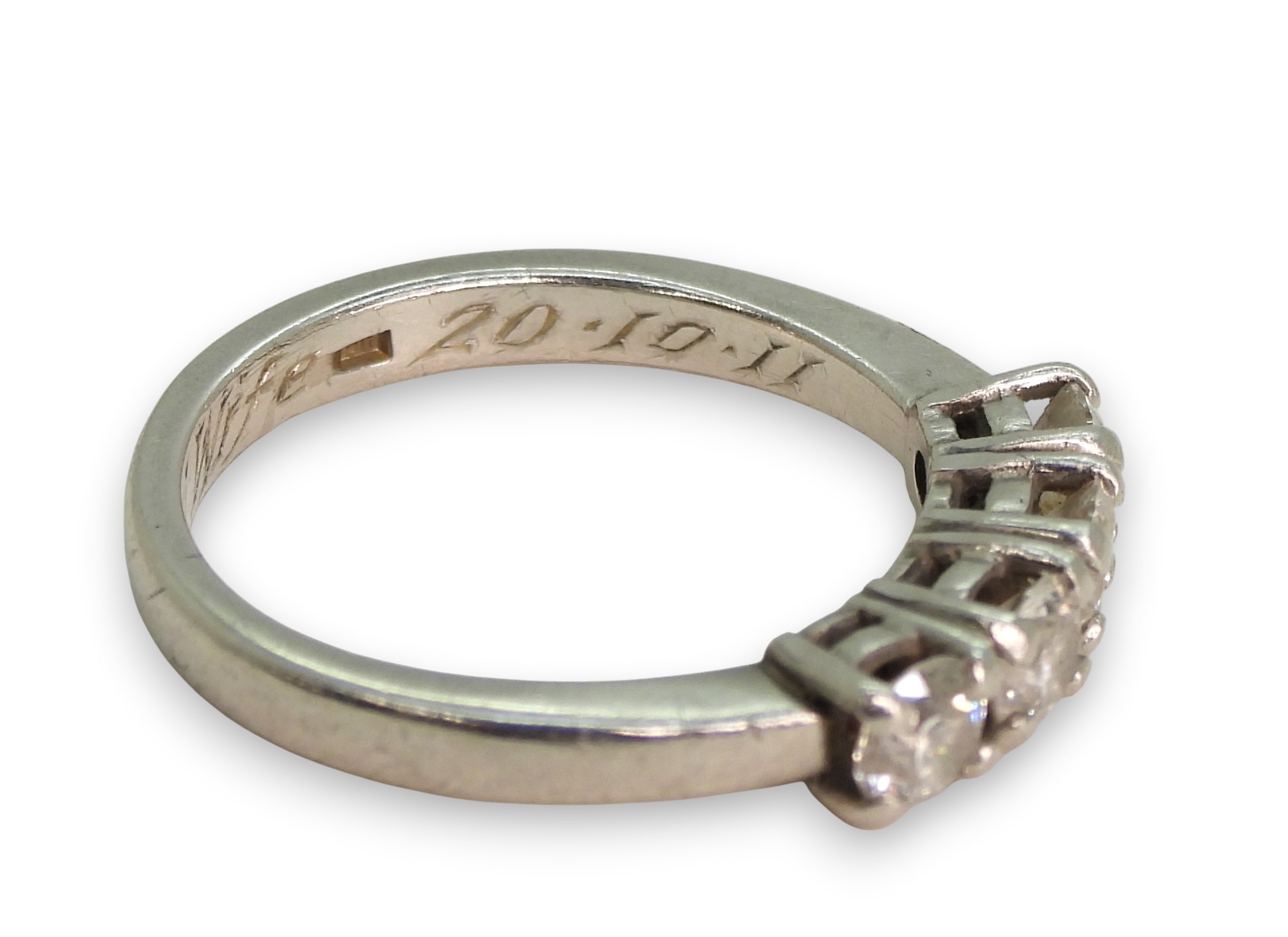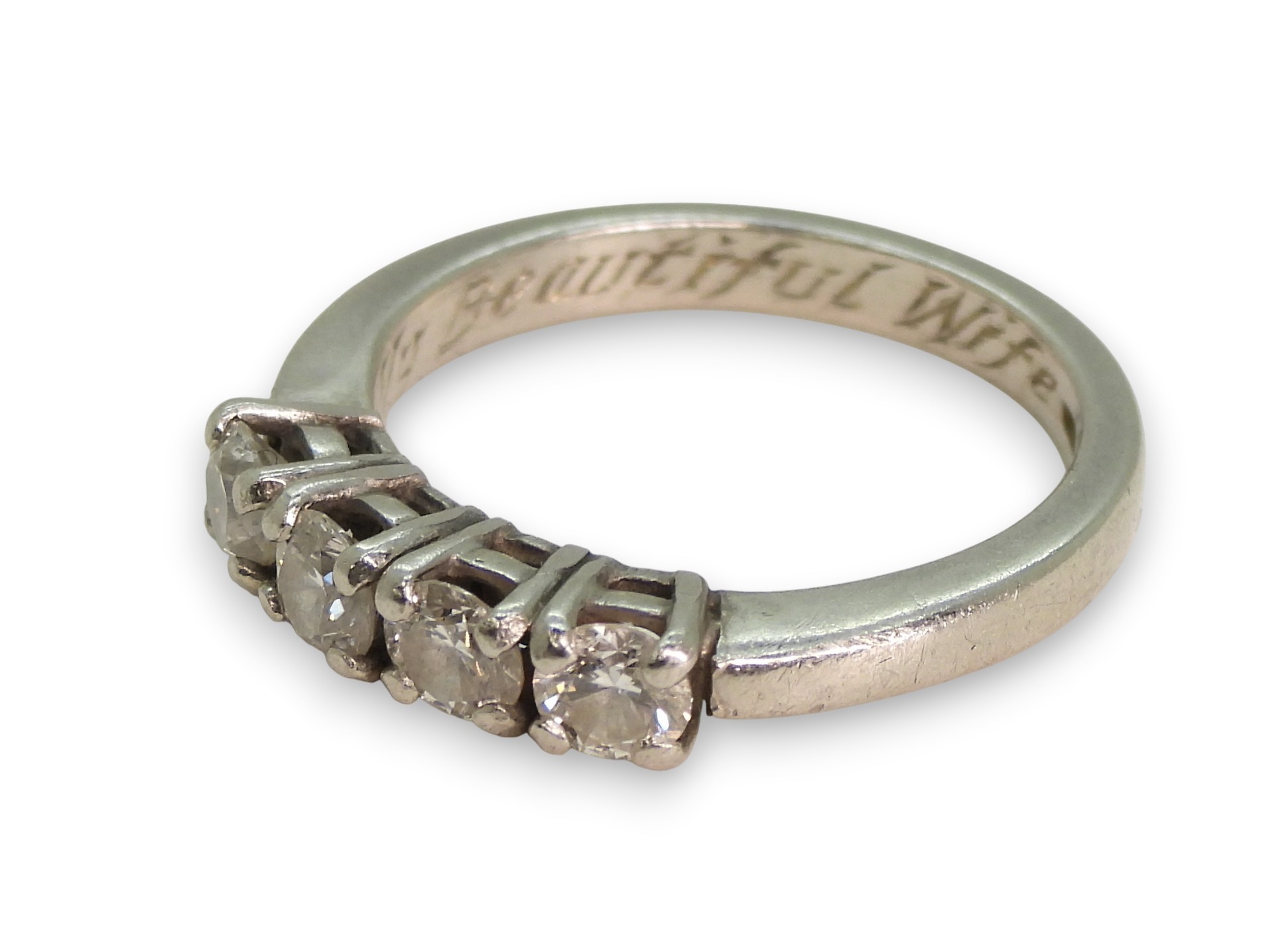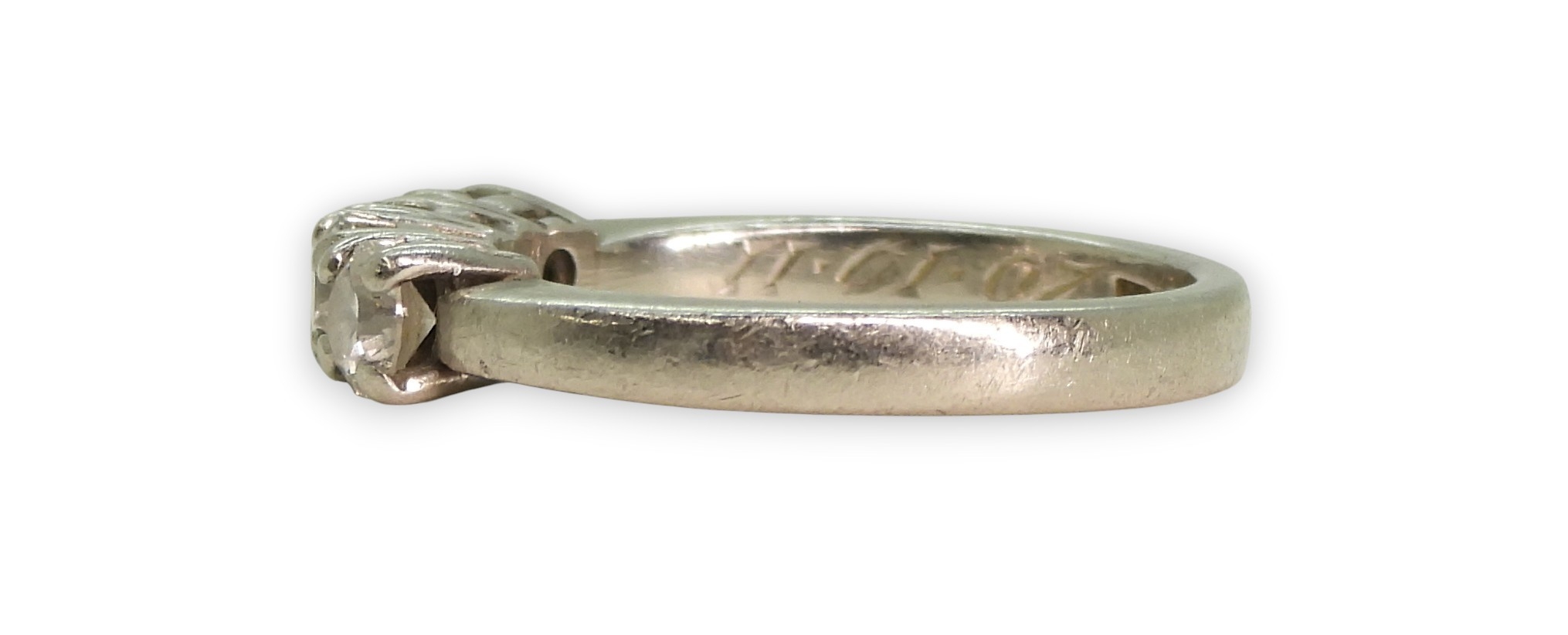 Light general wear, the inner shank inscribed 'My Beautiful wife' no hallmark, but heavy for its size it can only be platinum.