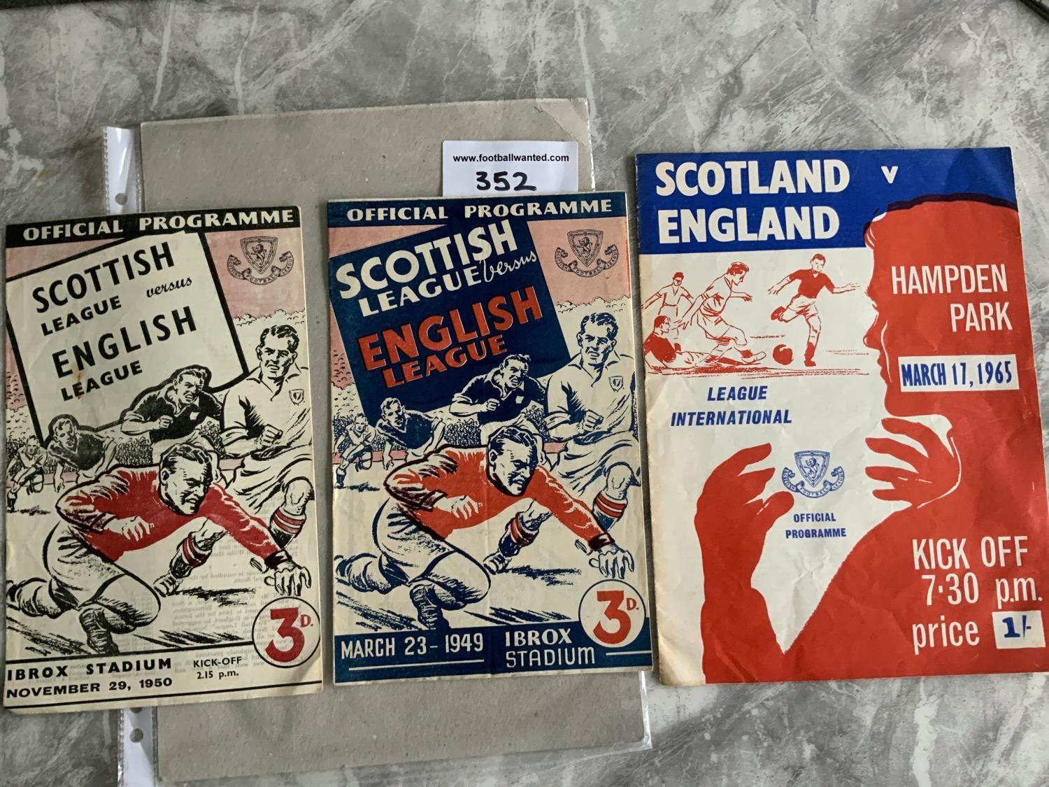 Scottish League v English League Football Programmes: 1949 1950 and 1965 Inter League matches in good condition. (3)