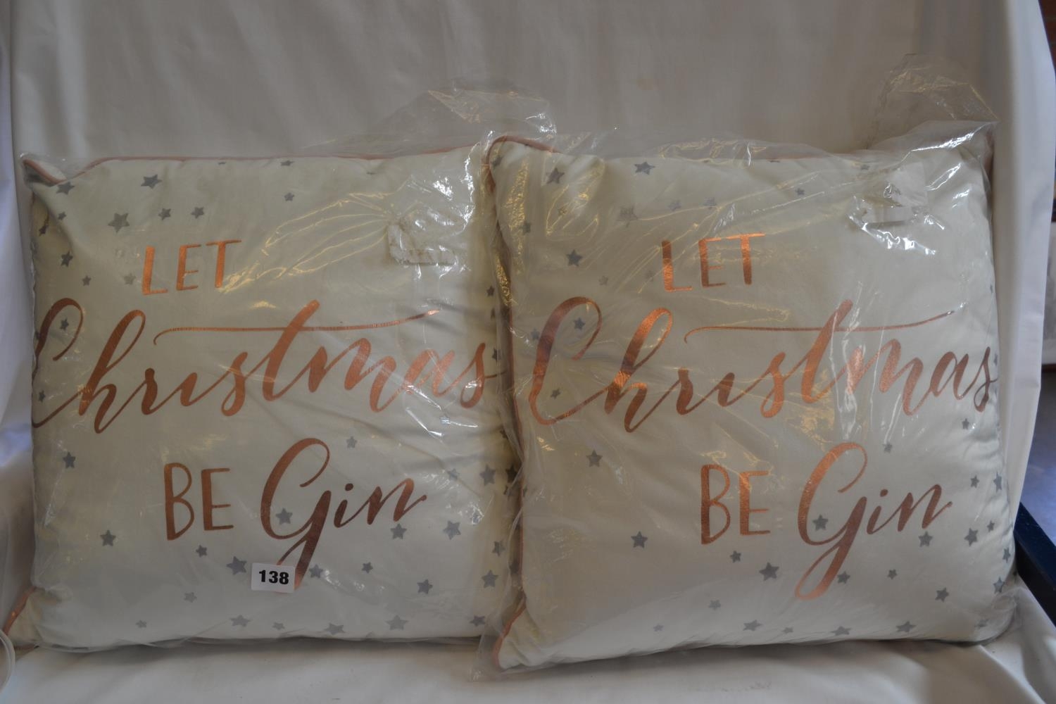 TWO "LET CHRISTMAS BE GIN" CUSHIONS