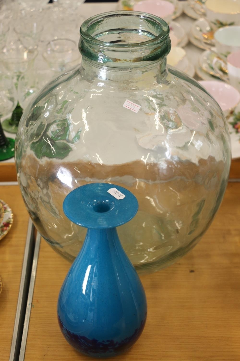 Glass carboy and a blue Art Glass vase.