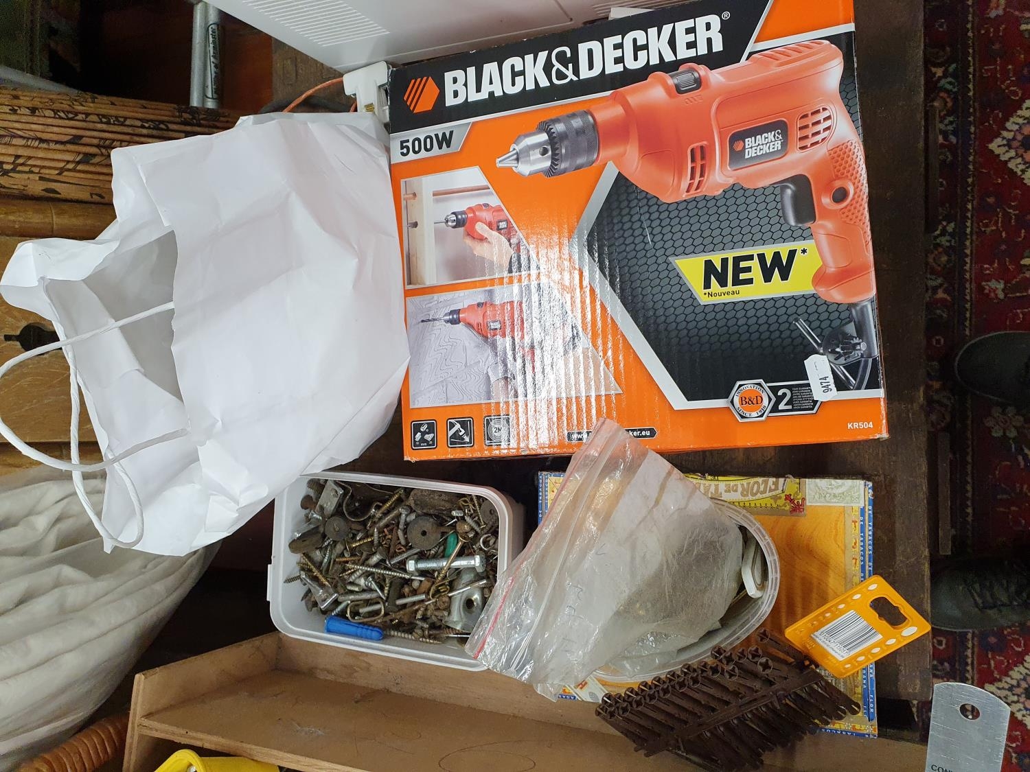 A quantity of various items along with a cane Seat.