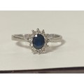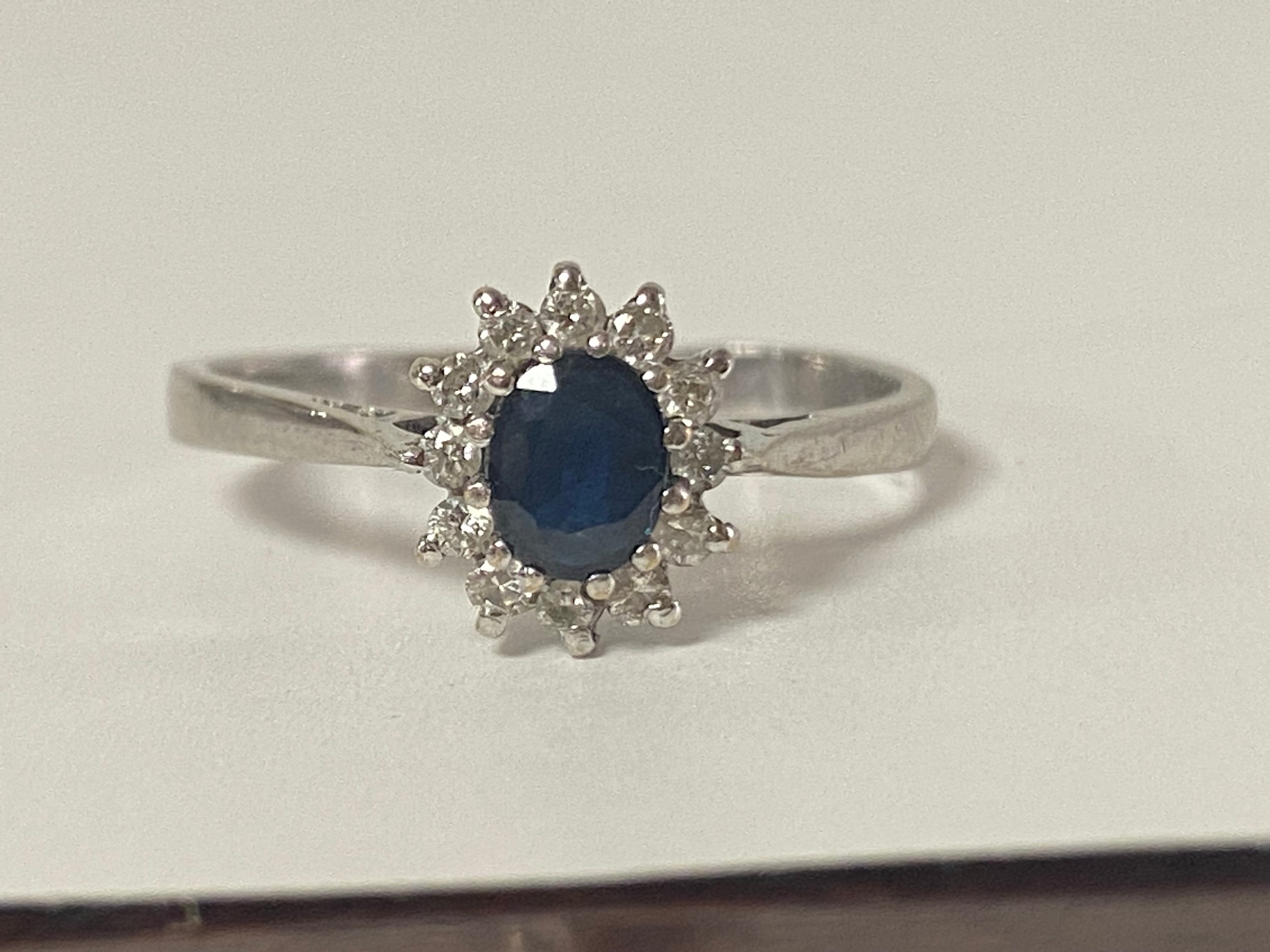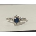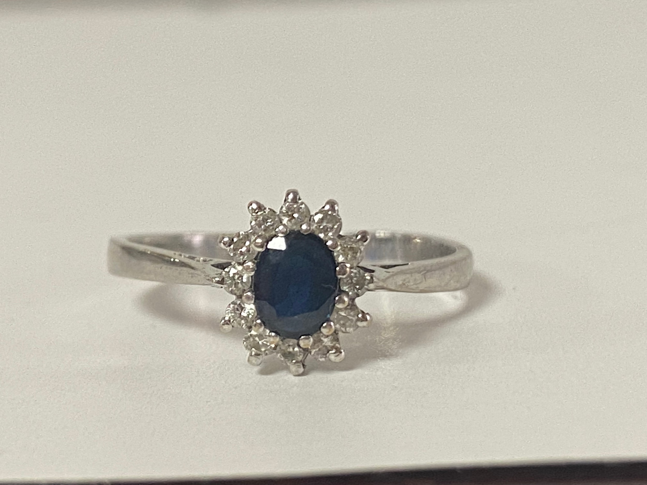 A sapphire and diamond cluster ring, set in 9ct white gold -