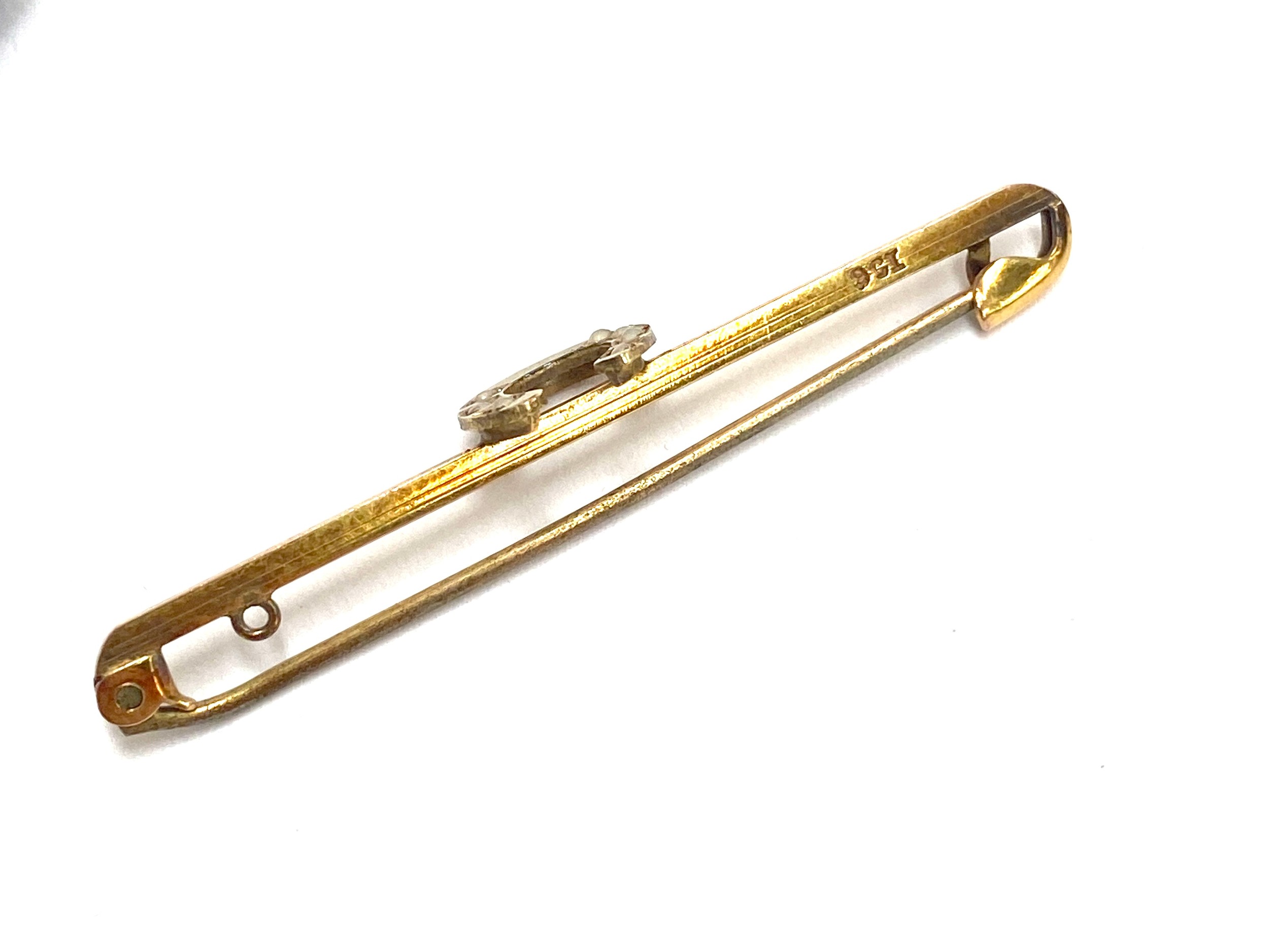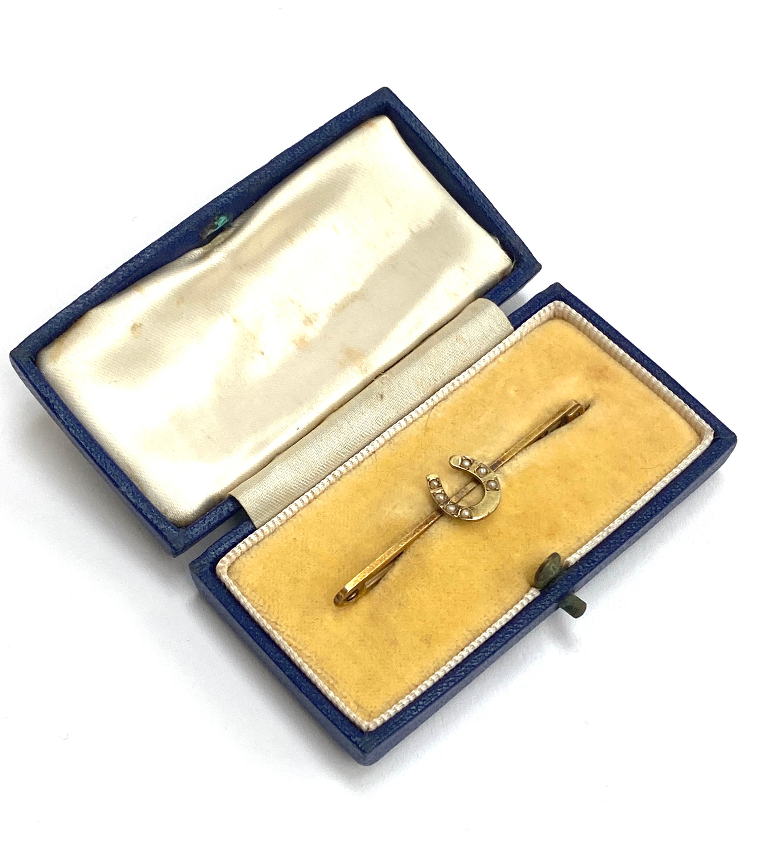 An 9ct gold horseshoe bar brooch set with seed pearls, 2g