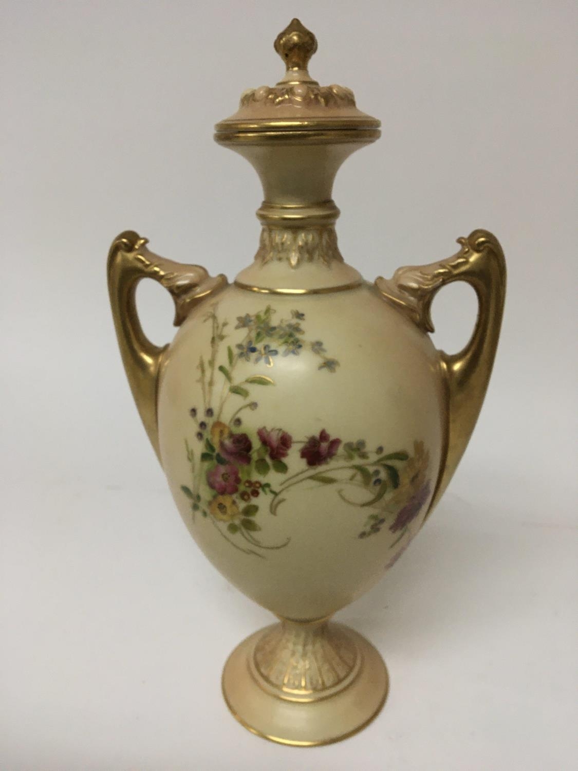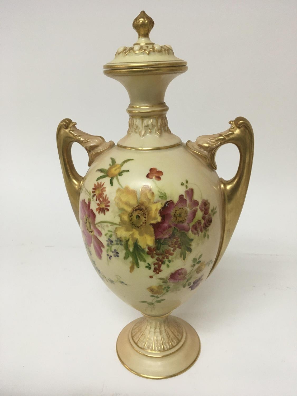A hand painted Royal Worcester porcelain vase with flowers and foliage and applied gilt height 29cm