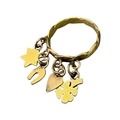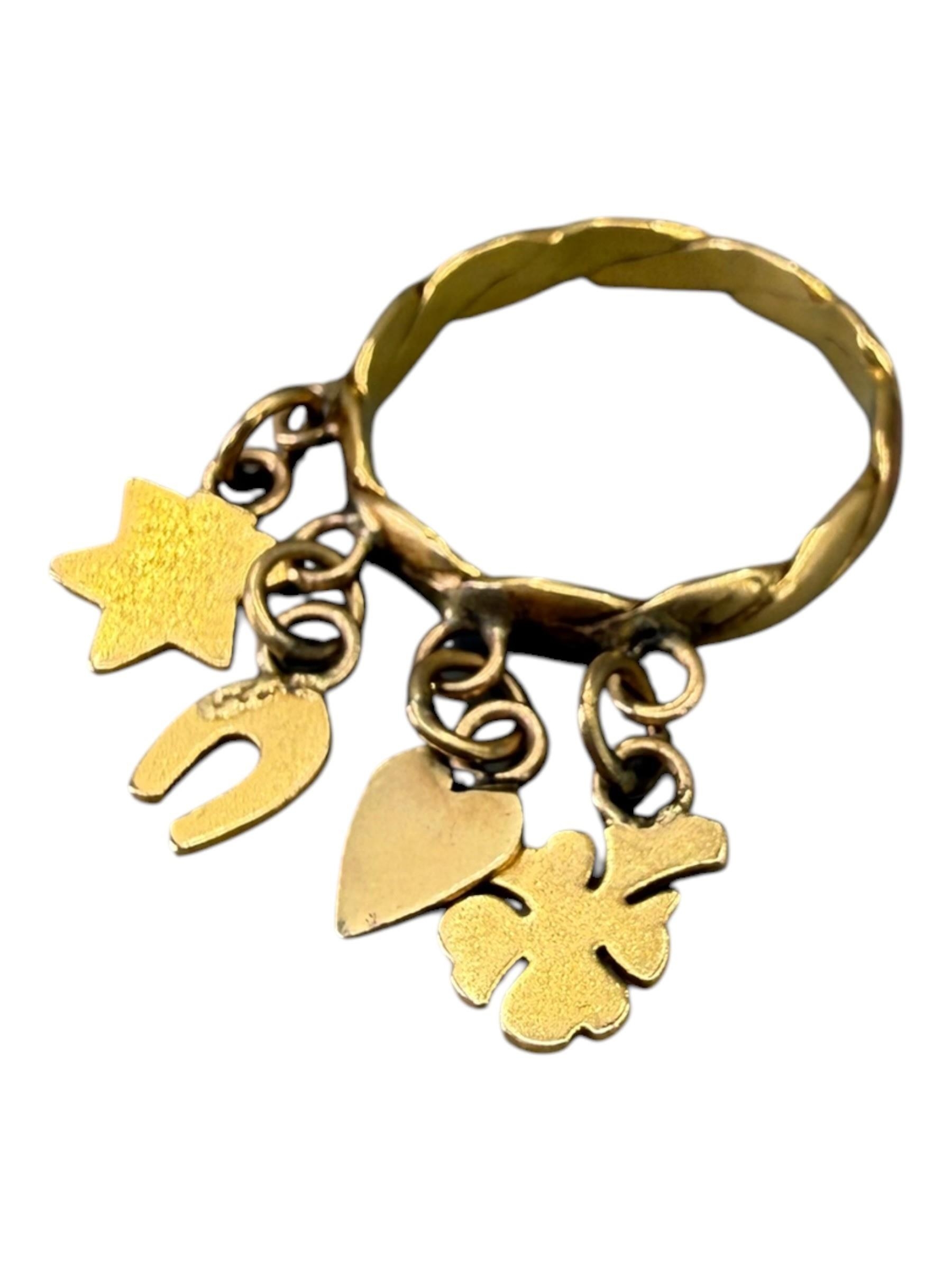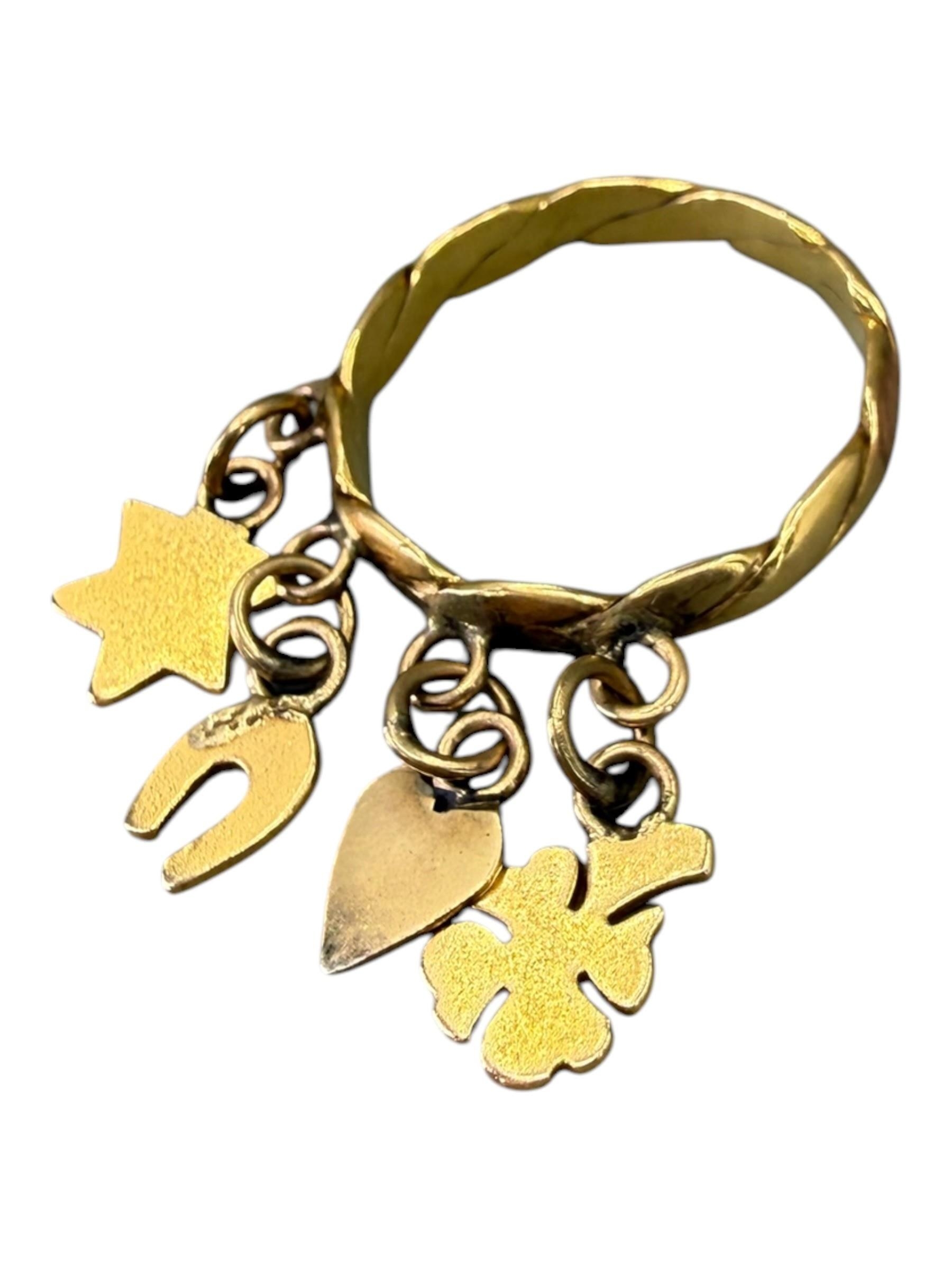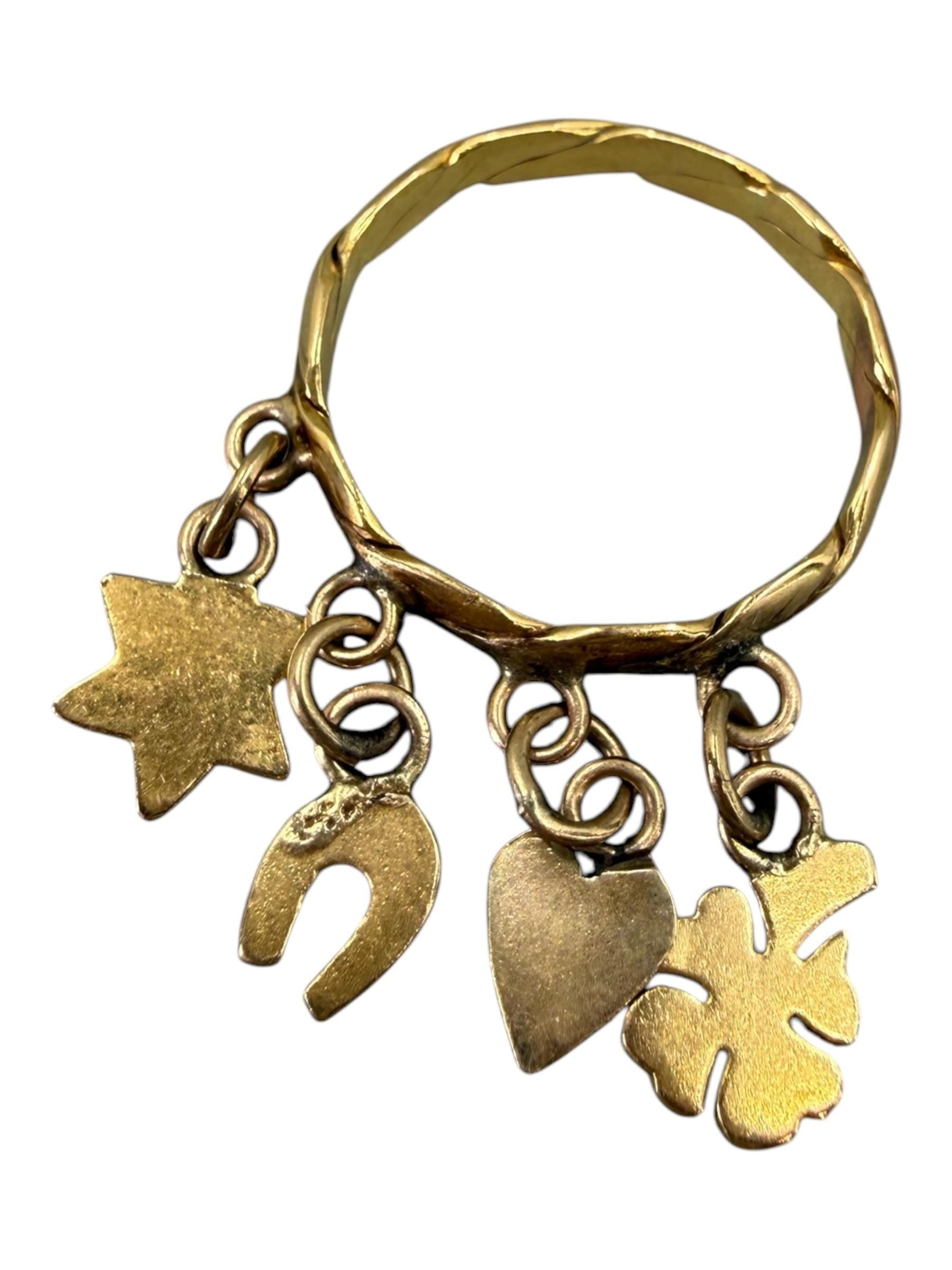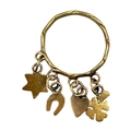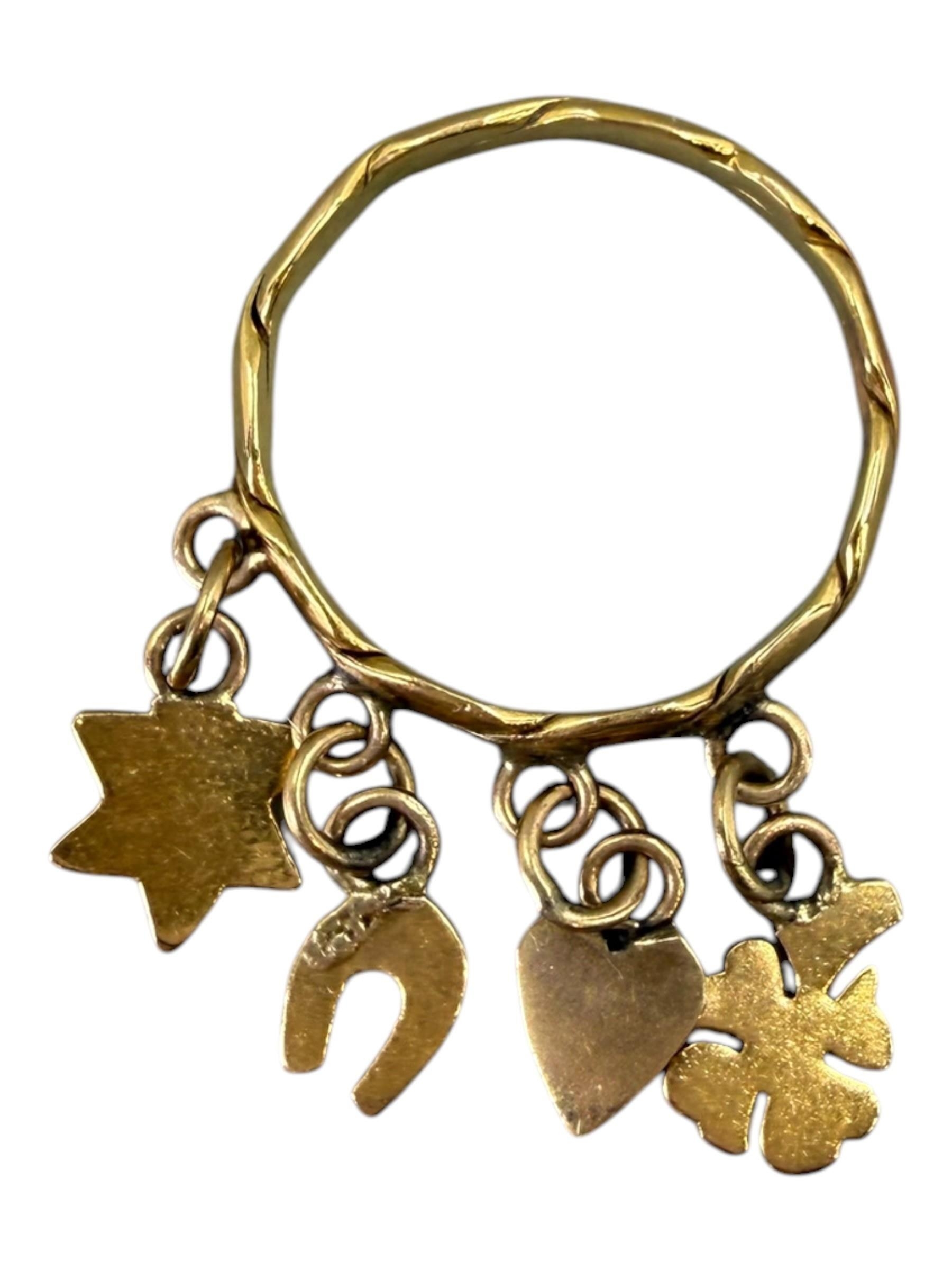 Charms comprising a four leaf clover, heart, horseshoe and star, attached to a stylised twist band, indistinctly marked to outer back shank.