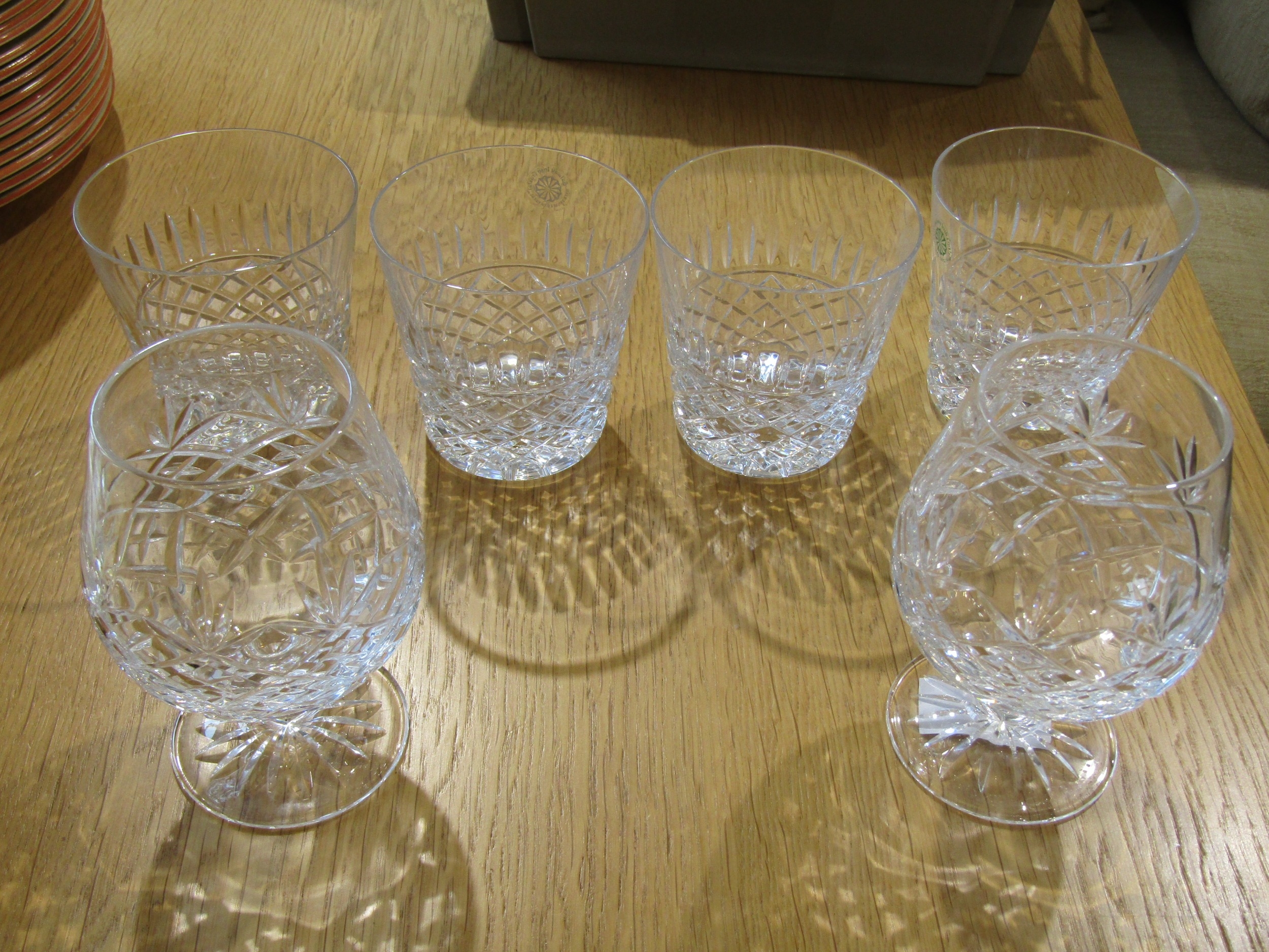 Four Galway crystal glass tumblers and two brandy balloons (6)