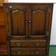 Oak Side Cabinet, 2 panelled doors over 2 long drawers on bracket supports with plate brass handles