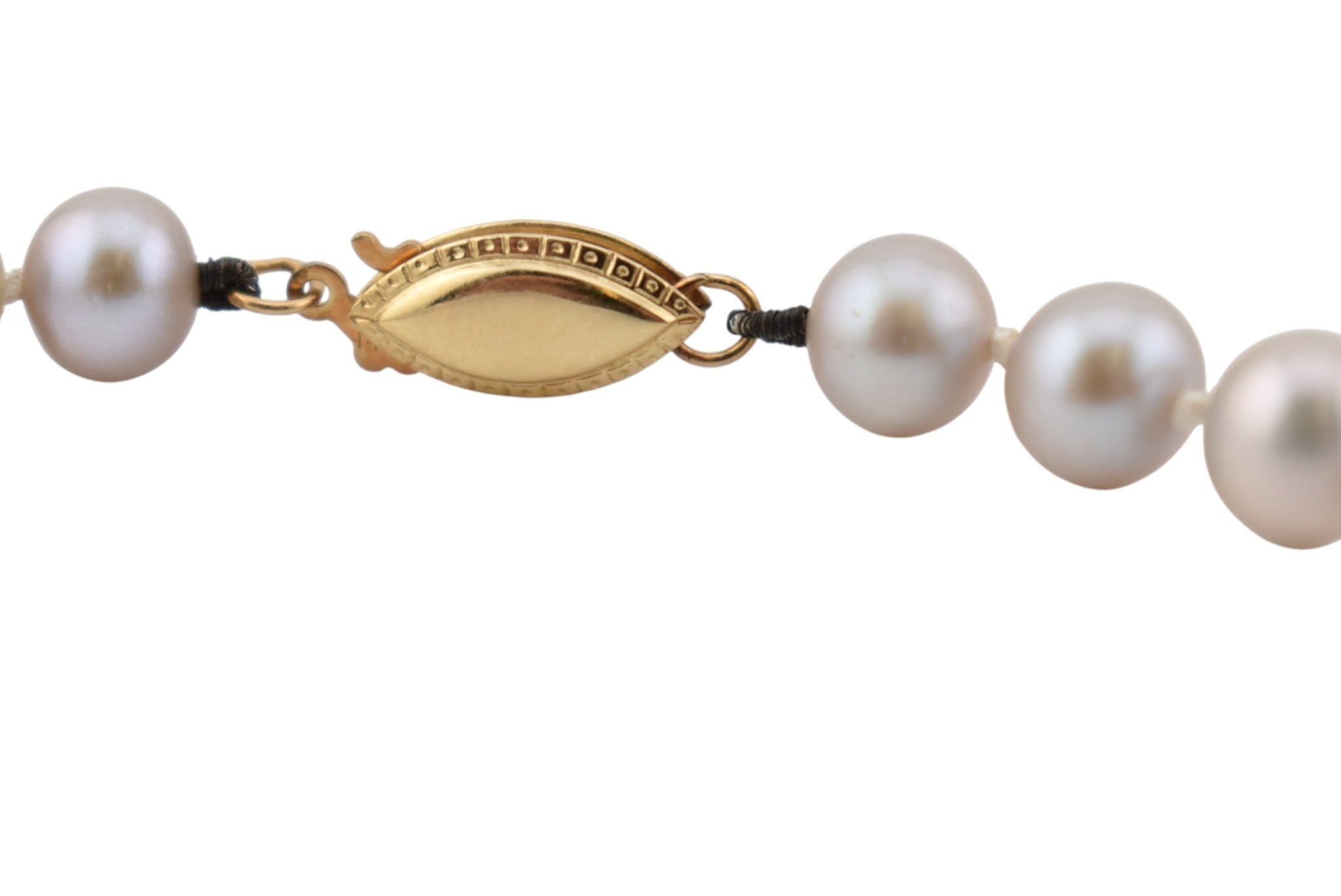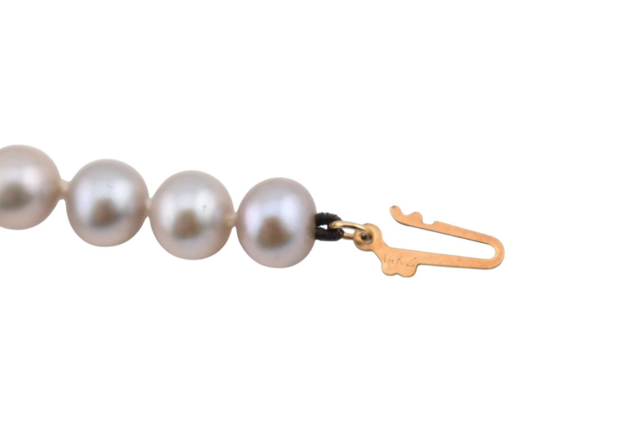 A 14ct gold and grey cultured pearl necklace. Weight 23g. Pearls 6mm diam. Measures 45cm approx