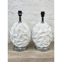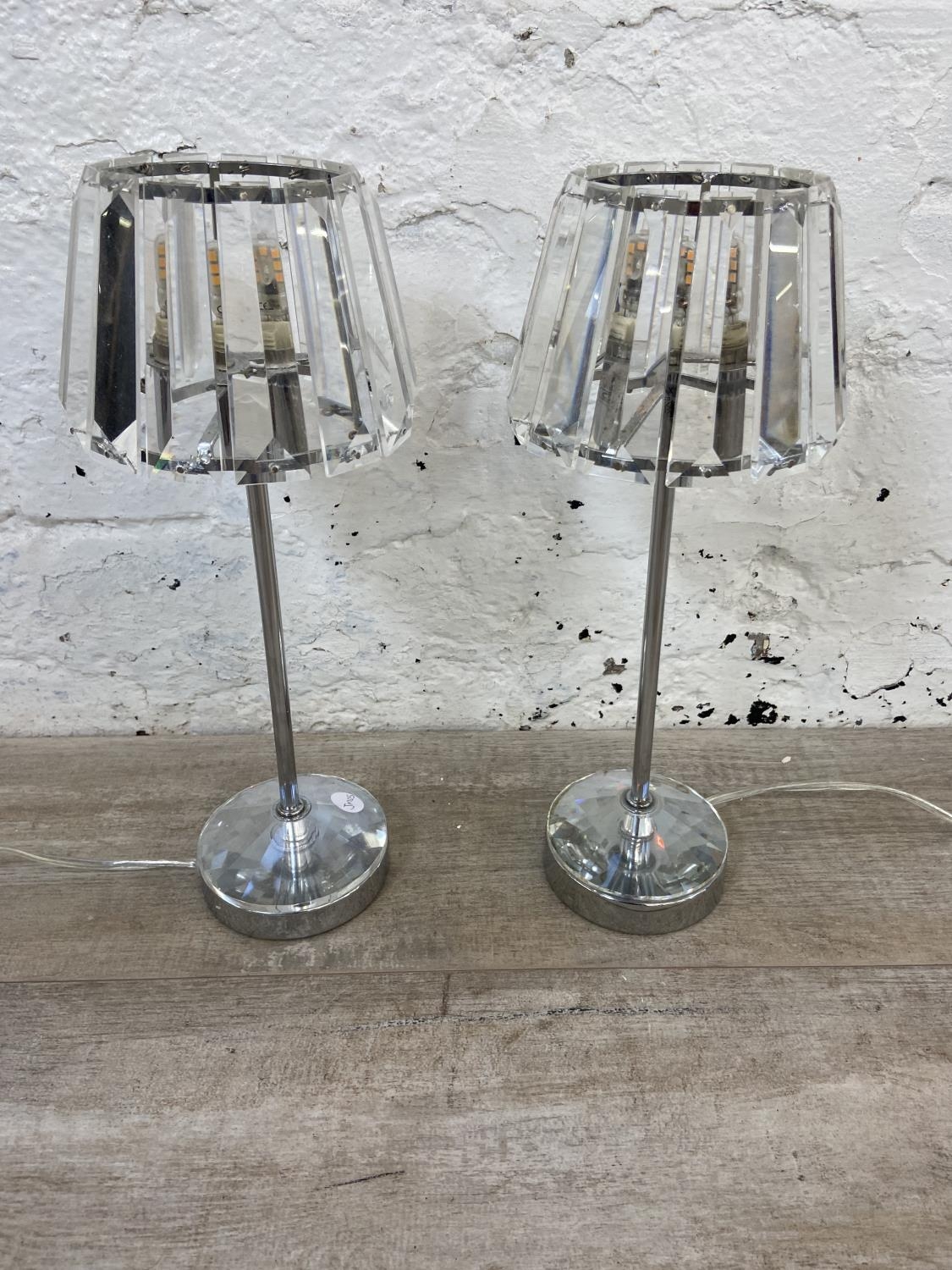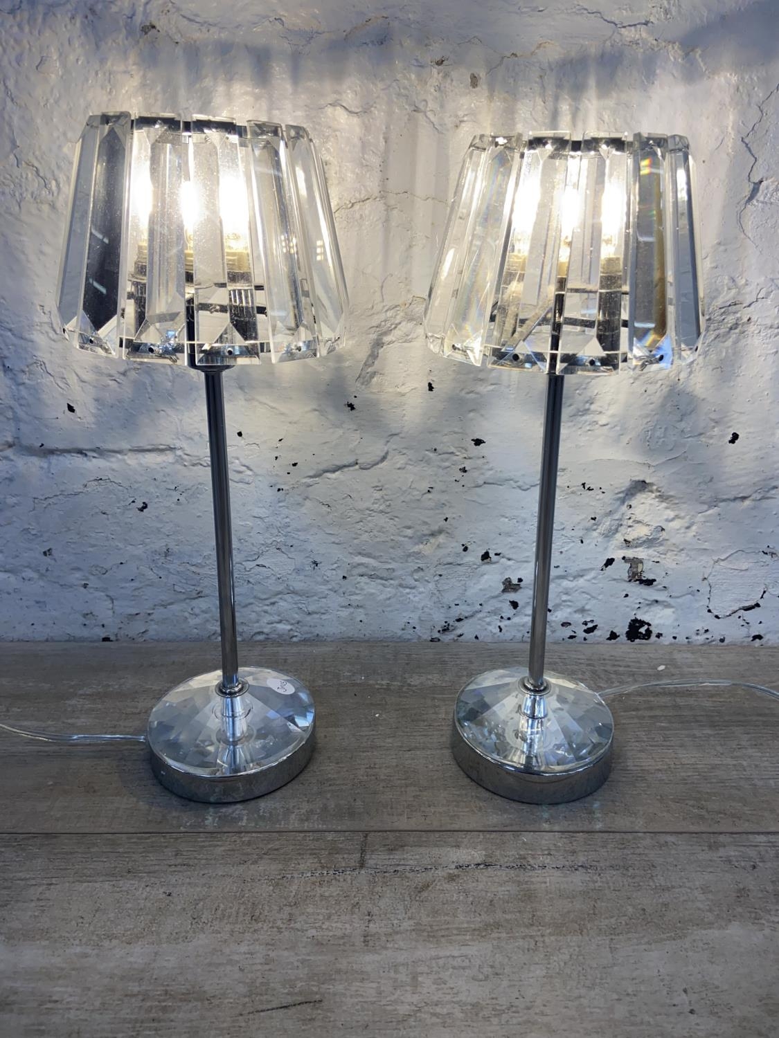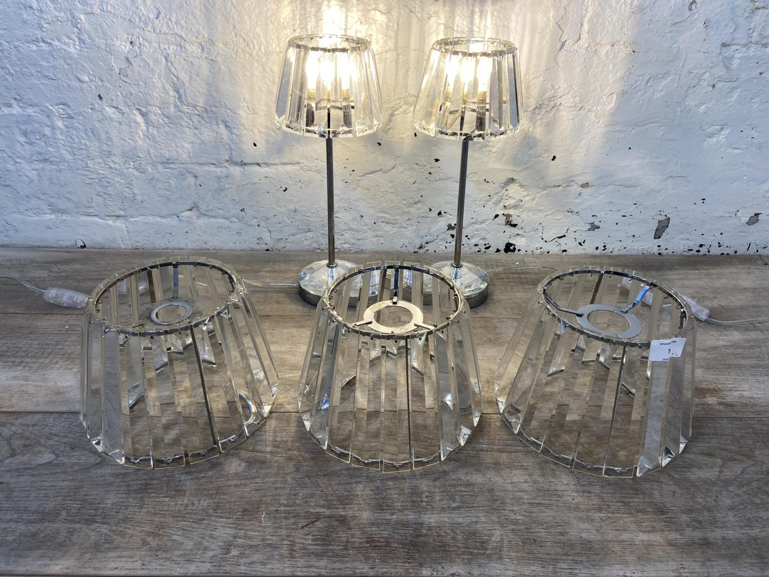 Five pieces of Laura Ashley Home crystal and chrome plated lighting, two table lamps - approx. 36cm high and three lightshades - approx. 15cm high