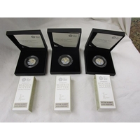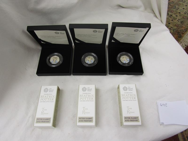 3 Tom Kitten 2017 UK 50p silver proof coins - Black box edition - COA 490, 491 & 492