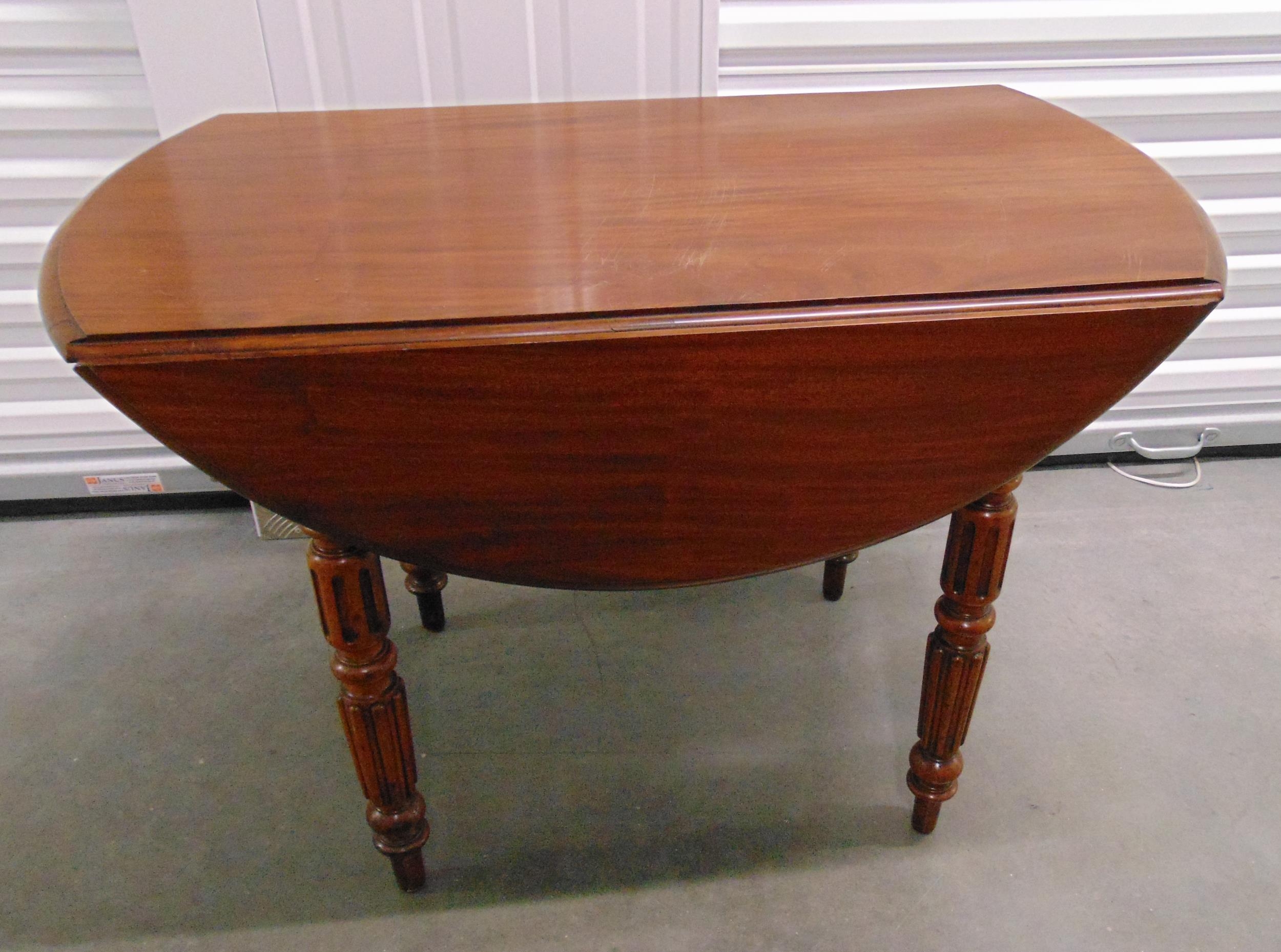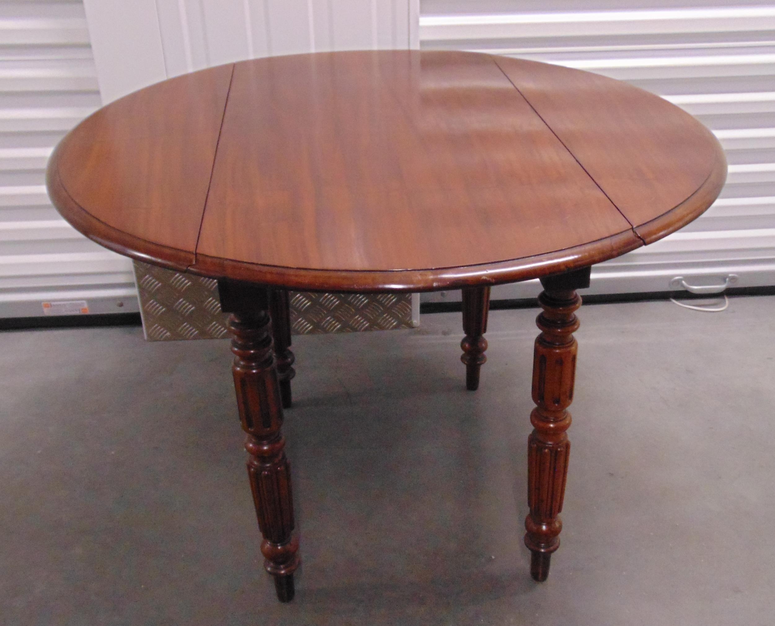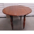 An early 20th century circular mahogany drop flap table on four turned supports, 66.5 x 98cm
