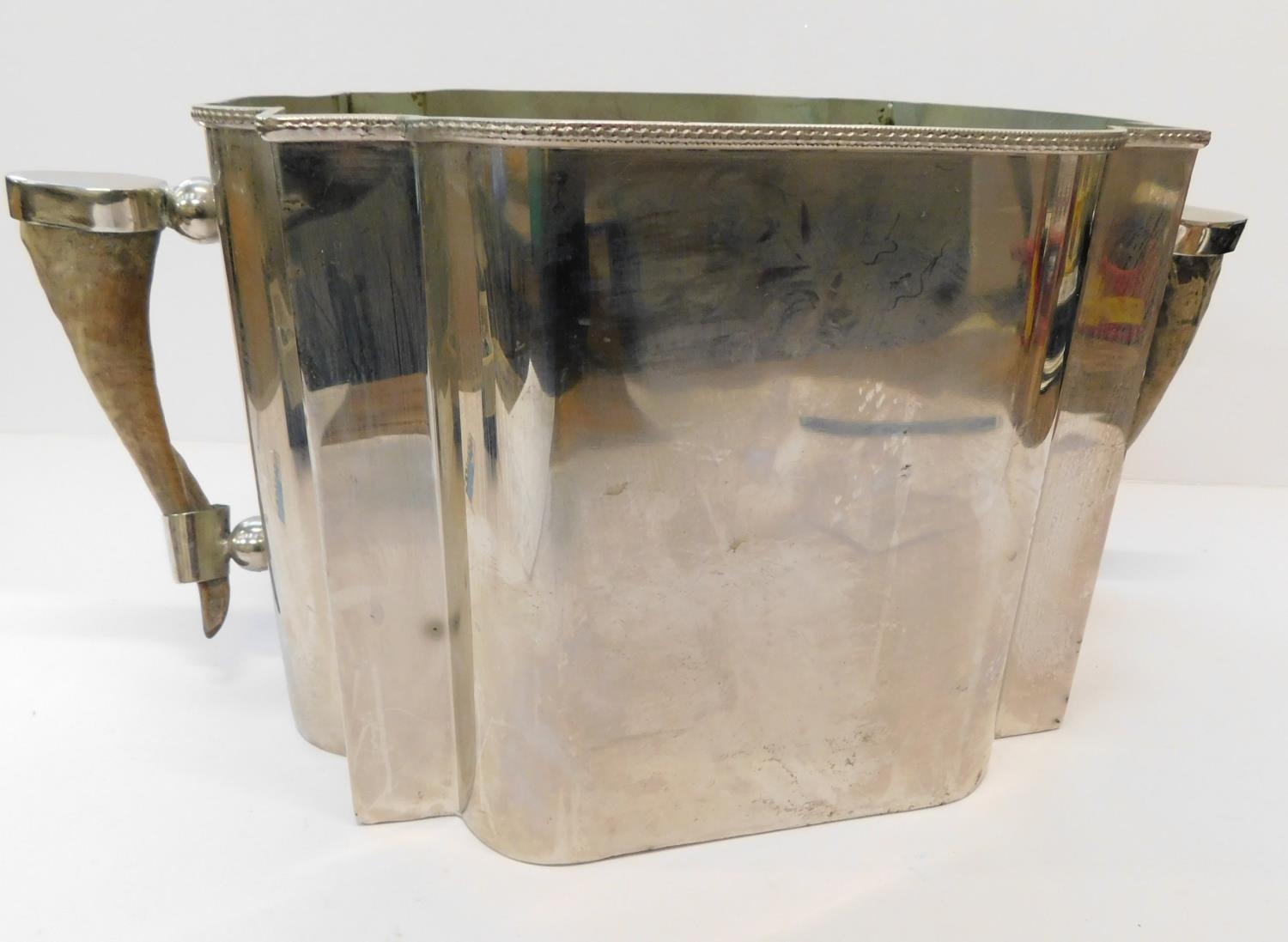 Large Art Deco style ice bucket with real horn handles