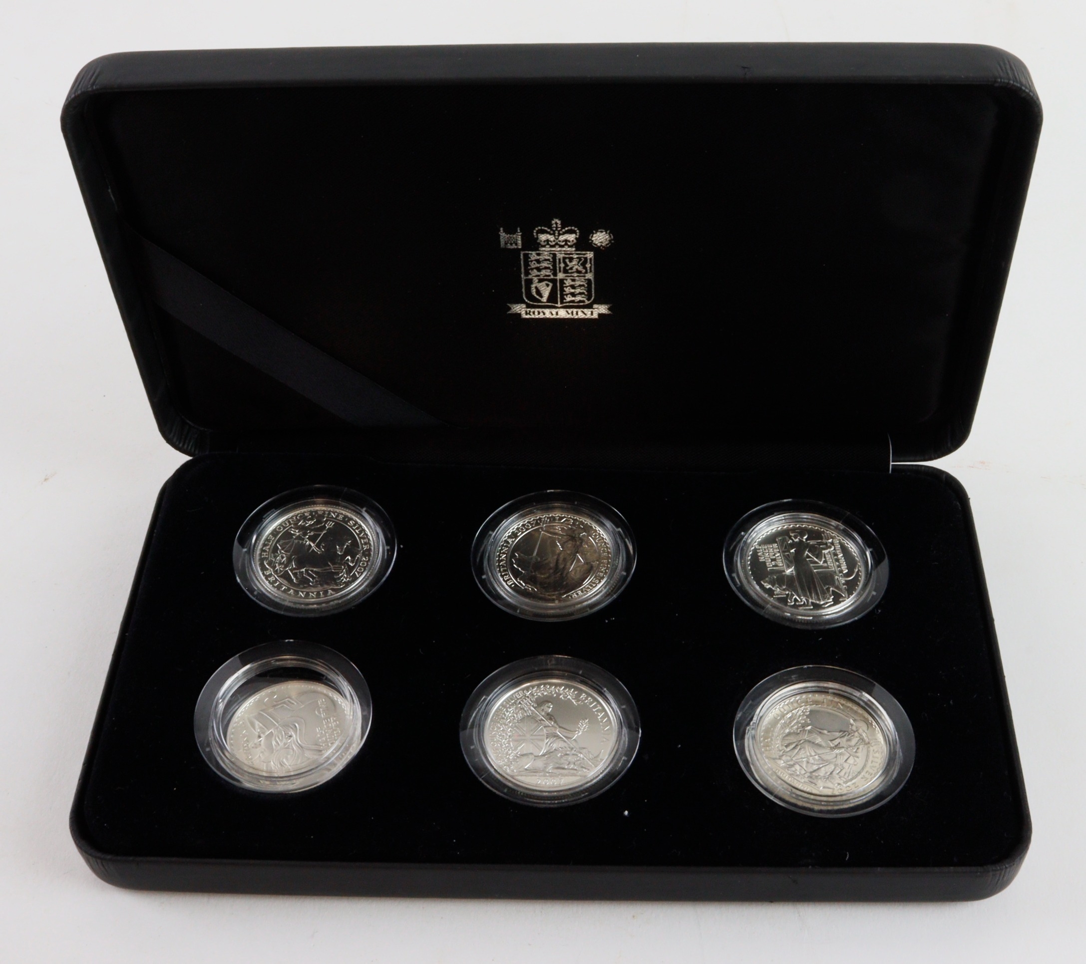 Britannia 2007 "20th Anniversary" Silver Proof six-coin One Pound collection. aFDC/FDC boxed but no certificate