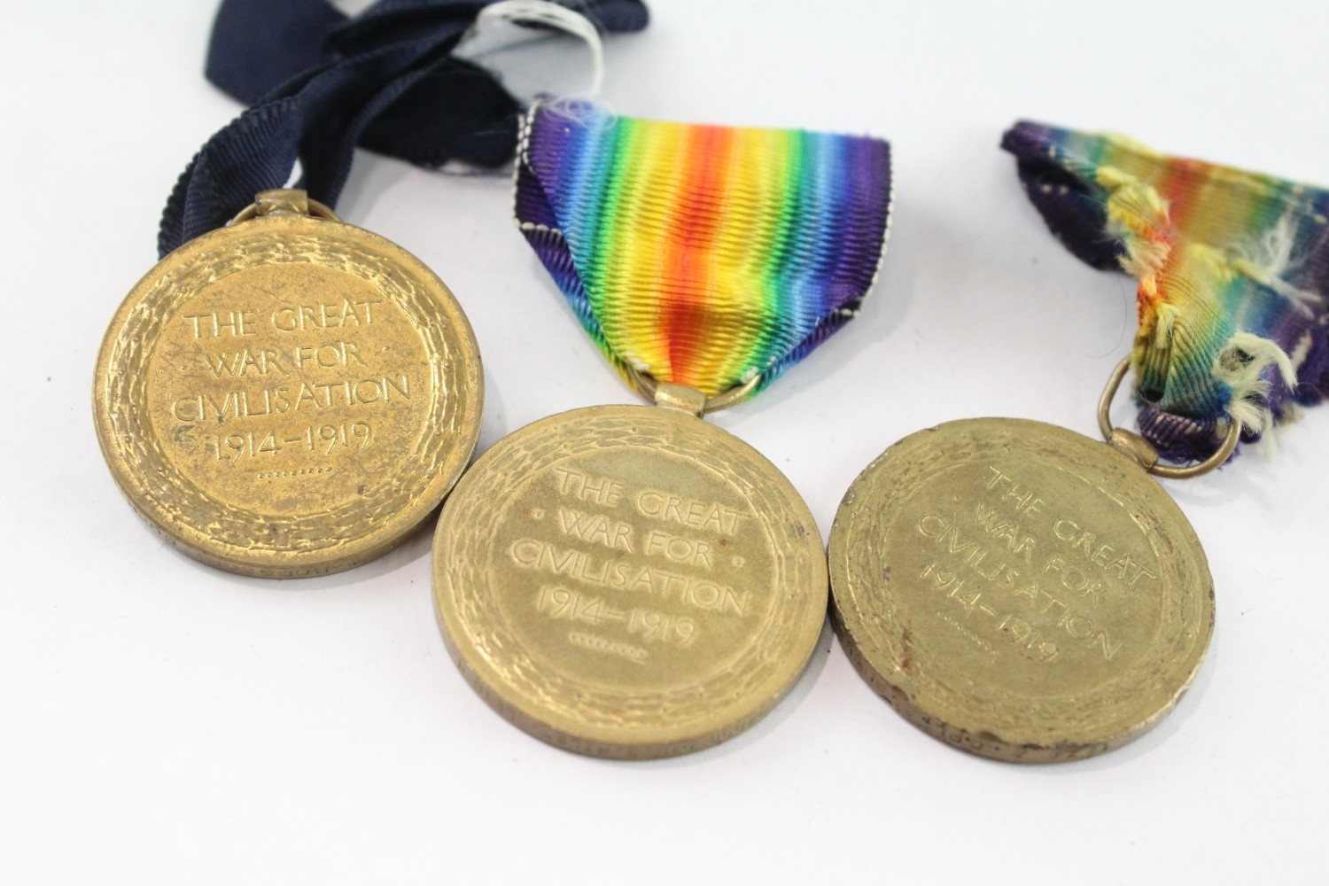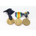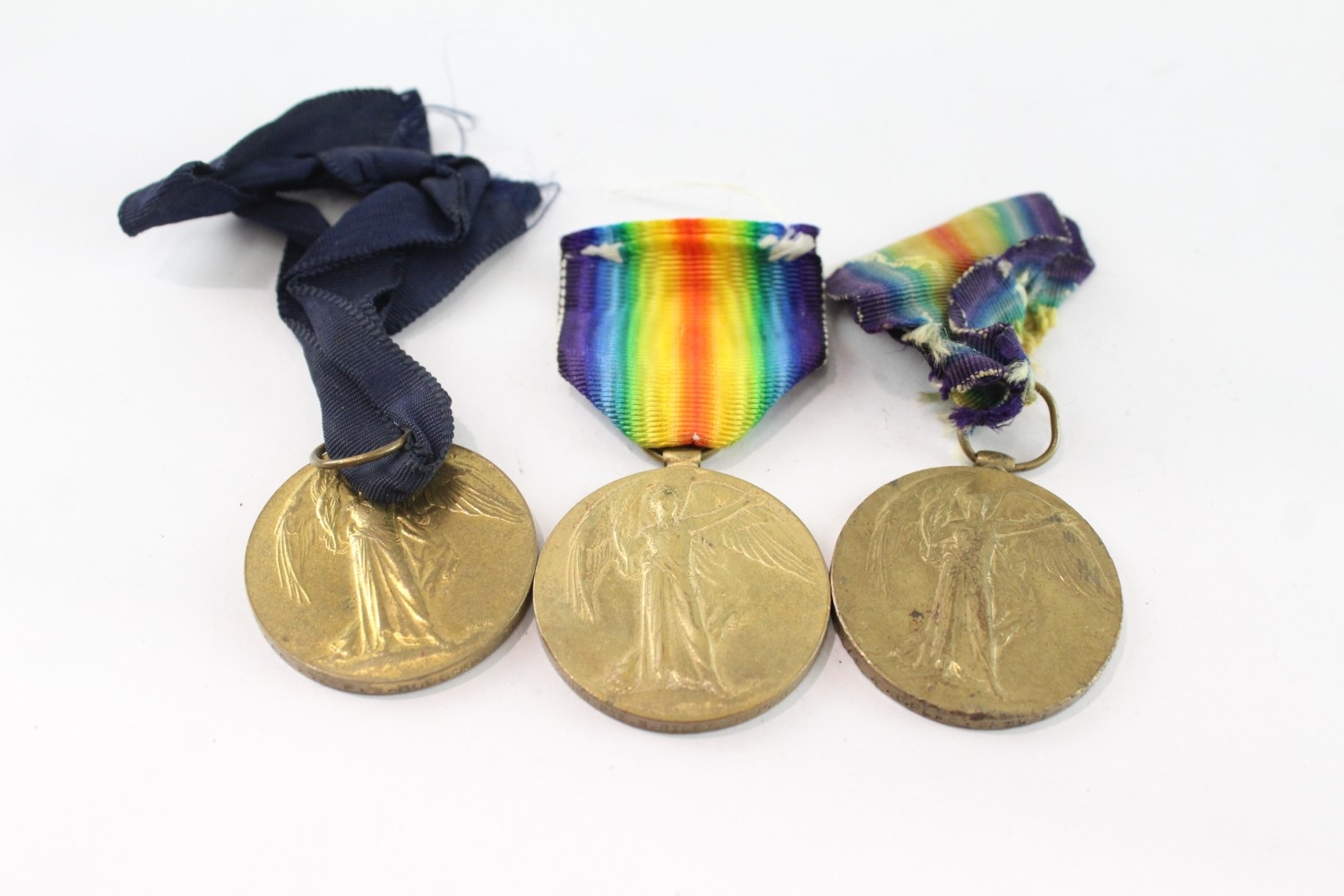 Three WWI Victory medals presented 24098 Pte. S. Riley Leic. R., 35855 Pte. F. W. Hodgson Durh. L.I. and 1276 A. Cpl. C. Shevels P.A.