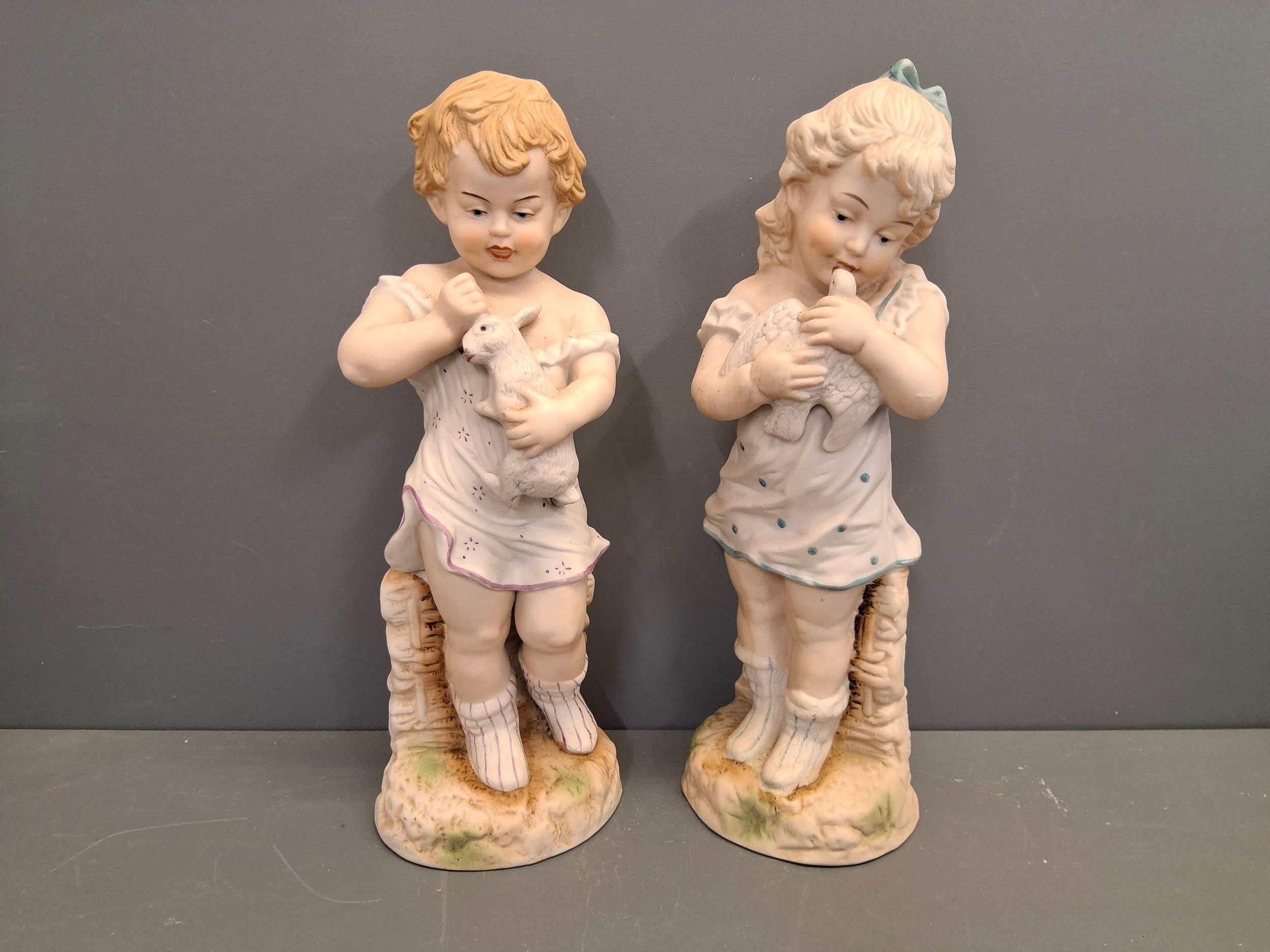 A pair of Bisque porcelain figures. Measuring 33cm high