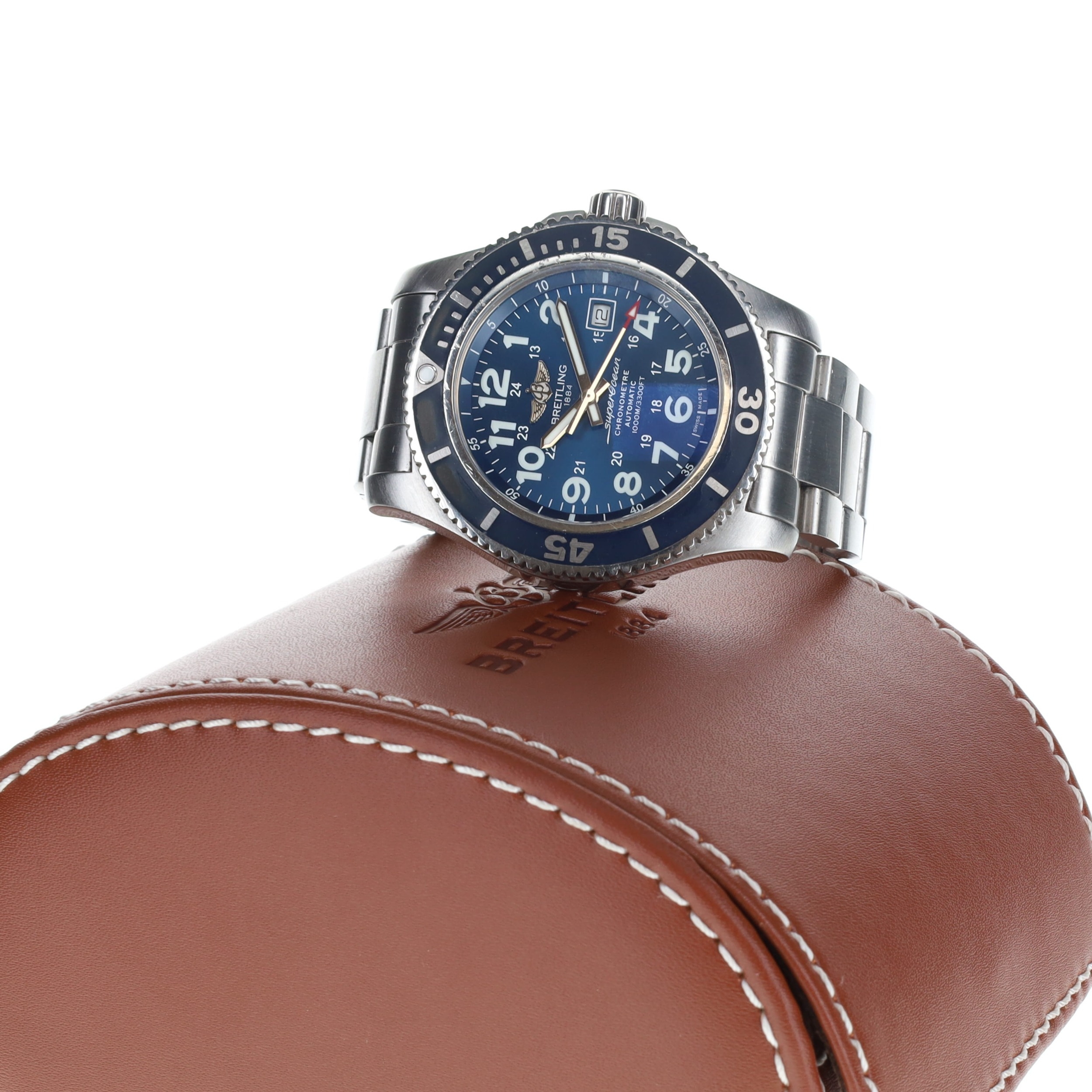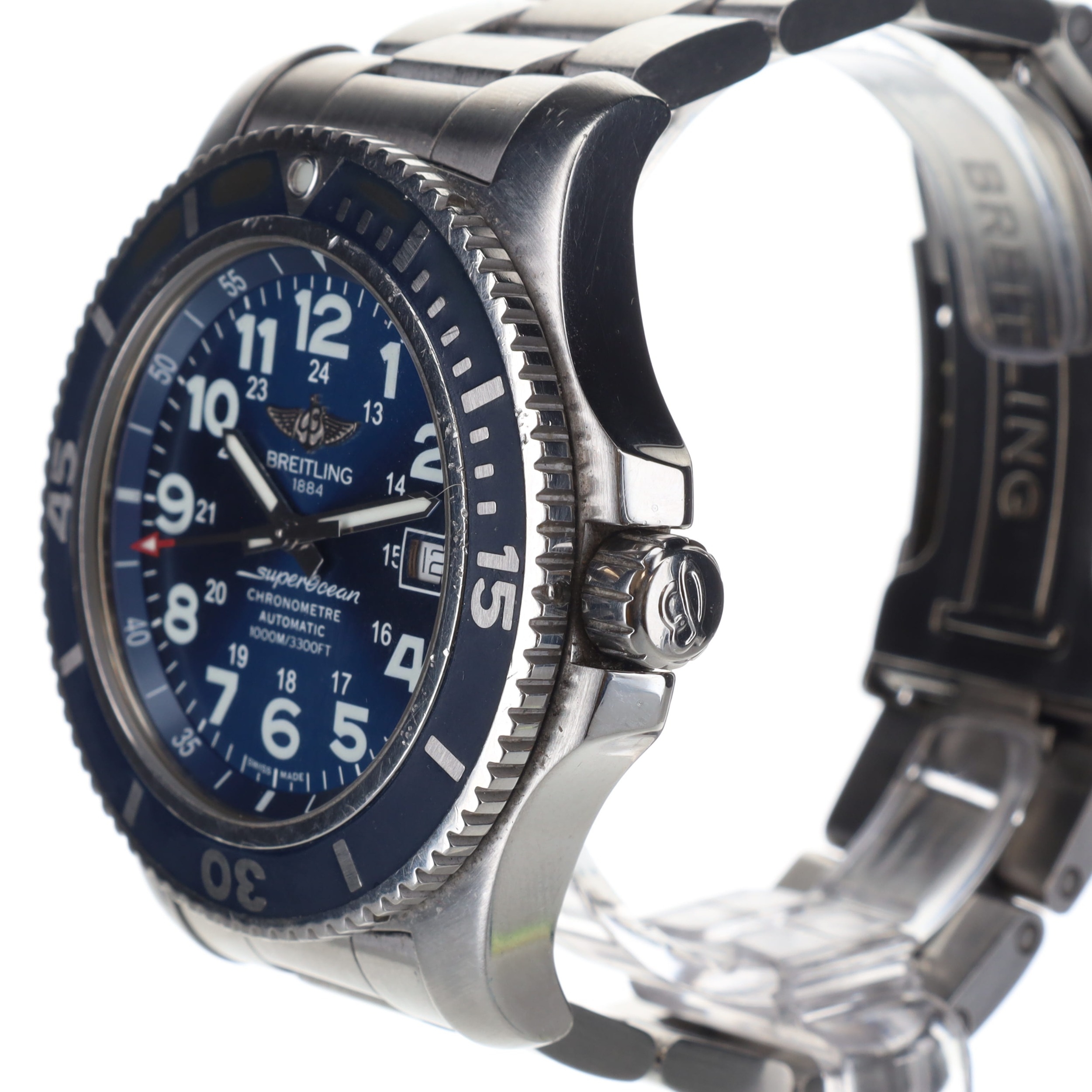 Breitling logo applied to dial. Dial signed 'Breitling Super Ocean Chronometre'.