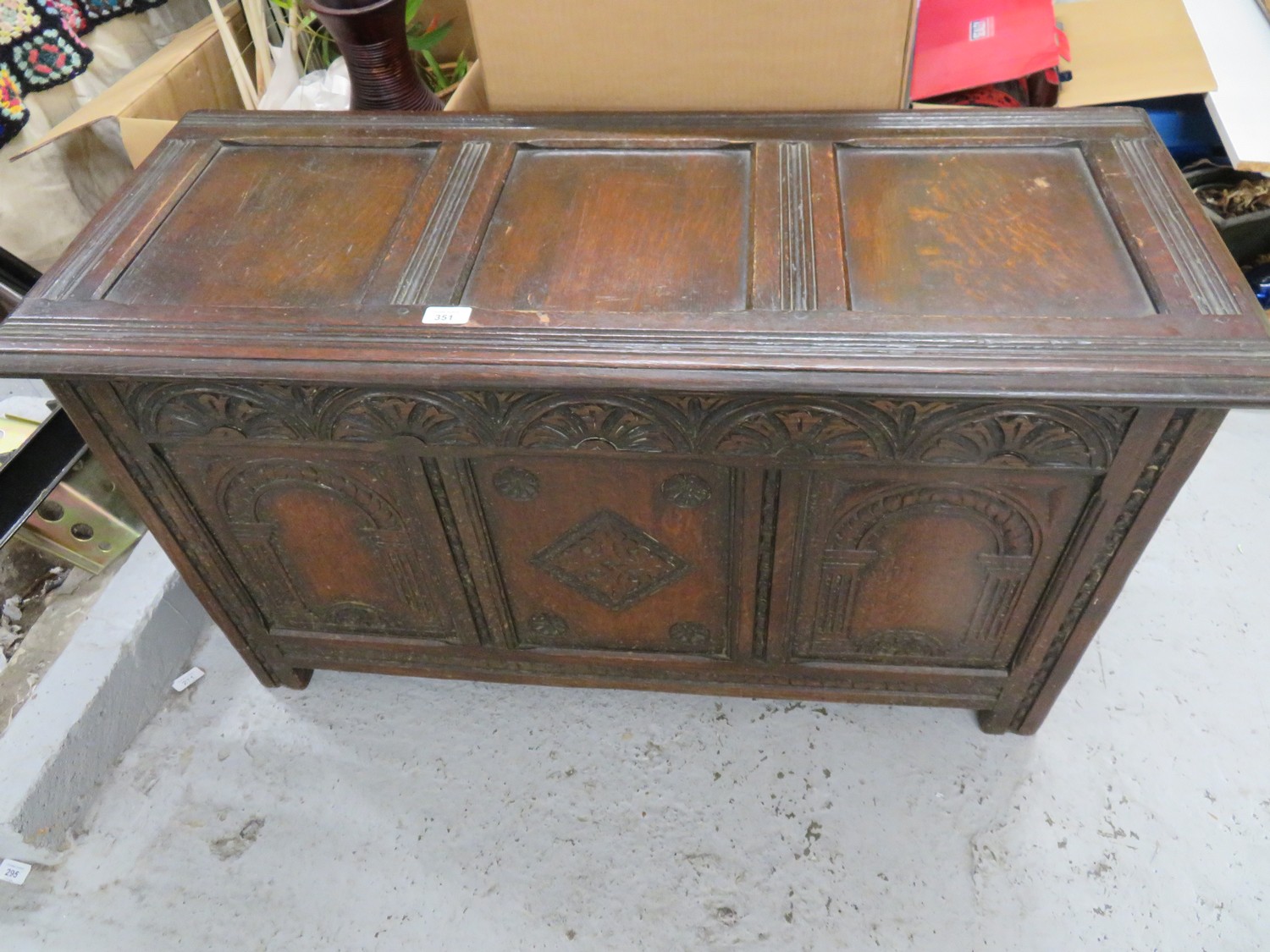 Carved oak paneled blanket box
