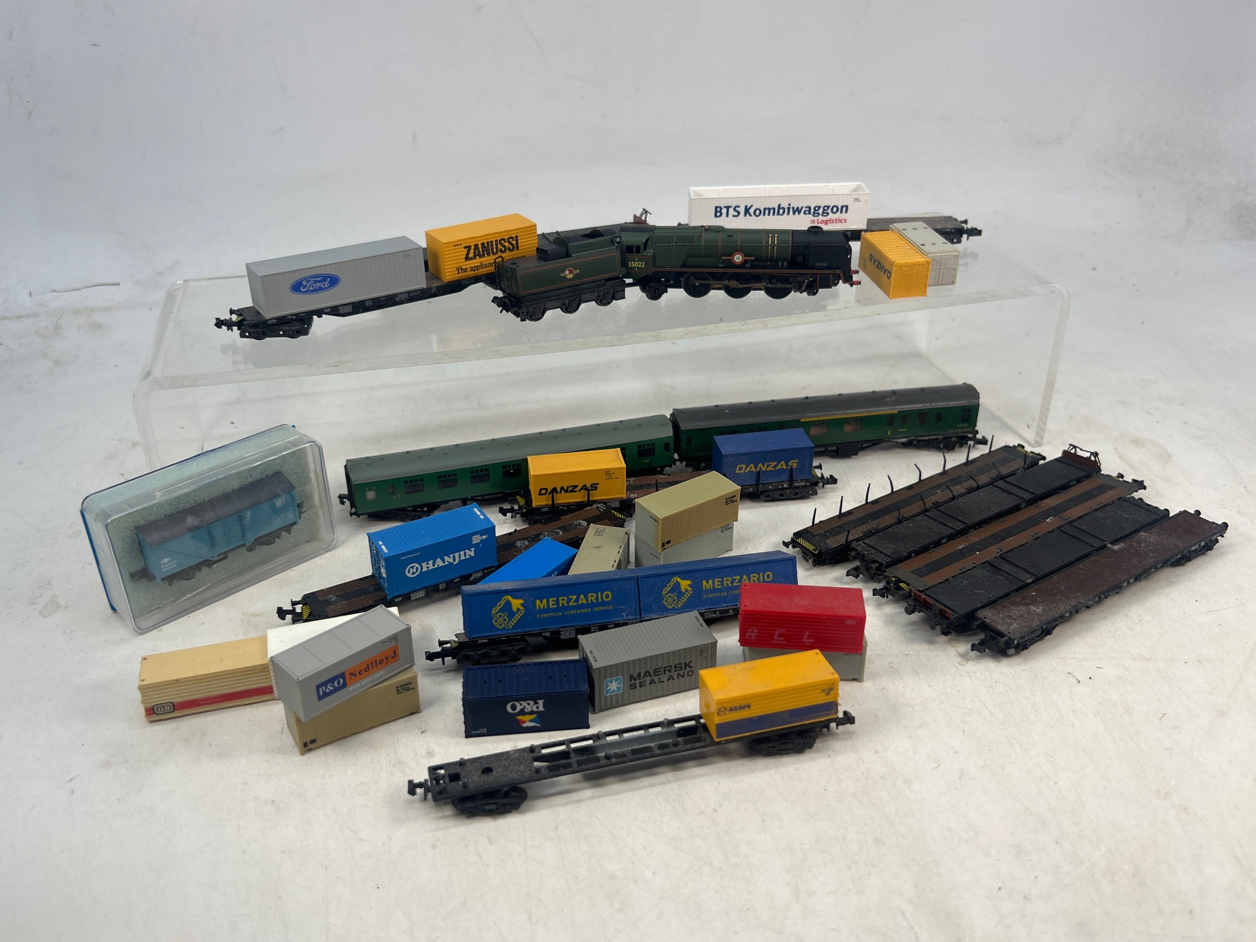 Graham Farish N gauge loco and tender Holland America Merchant Navy together with a quantity of rolling stock, containers etc.