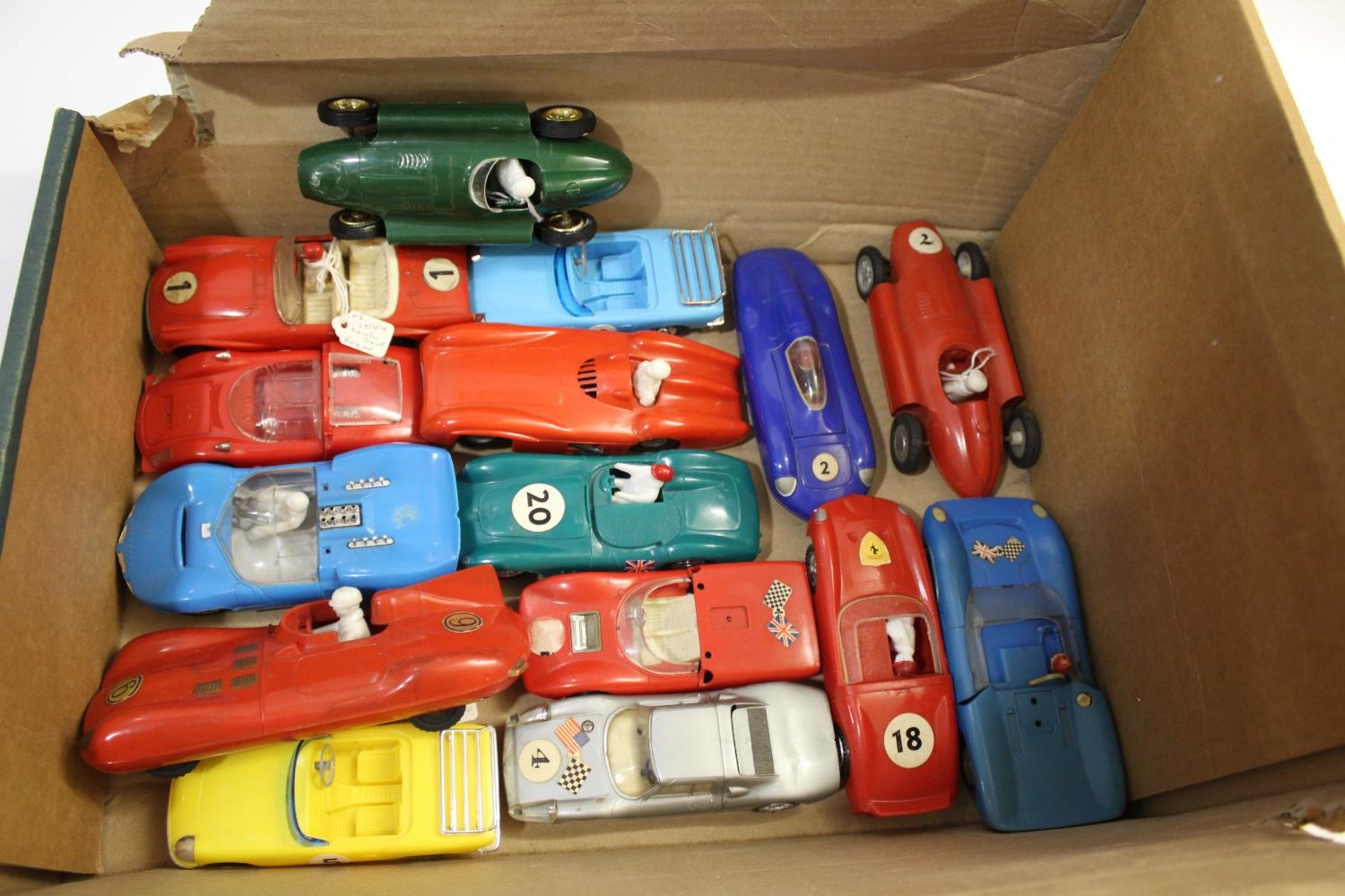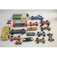 HONG KONG RACING CARS 16 plastic Hong Kong made racing cars, some friction drive, includes Guisval Gordini, Hoda No 105 DB Panhard, Roxy No 717 Lotus Europa, and Roxy 777 McLaren M6A. (16)