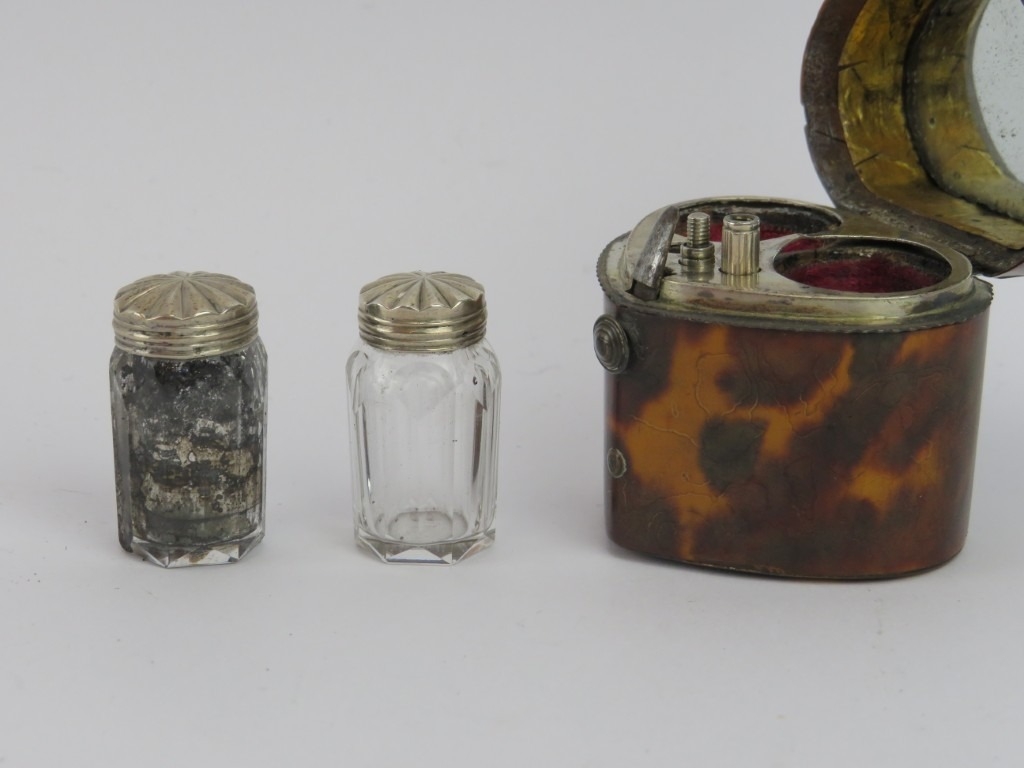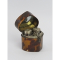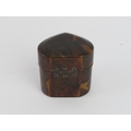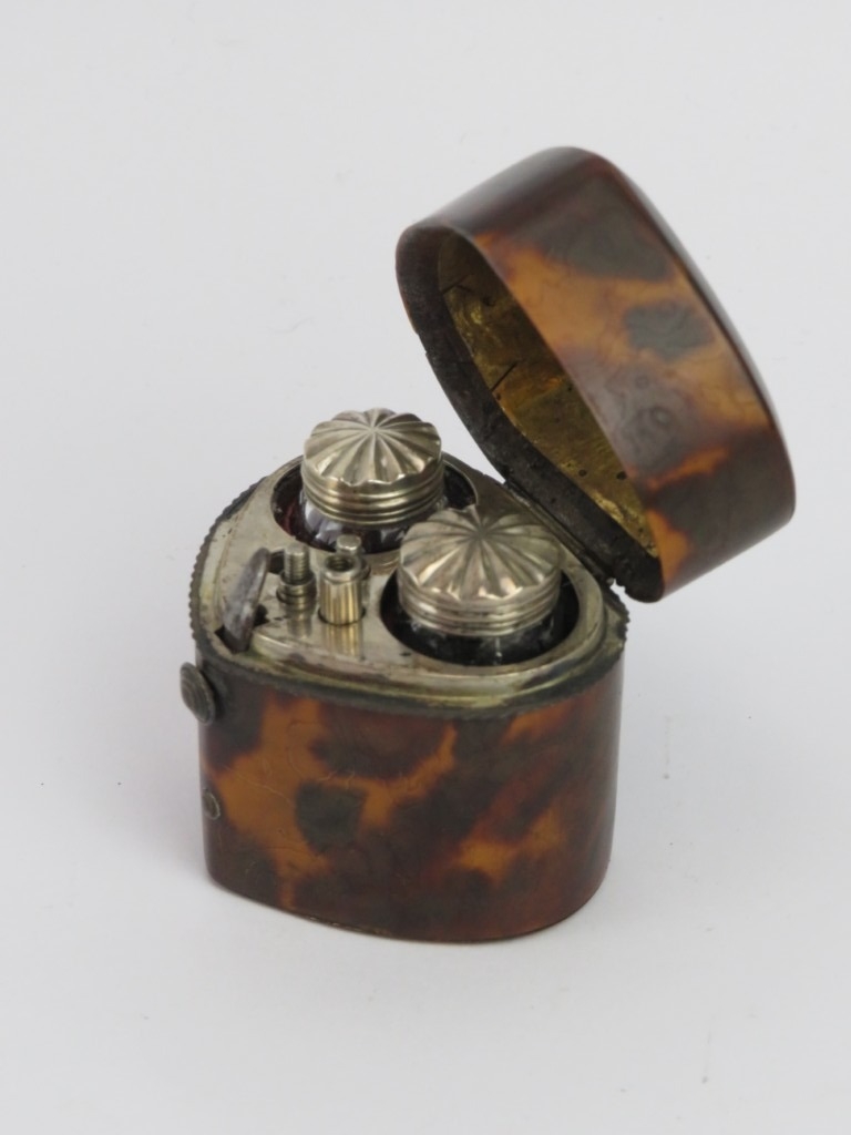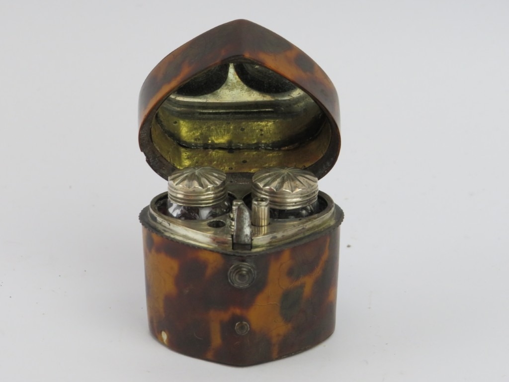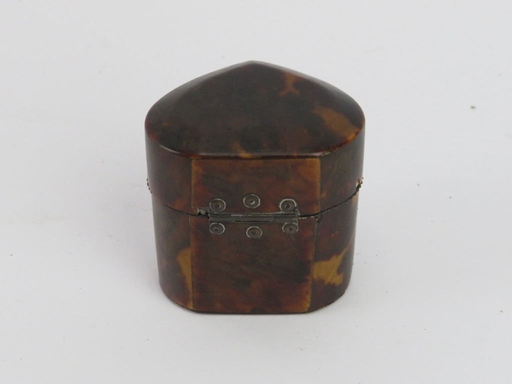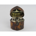 A tortoiseshell heart shaped travelling inkwell and quill pen box, 19th century. 5 cm height.