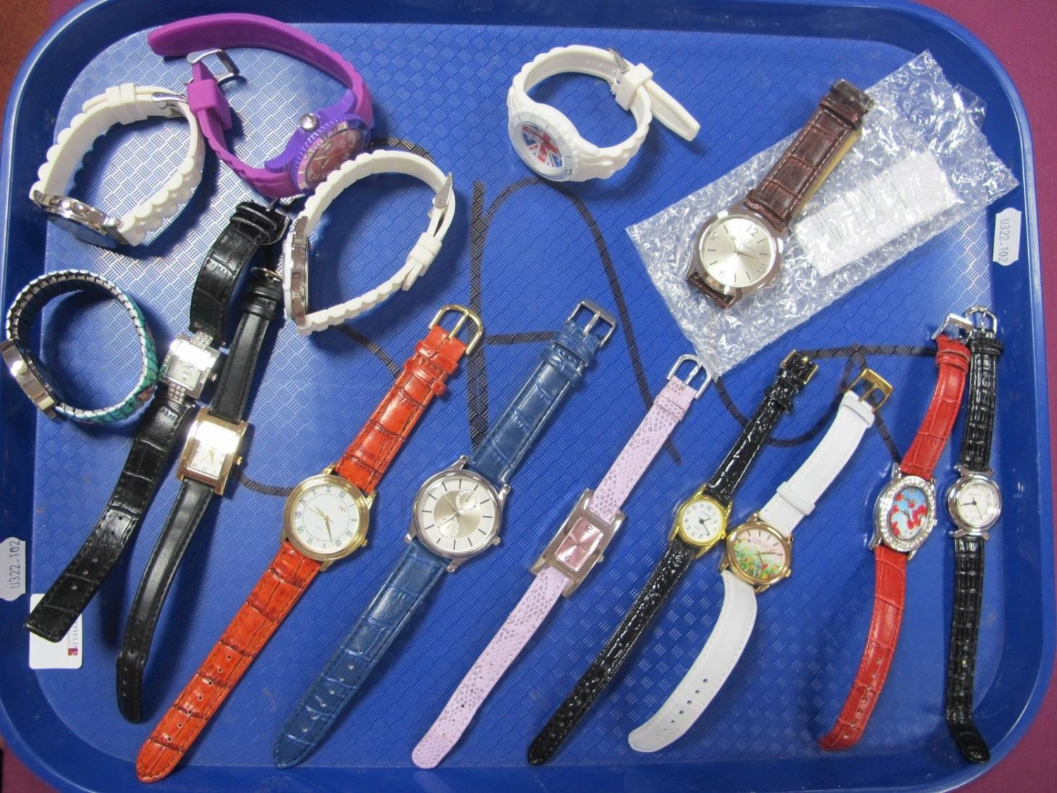A Collection of Assorted Modern Ladies Wristwatches, including examples with rubber straps, Leonardo, Linda Calvert, Citron, etc :- One Tray