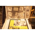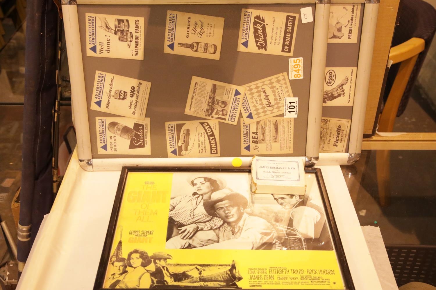 Two framed collections of vintage advertising cards, framed film poster and a pack of James Buchanan whisky playing cards. Not available for in-house.
