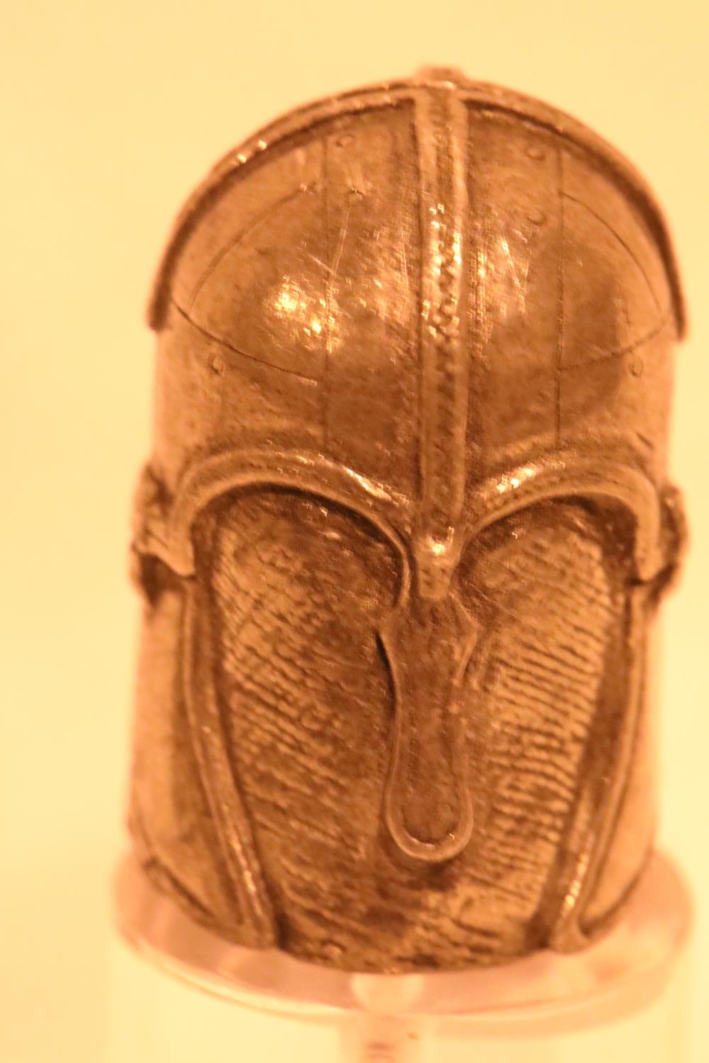 White metal helmet thimble. P&P Group 1 (£14+VAT for the first lot and £1+VAT for subsequent lots)