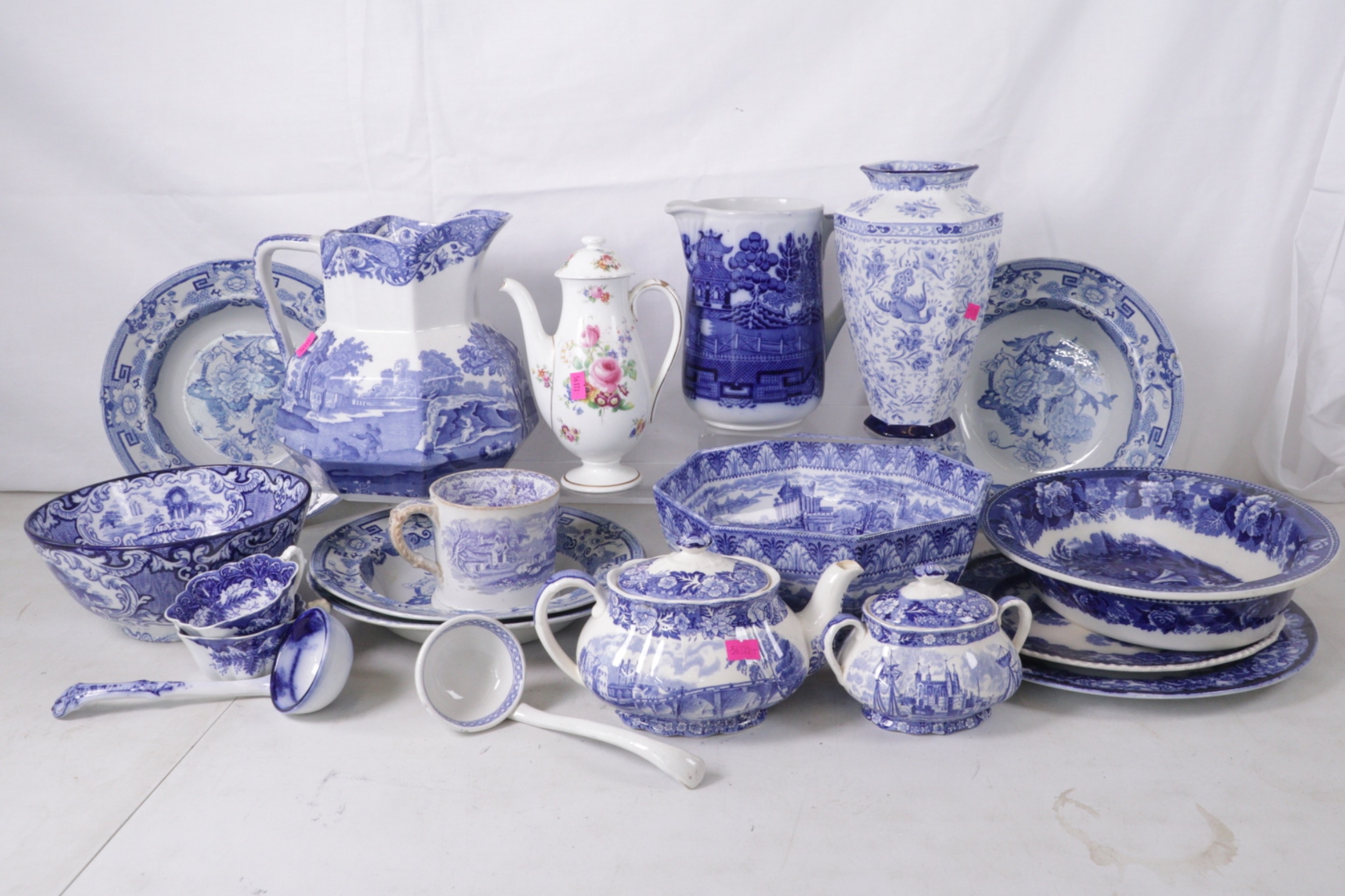 Good selection of assorted Antique and later ceramics Blue and White, Royal Doulton teapot , Plates and all sorts