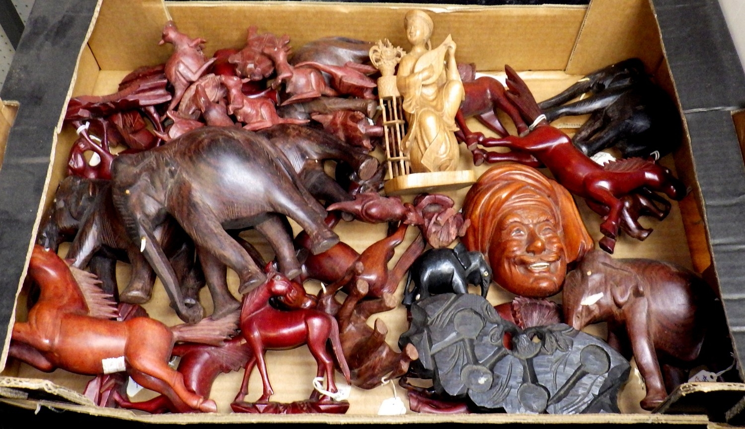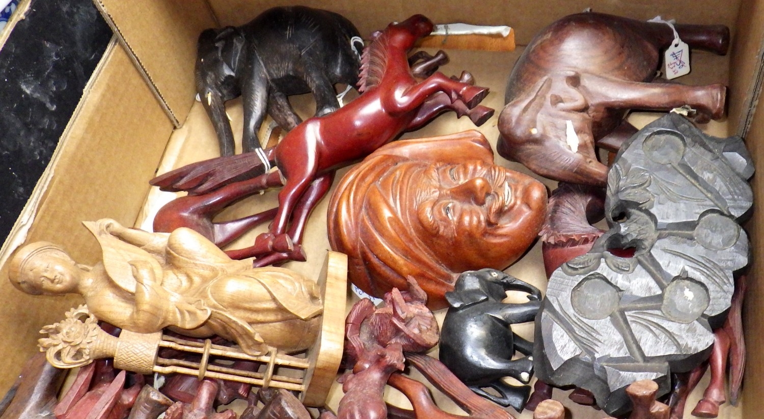 A qty of carved hardwood figures