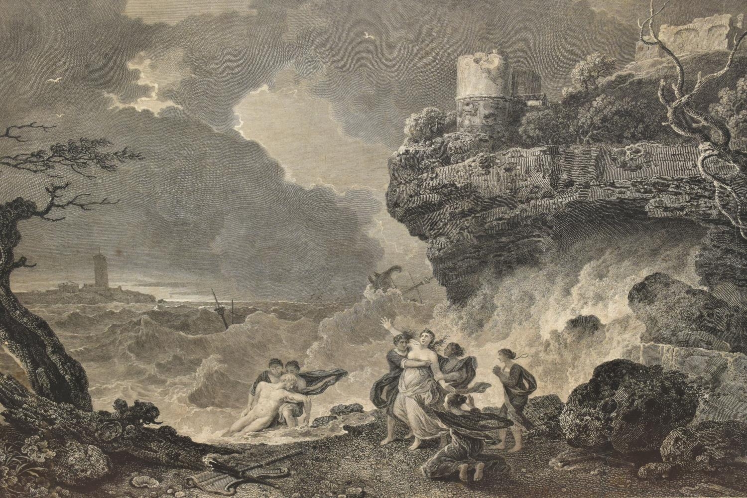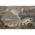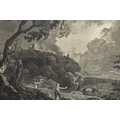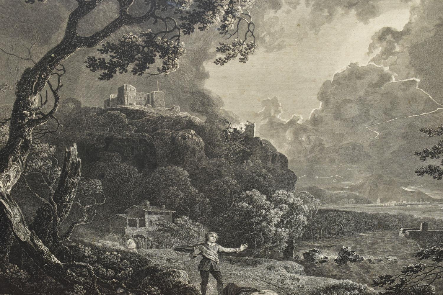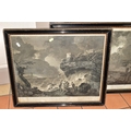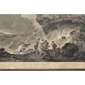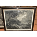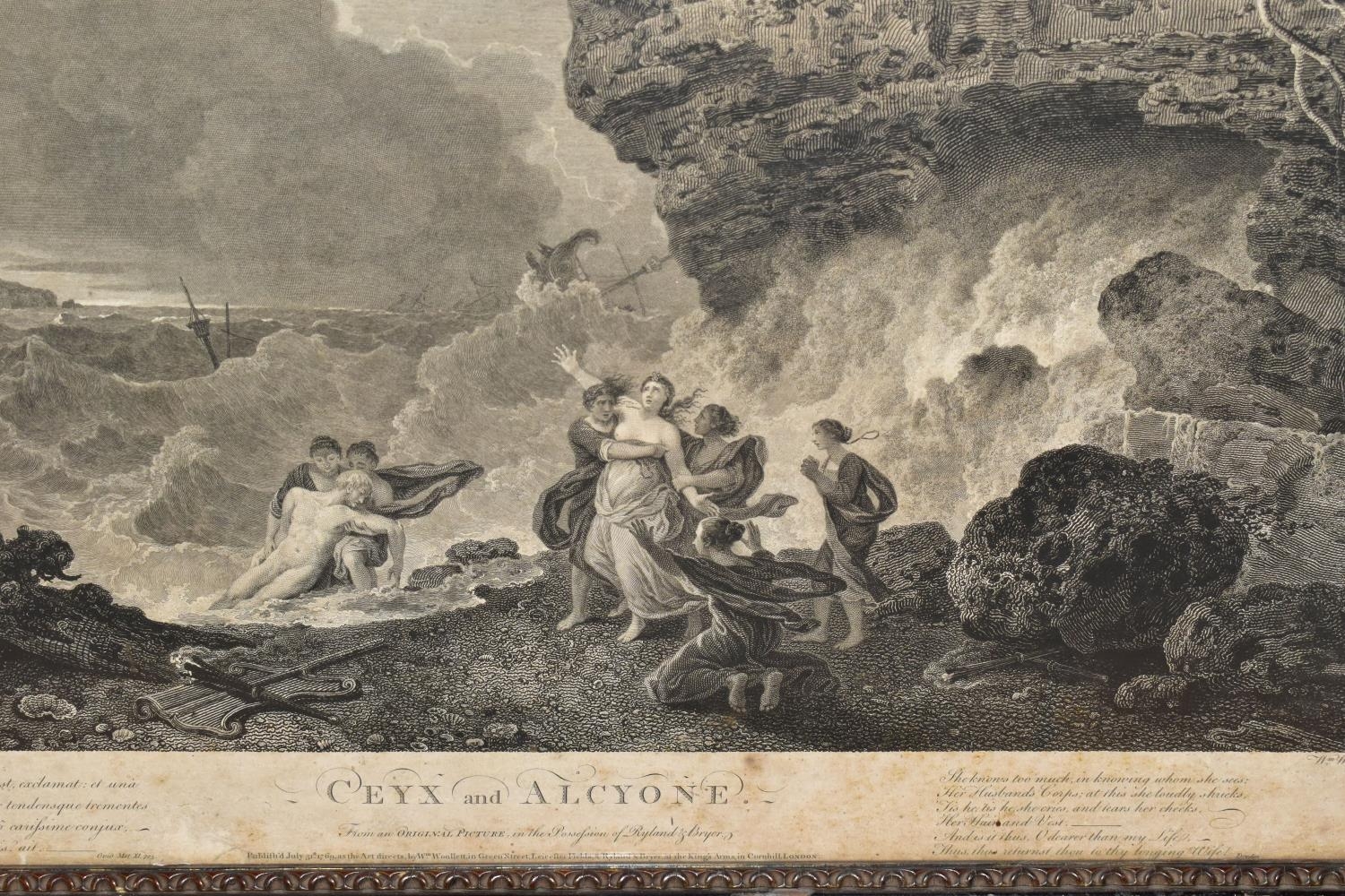 TWO EIGHTEENTH CENTURY ENGRAVING PRINTS BY WILLIAM WOOLLETT, comprising 'Celadon and Amelia' after the painting by Richard Wilson, published 1766 and 'Ceyx and Alcyone' also after Richard Wilson published 1769, approximate sizes 44cm x 54cm, Condition: tear to the top of the Ceyx print, both with some staining, frames damaged