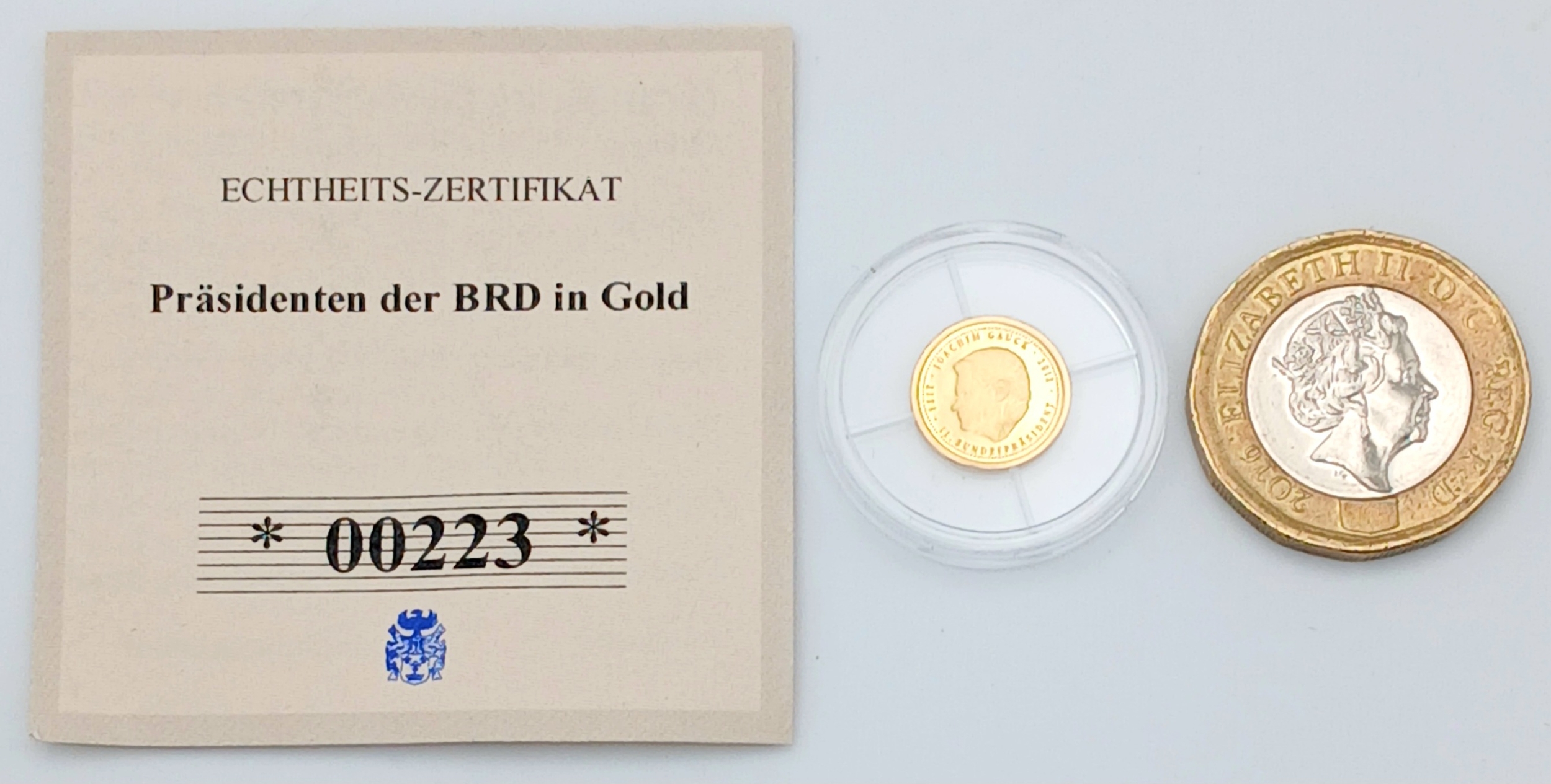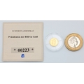A 14K Gold Commemorative German Coin. Proof. 0.5g. Limited Edition. Encapsulated with COA.