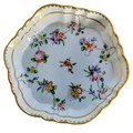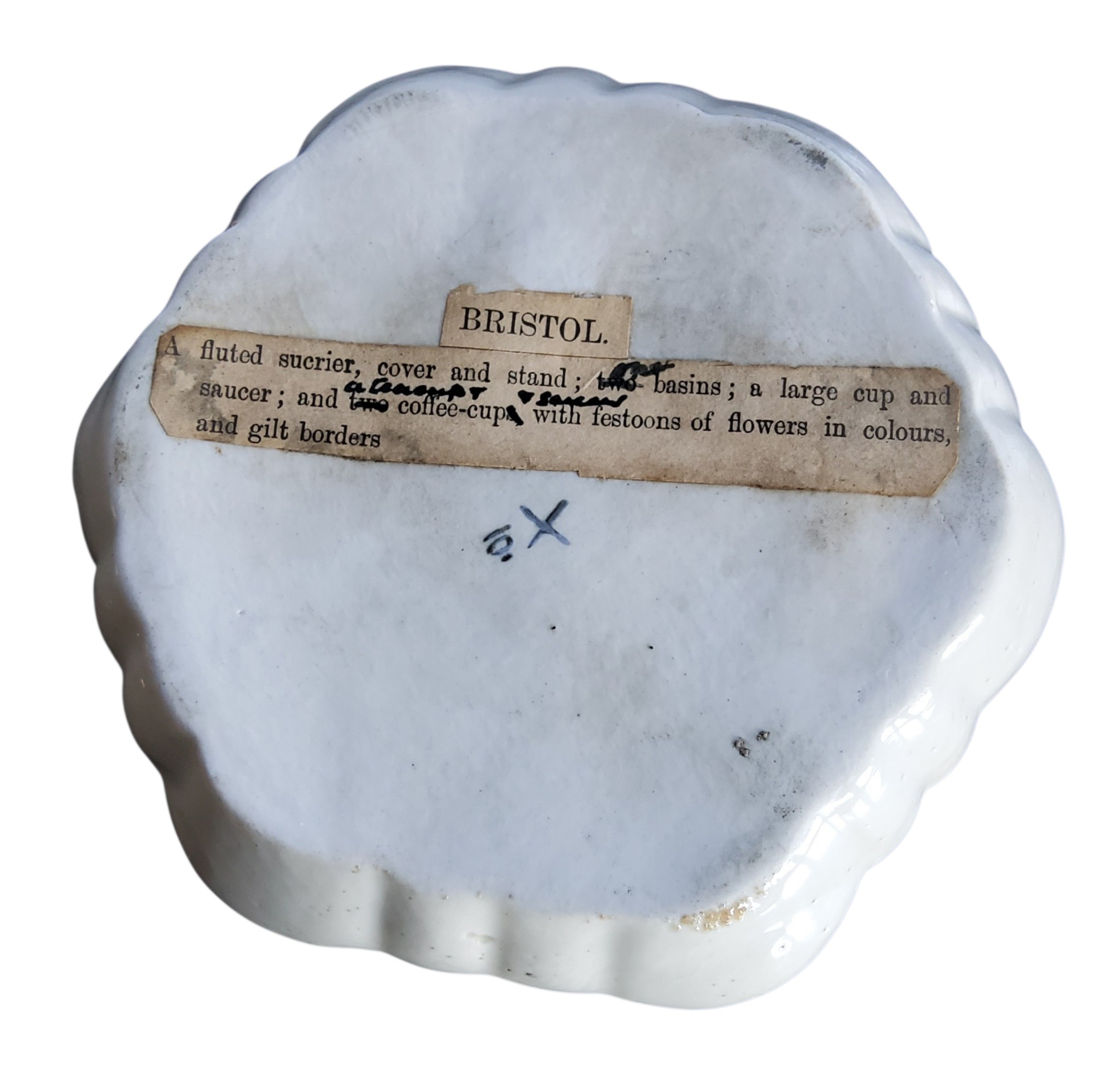 A Bristol shaped circular stand, , decorated with festoons of flowers, in colours, gilt dentil border, 14cm wide, X10 mark, c.1770