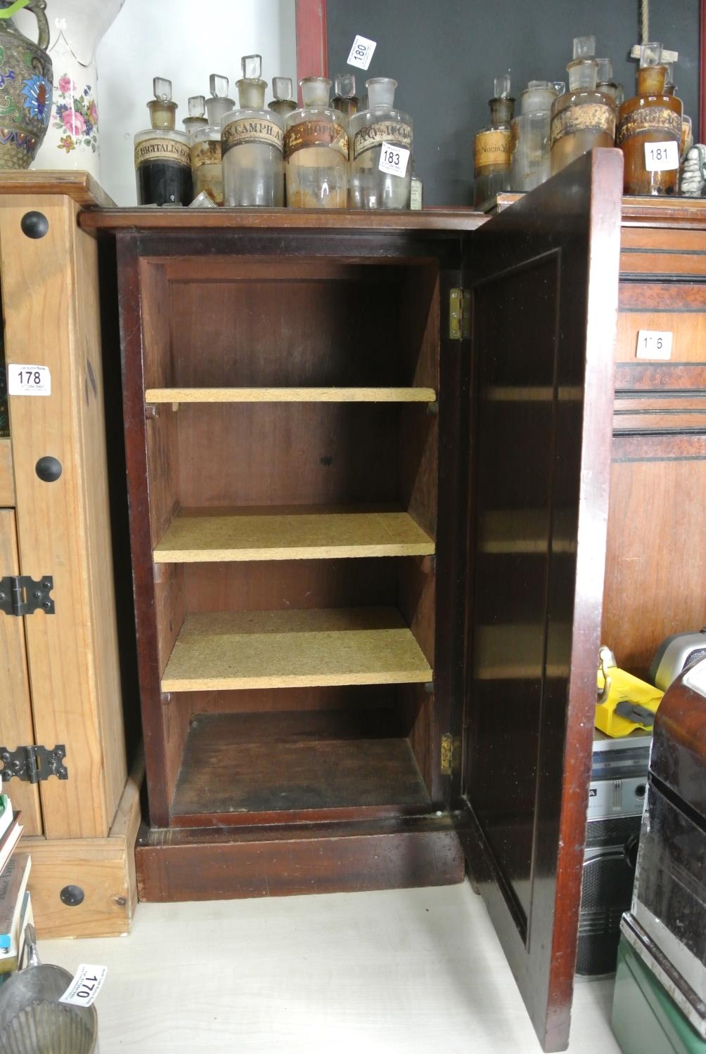 A dark oak bed side cabinet