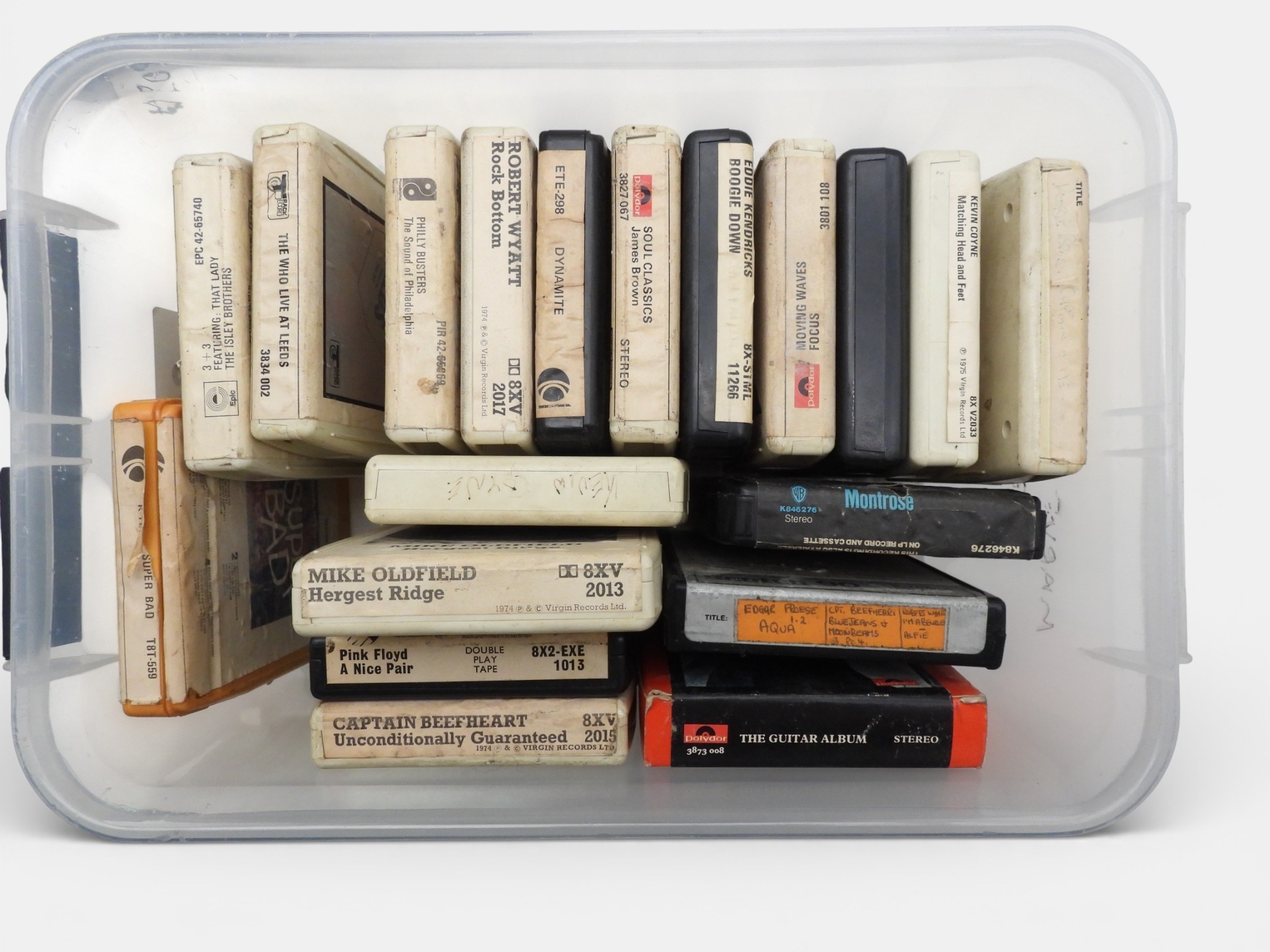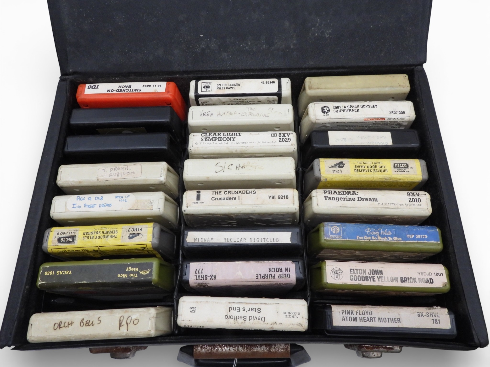 8 TRACK CARTRIDGES - A mixed lot of 31 8 Track Cartridges in black fitted case to include Pink Floyd 'Atom Heart Mother' '2001: A Space Odyssey', Elton John 'Yellow Brick Road' and Deep Purple 'In Rock'.