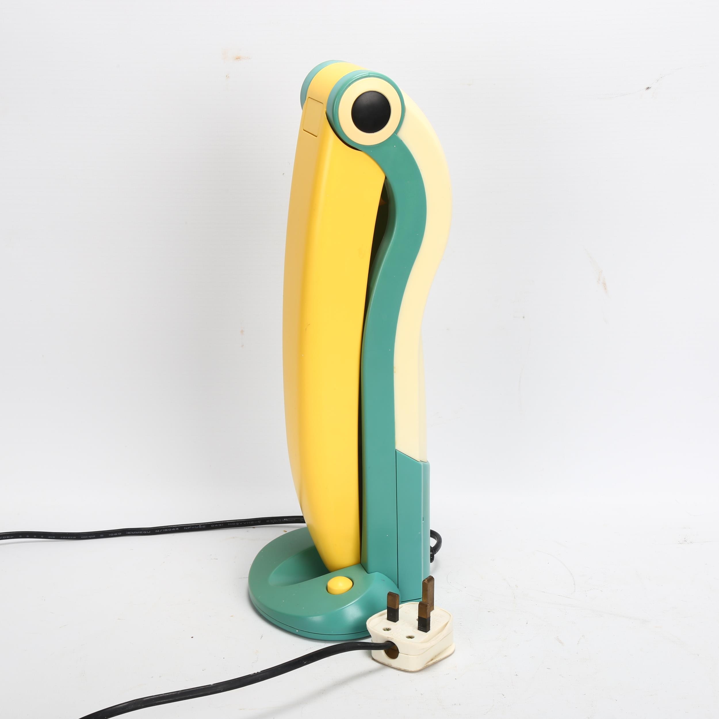 HT Huang for Huangslite, a 1980s' novelty toucan pattern folding table lamp, in yellow and green plastic, closed height 34.5cm