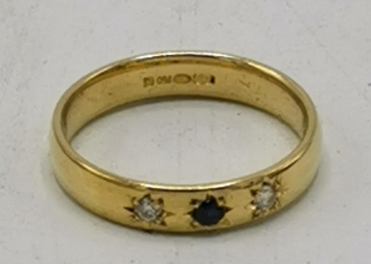 PRESENTED AS AN 18ct GOLD WITH SAPPHIRES And DIAMONDS (Full London Hallmarks.Diamonds Test +Ve (Size P ,Weight 4.4 Grams) (Boxed)