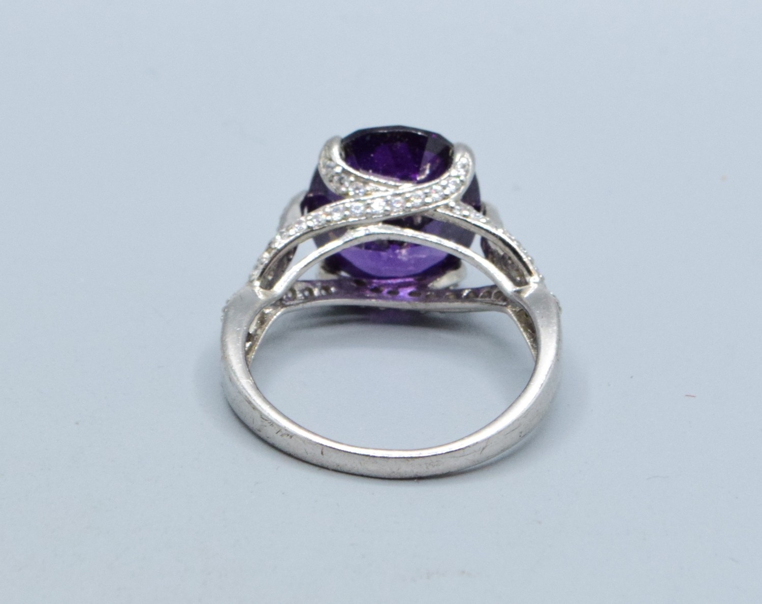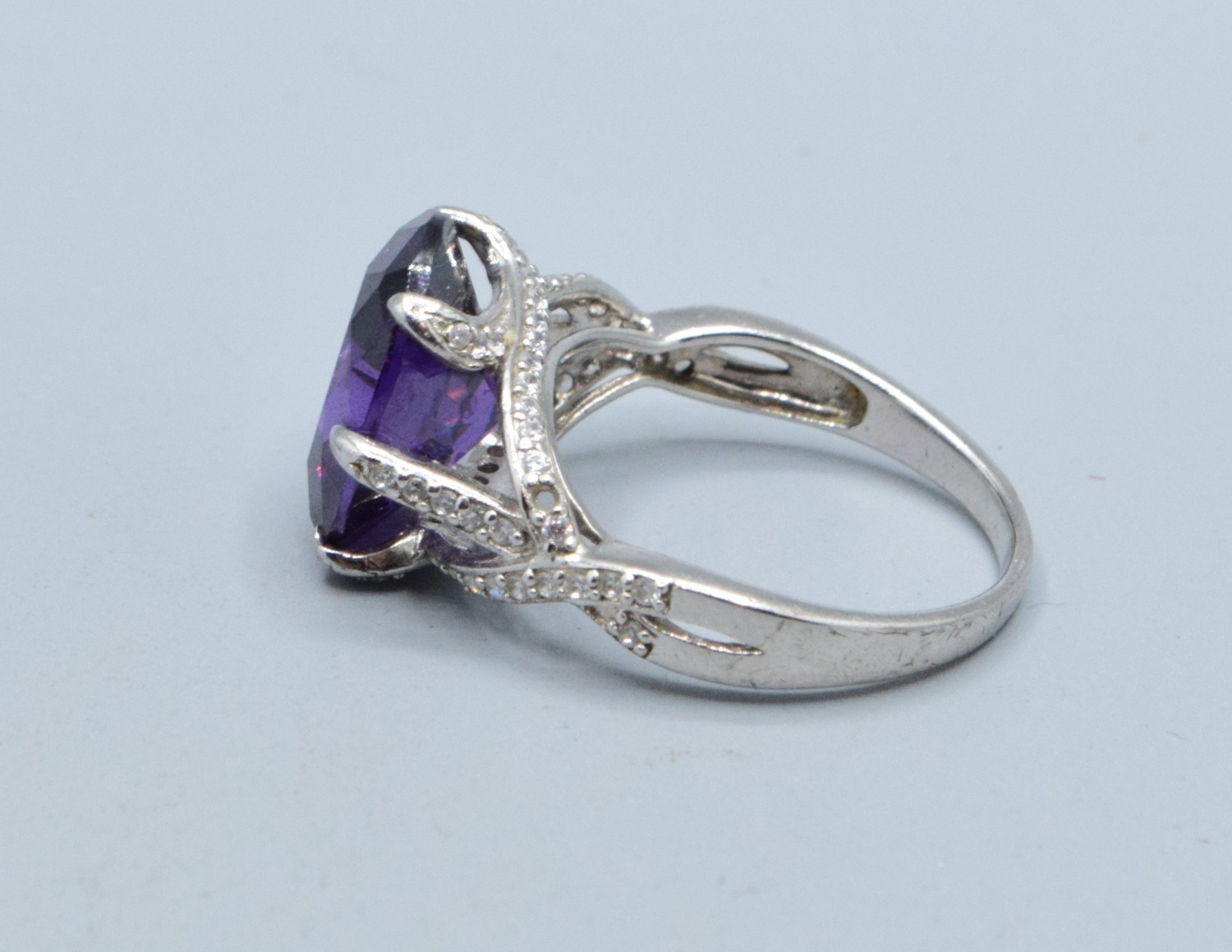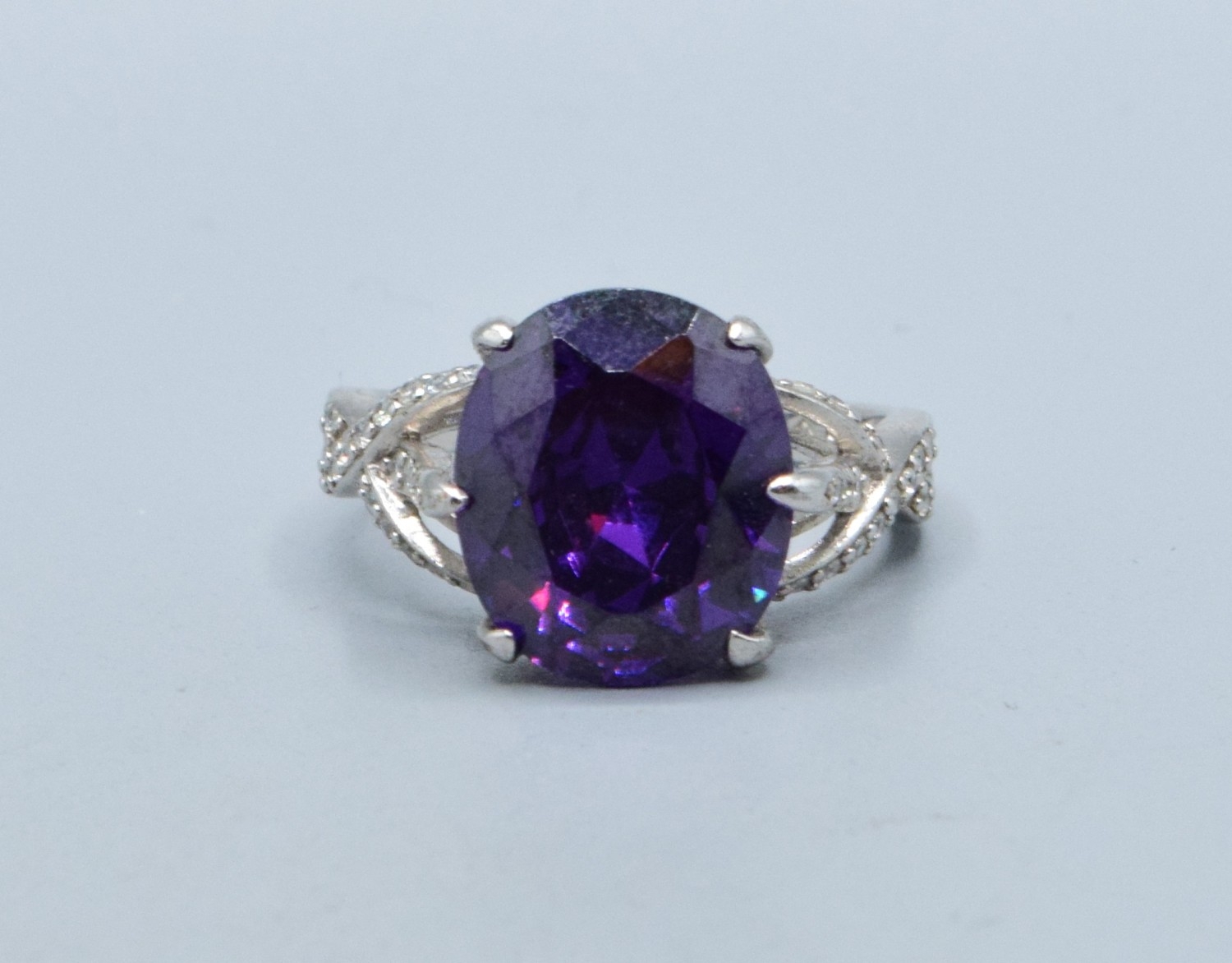 925 silver ladies Amethyst design single stone ring with a triple cross over setting size R