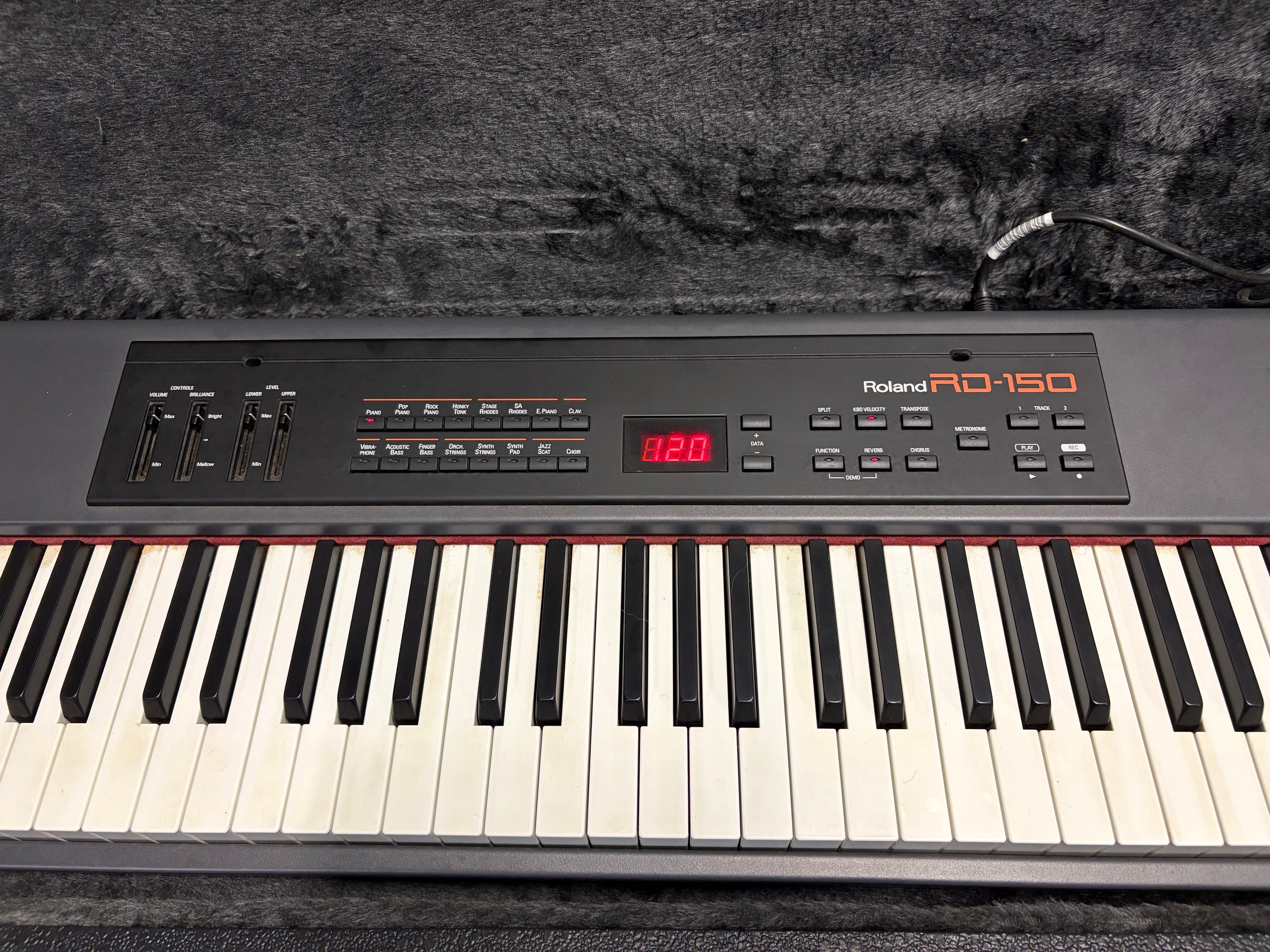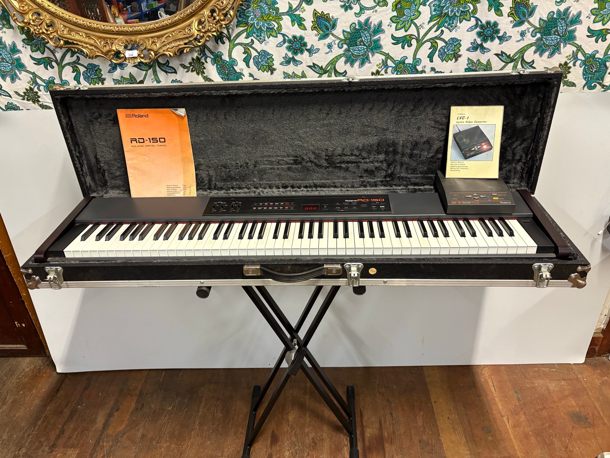 A Roland RD-150 fully weighted stage electronic piano keyboard with instruction Manuel & flight case , along with lyrics video converter & manual