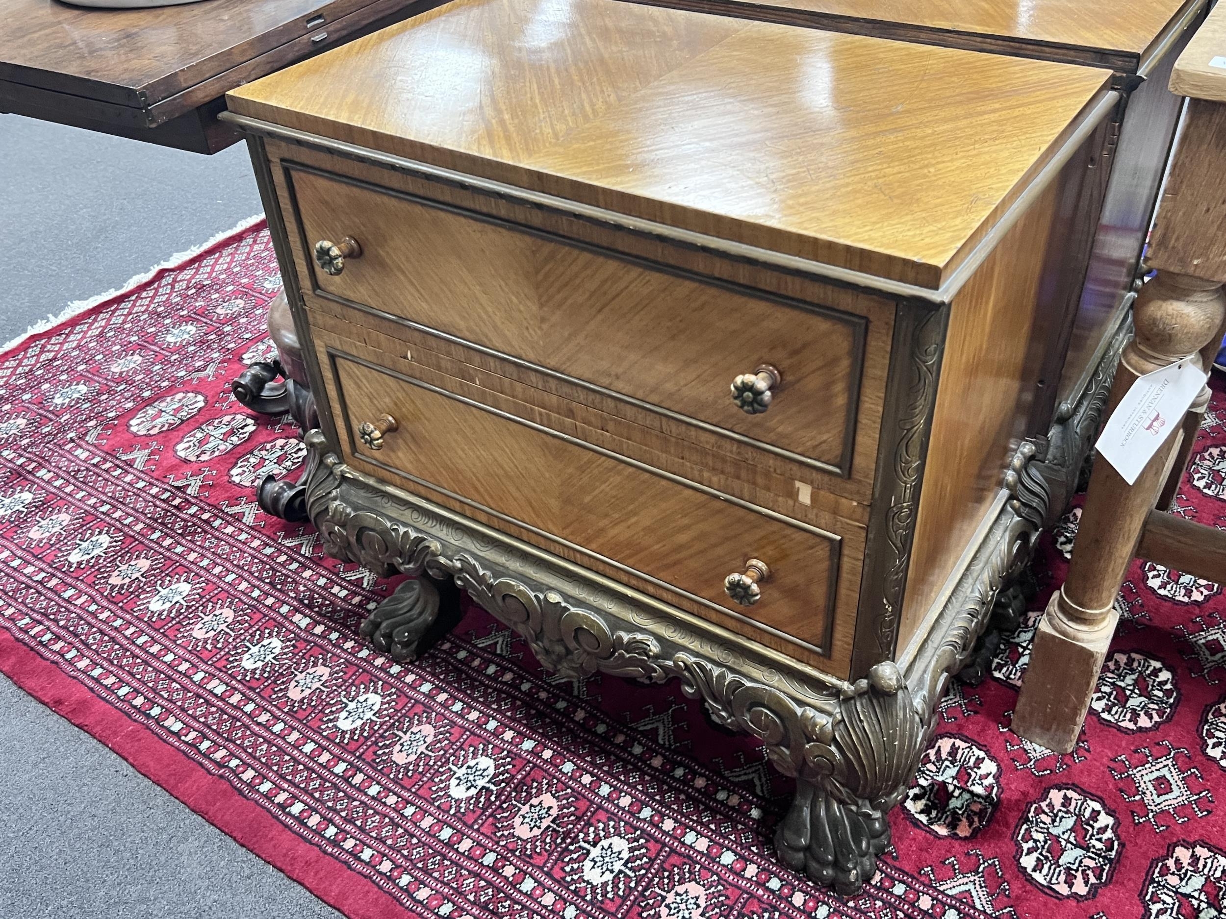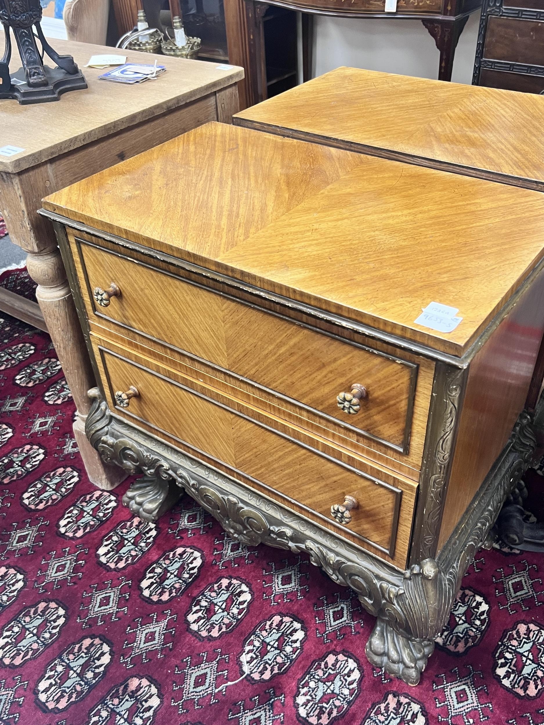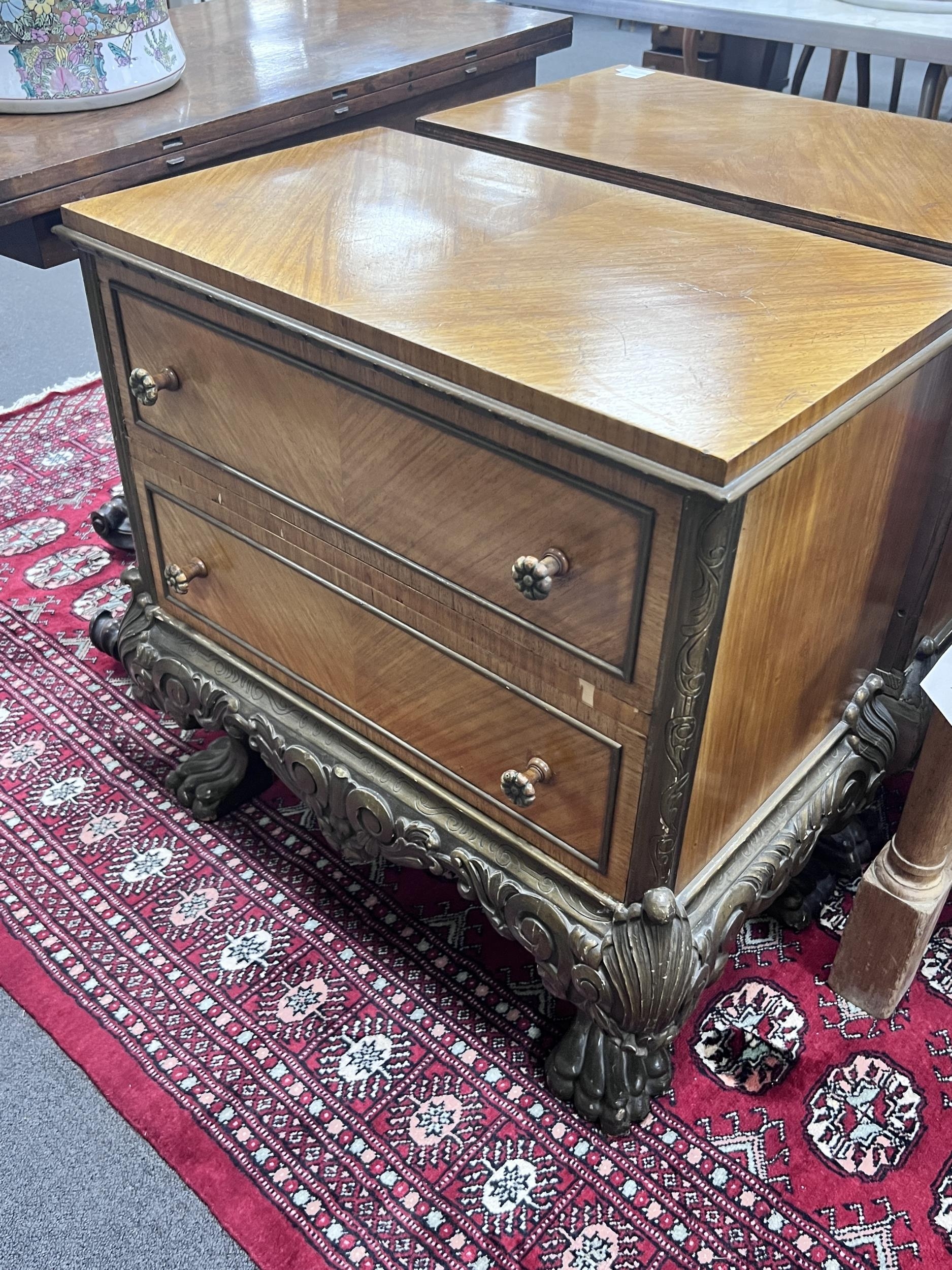 A pair of George I style giltwood and walnut two drawer chests, width 72cm, depth 41cm, height 71cm