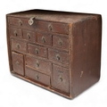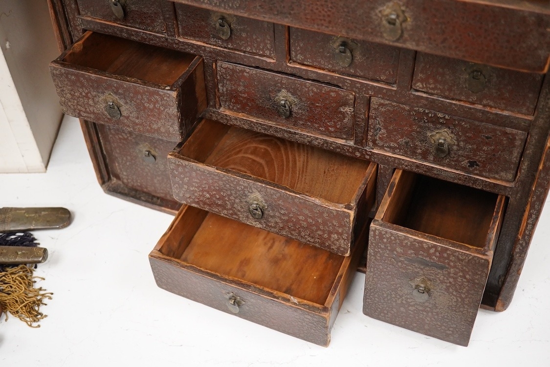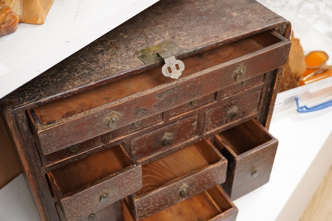 An 18th century Chinese lacquered table top cabinet, 52cm wide