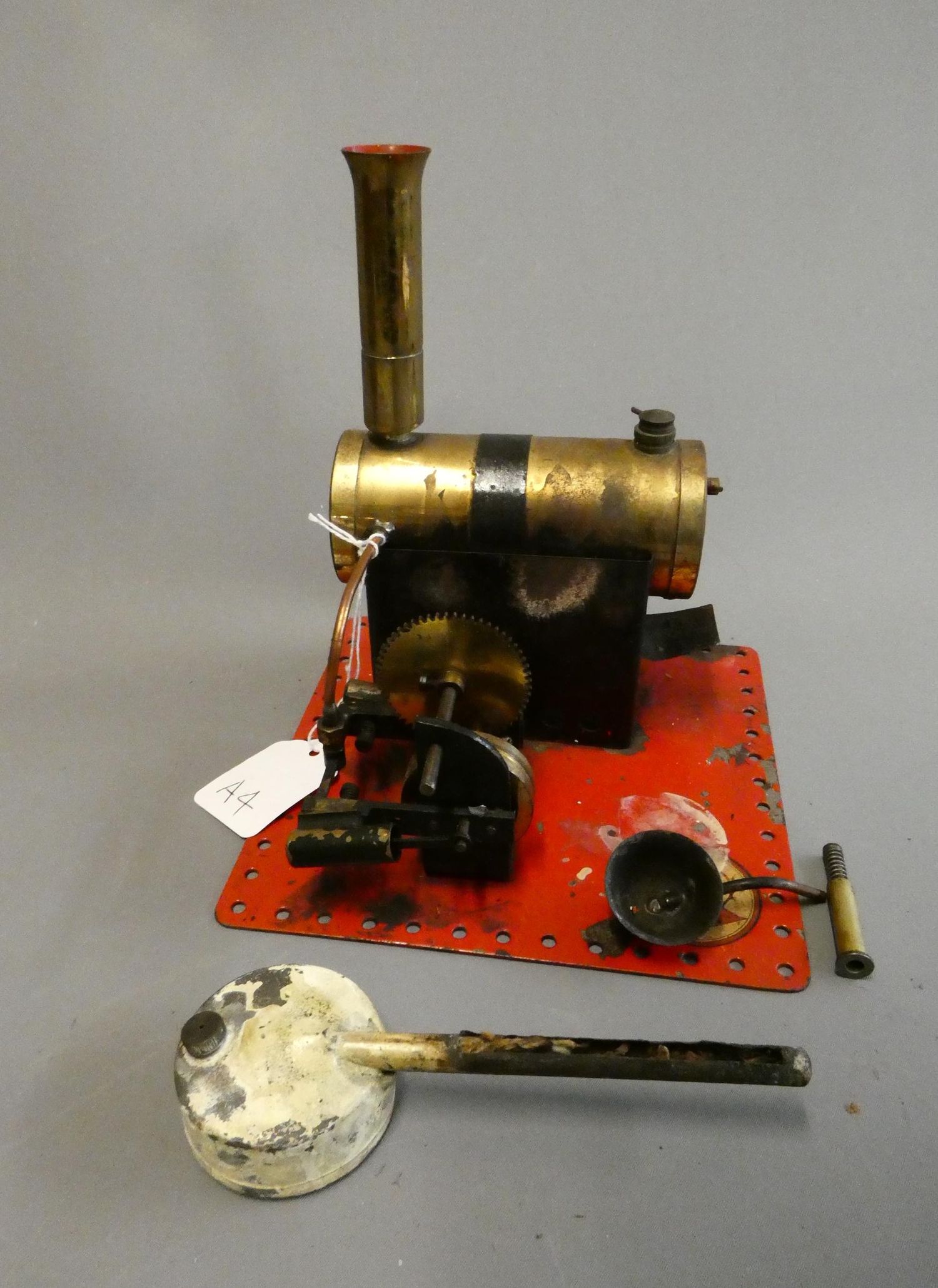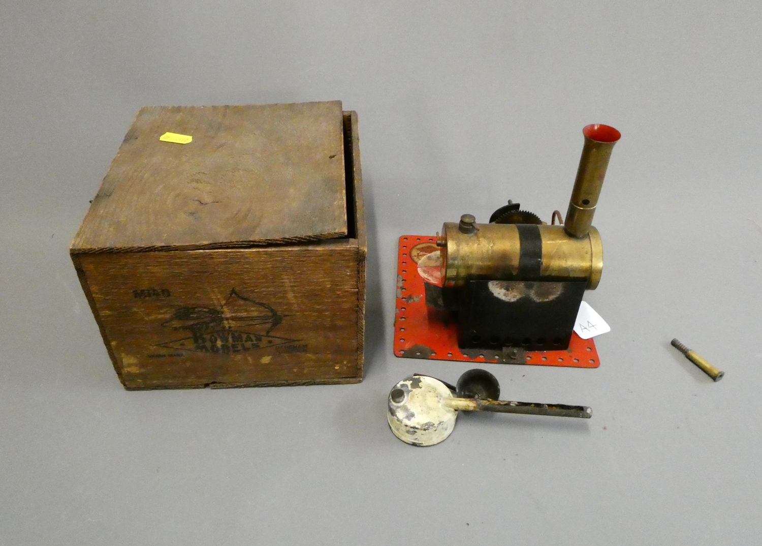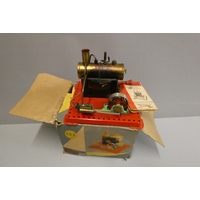 Bowman M140 stationary steam engine, twin cylinder engine with spirit burner, boxed, fair