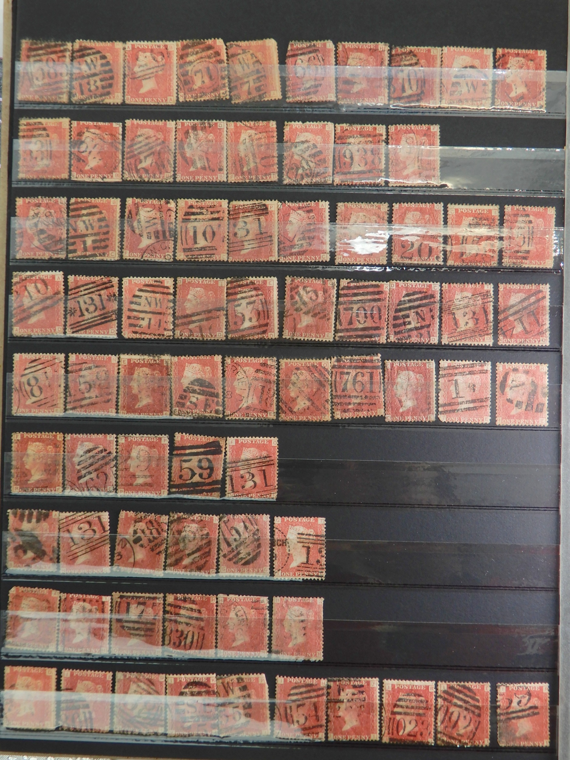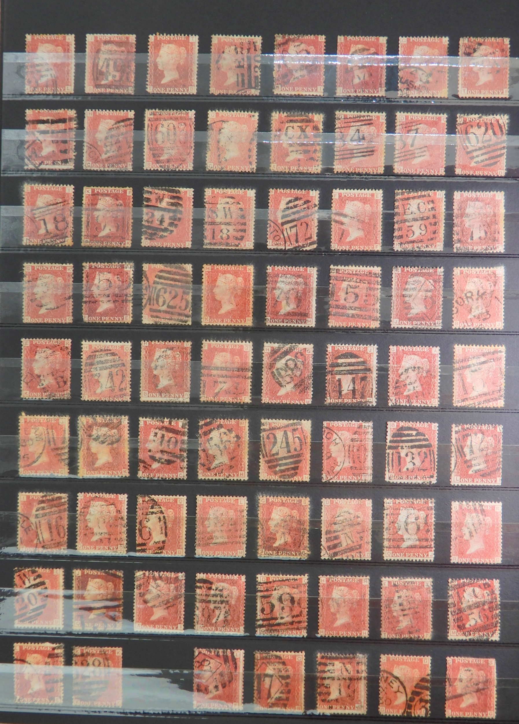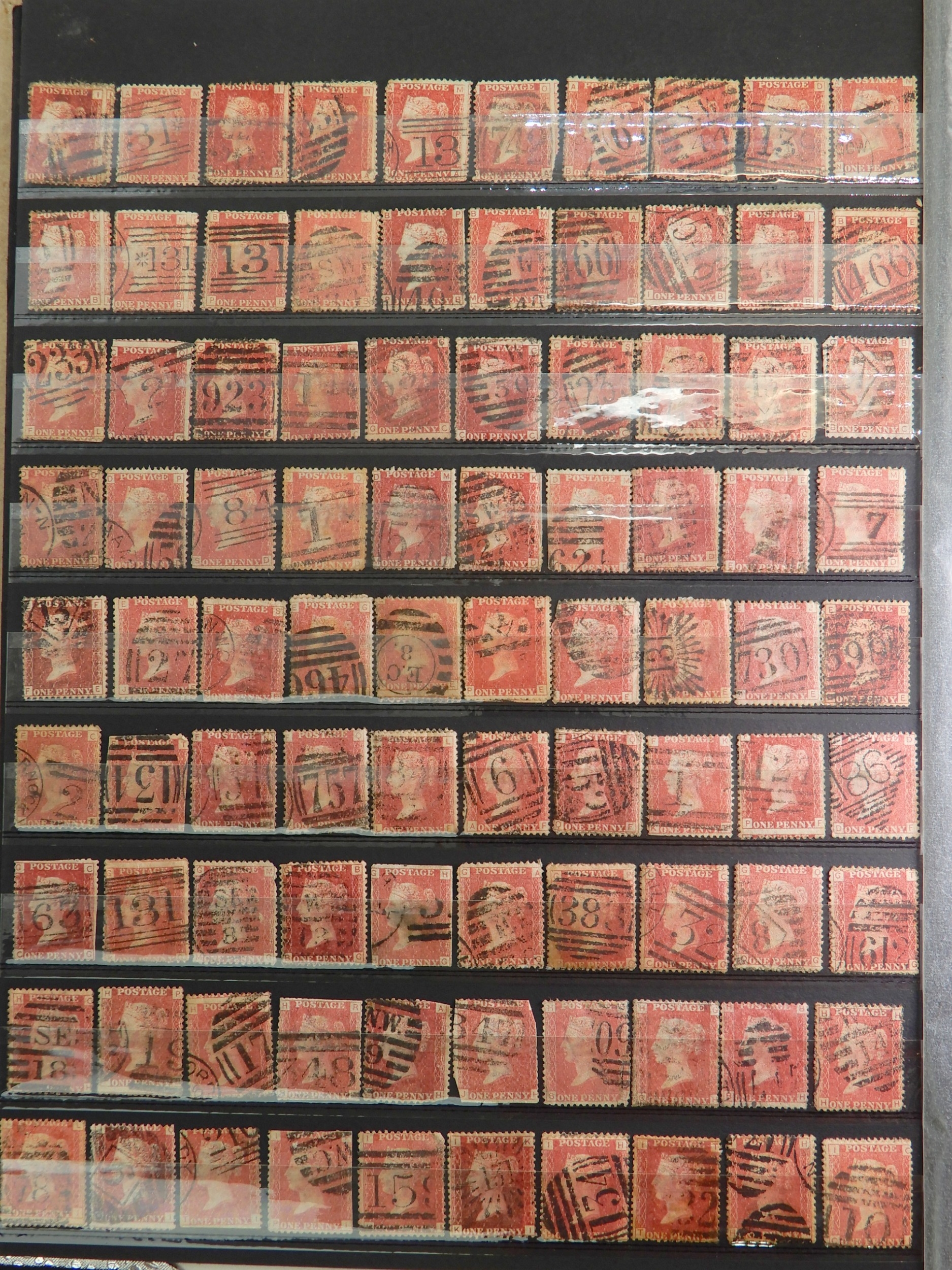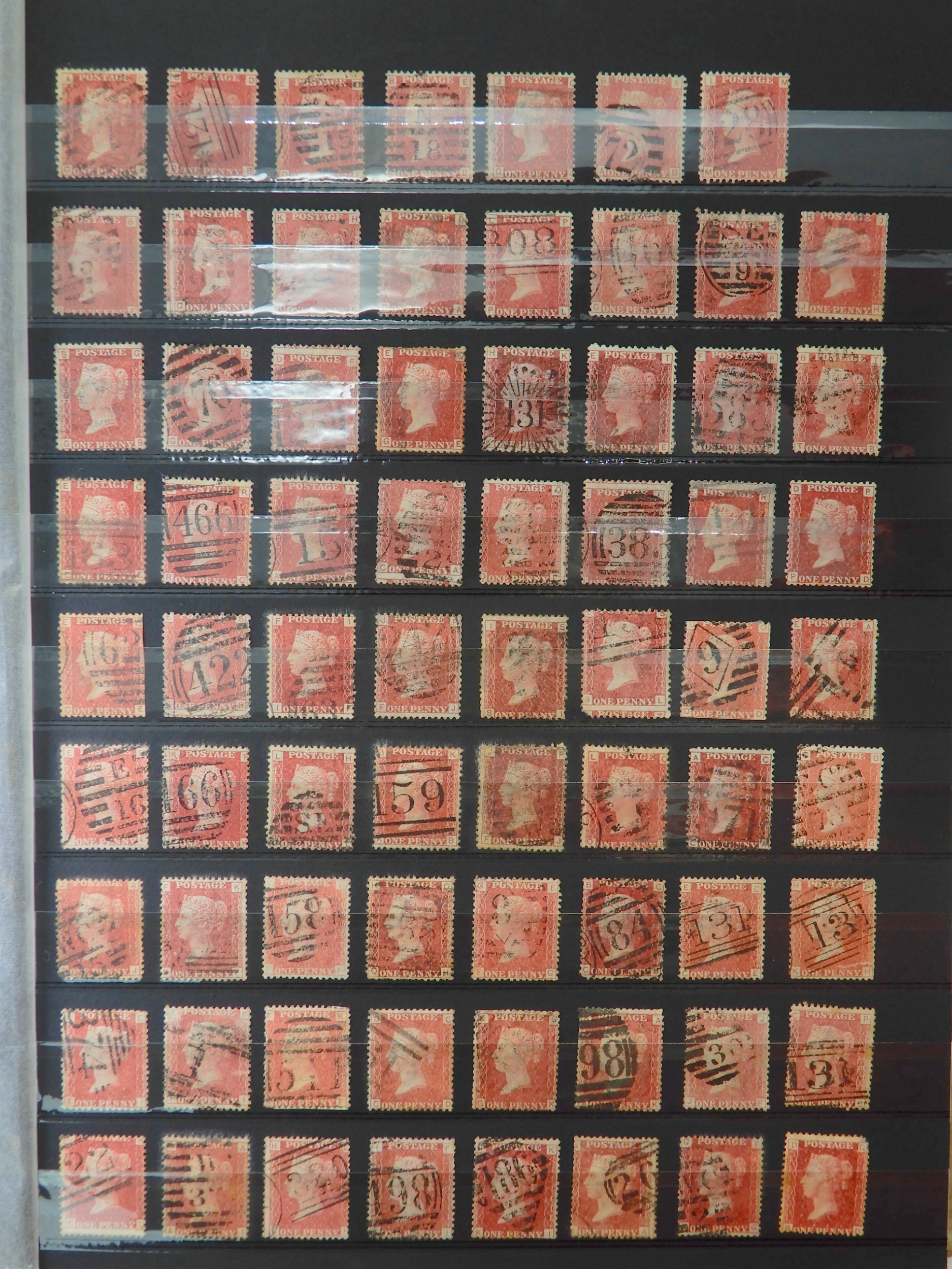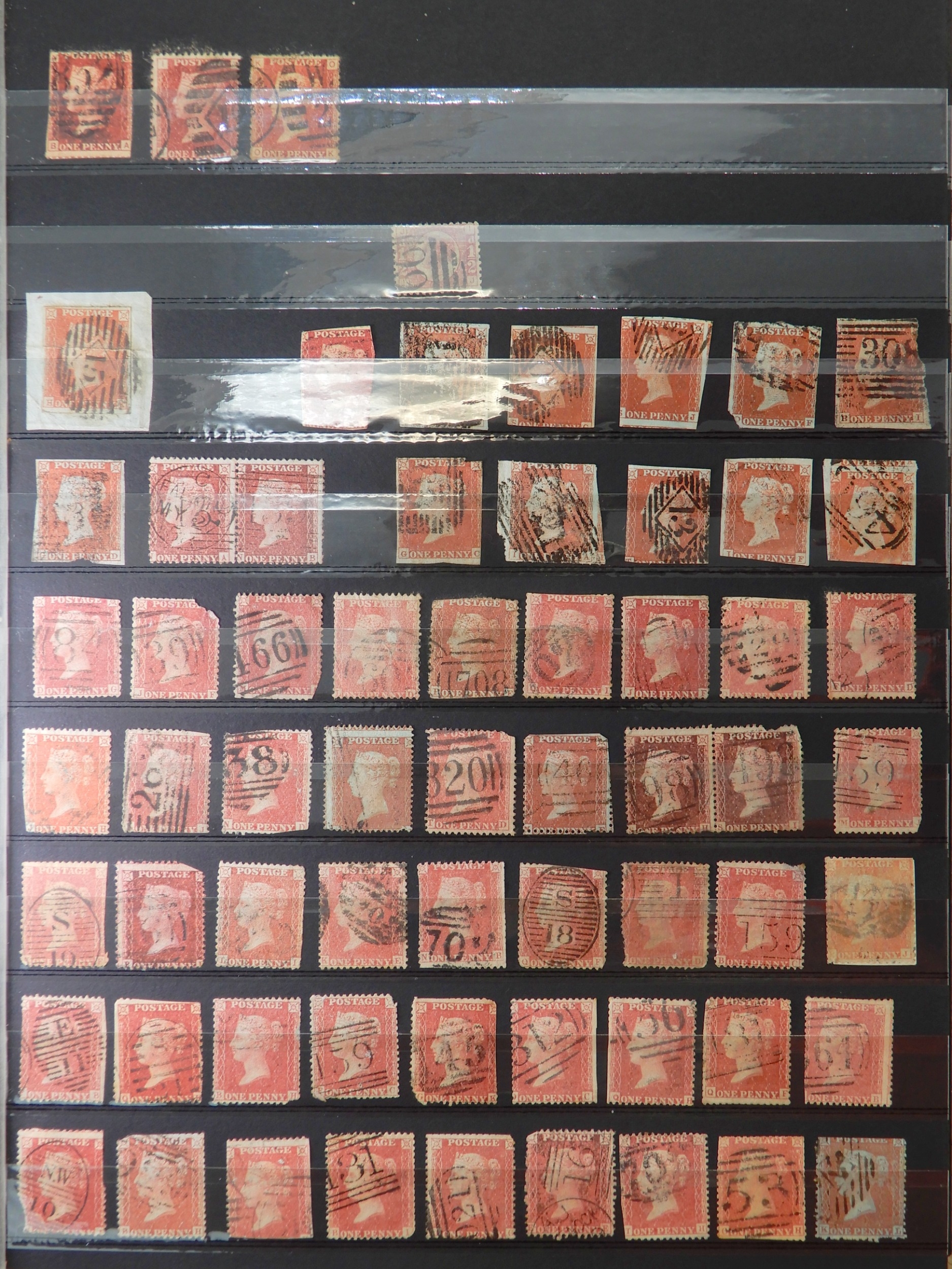 Great Britain Collection of 1d Reds, mainly SG 43 and 44, with plates up to 221 including much duplication, not all checked. Also some 1d Red Stars , again not checked.Over 500 stamps. Condition as per photos