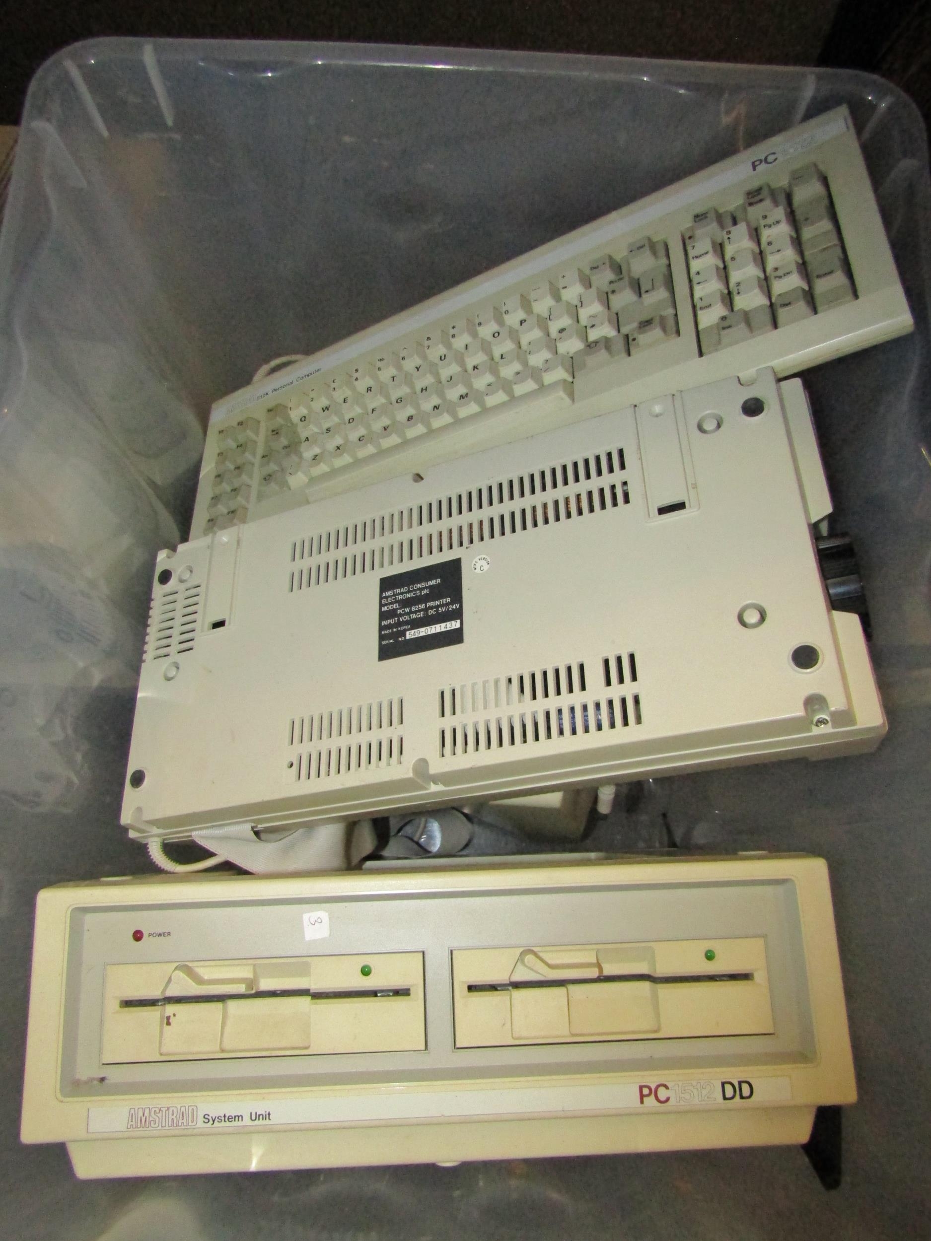 A vintage Amstrad 1512 PC 1512 personal computer, comprising system unit, monitor, keyboard and printer