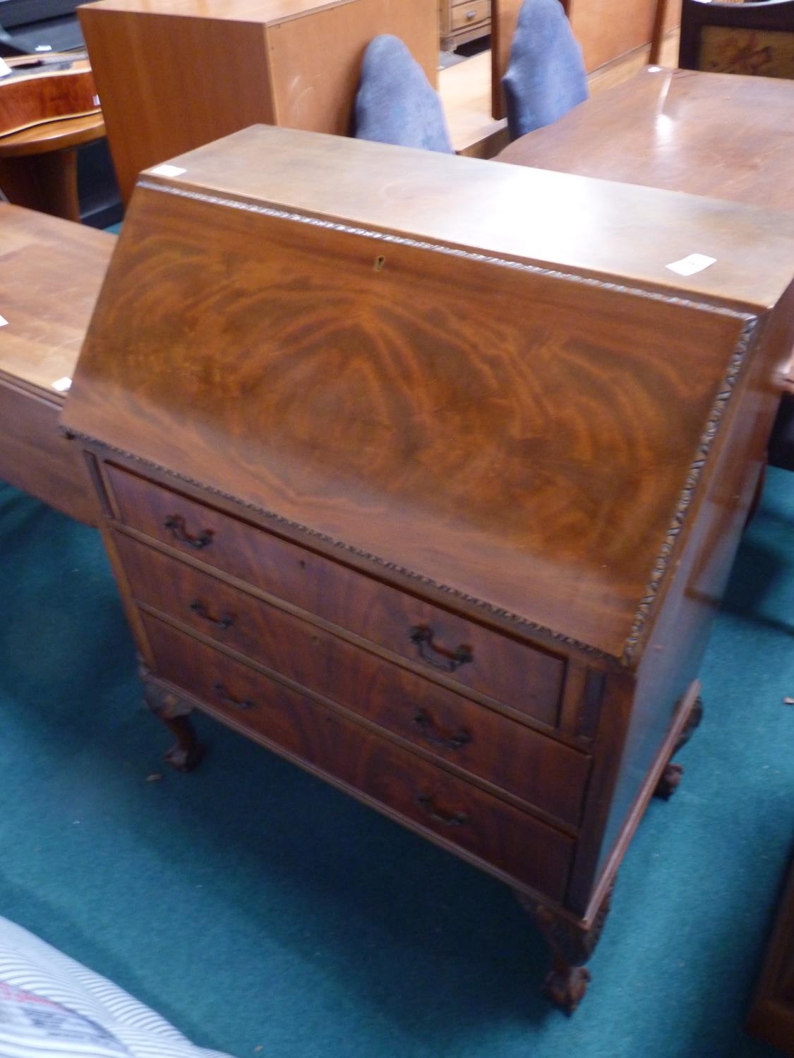 Edwardian mahogany bureau with ball and claw feet