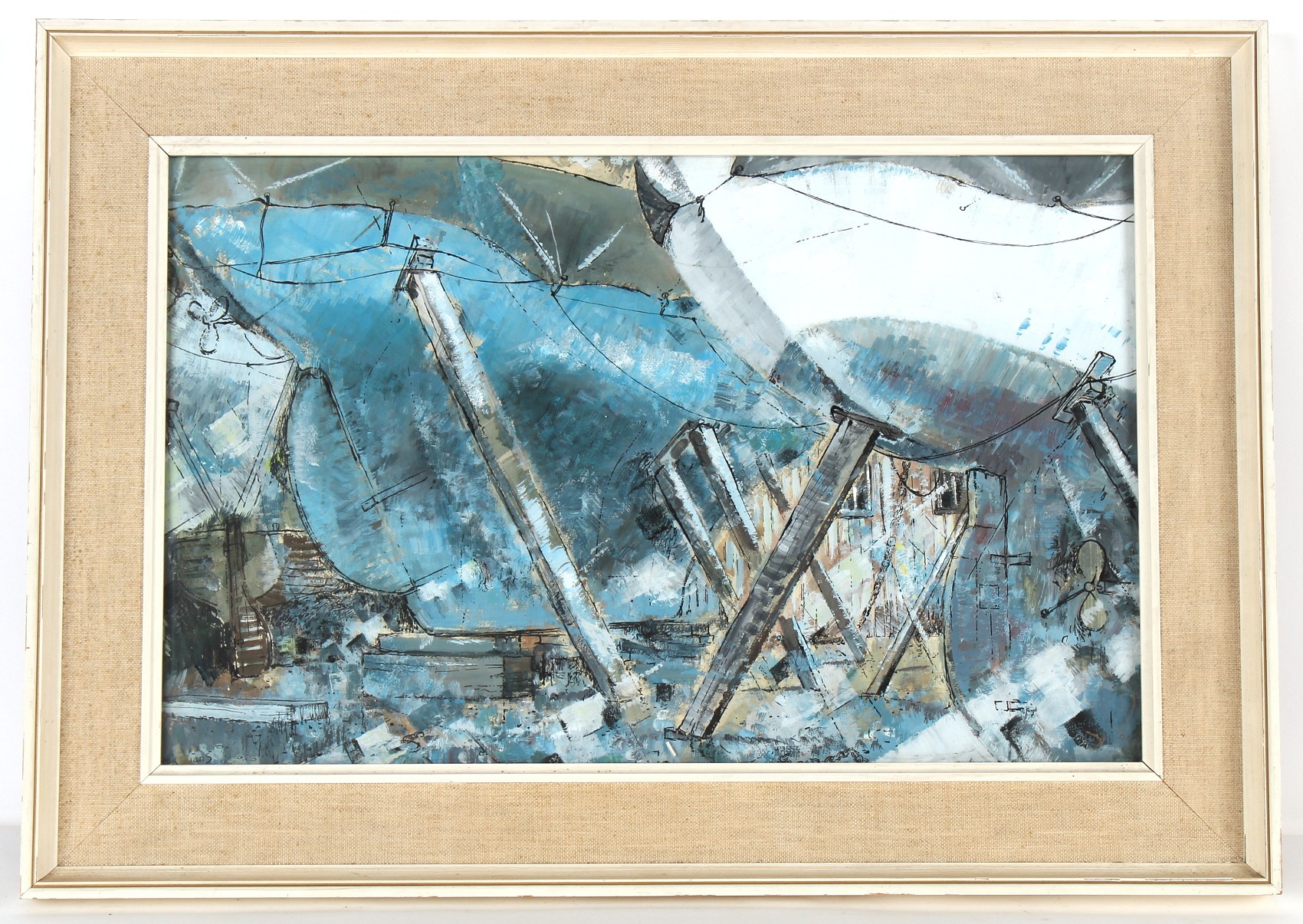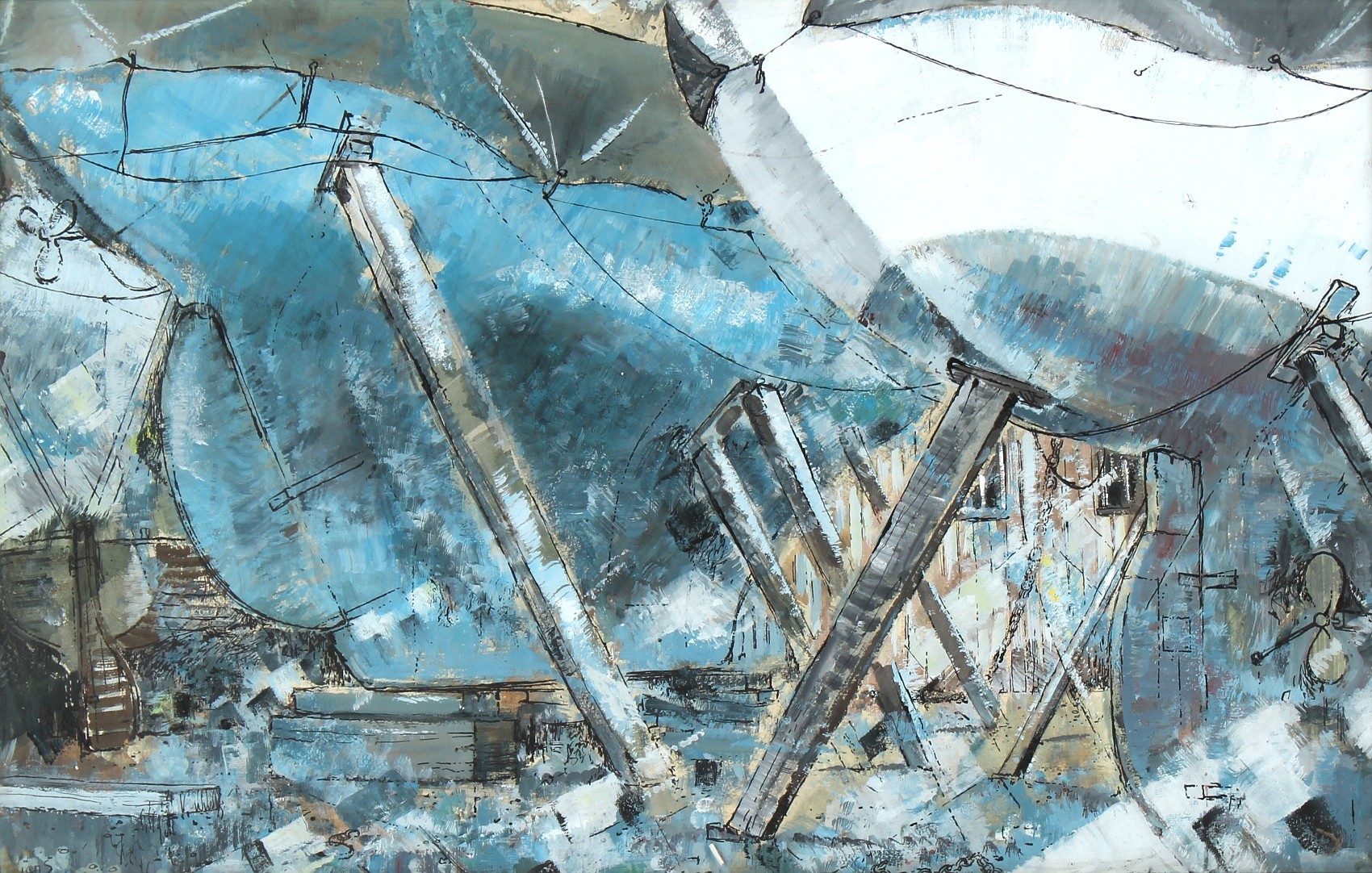 Property of a deceased estate - Ray Evans (1920-2008) - THE BOATYARD - oil, 13.6 by 21.45ins. (34.5 by 54.5cms.), in glazed frame - signed lower left.