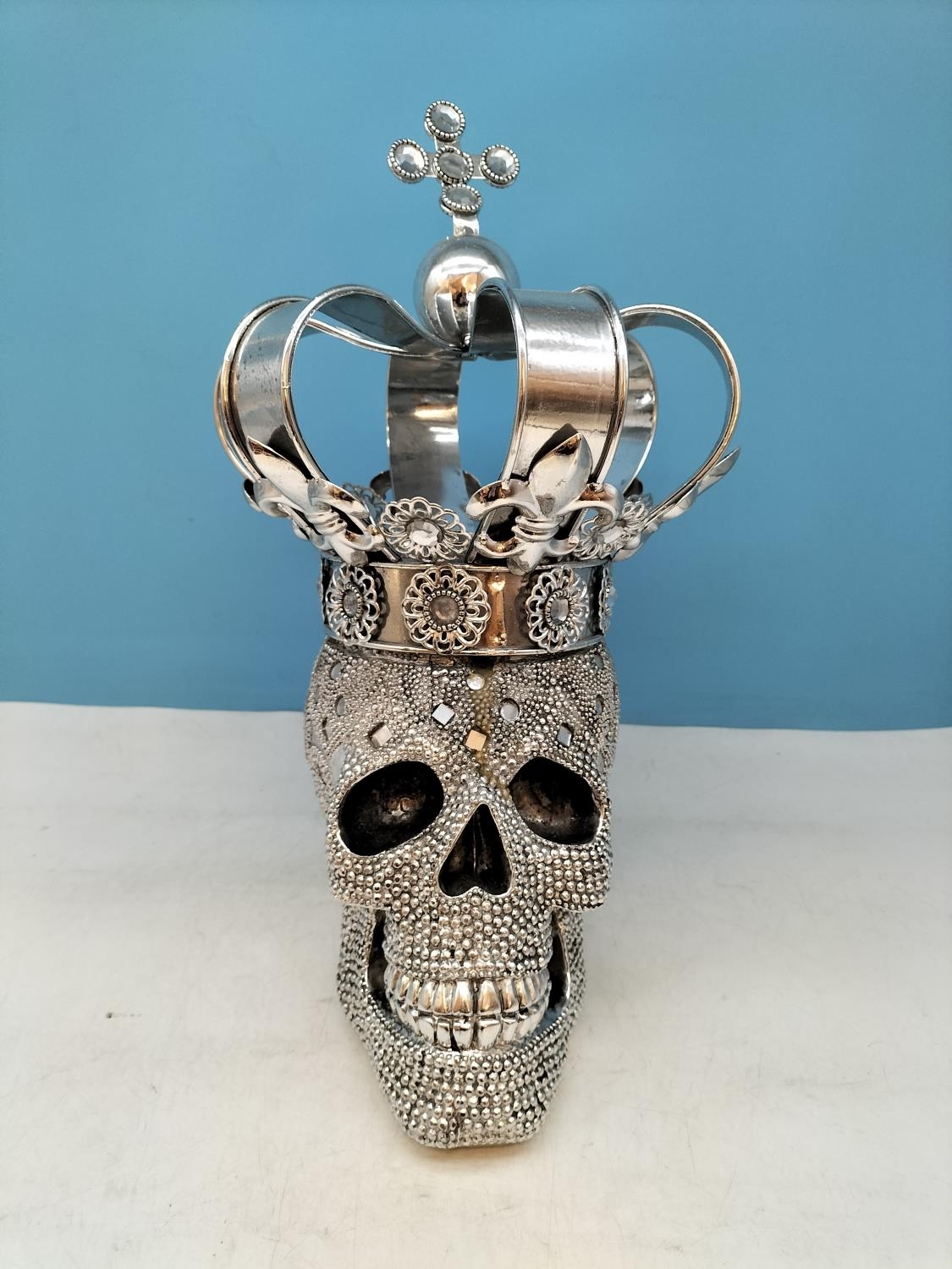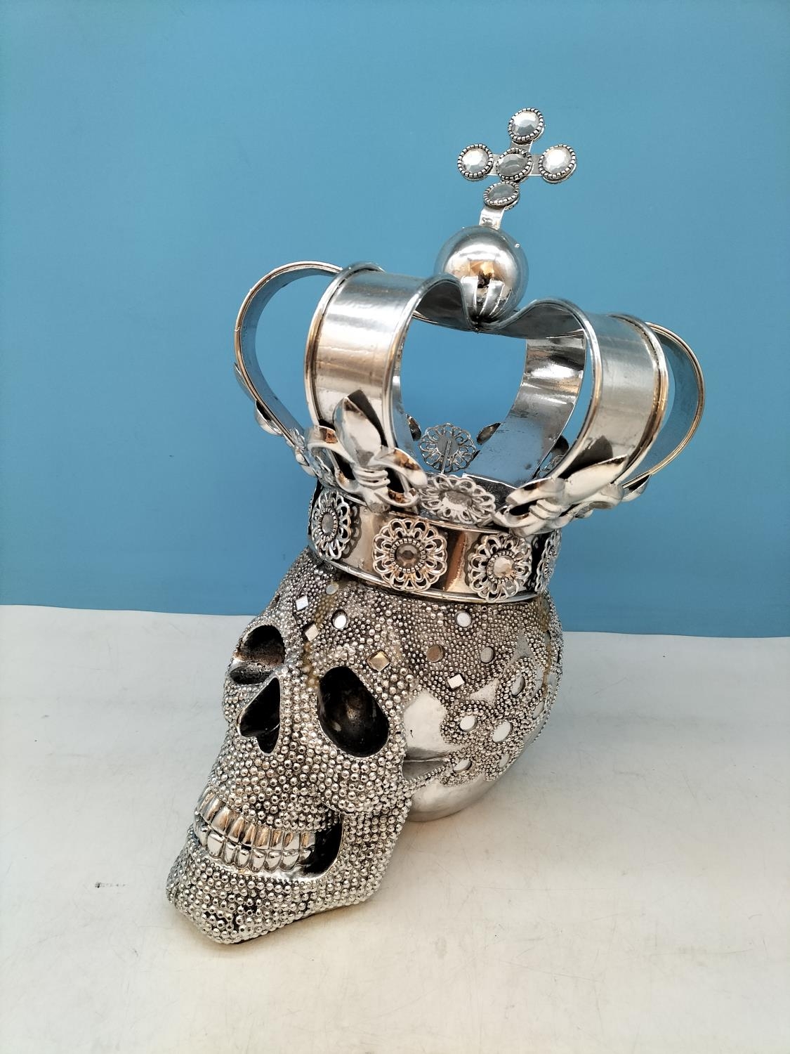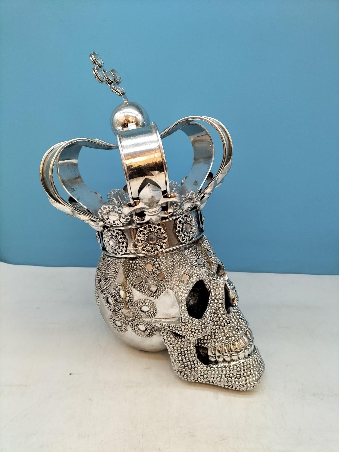 Large 40cm Silver Tone Studded Mosaic 'Fallen King' Crown/Skull Ornament.