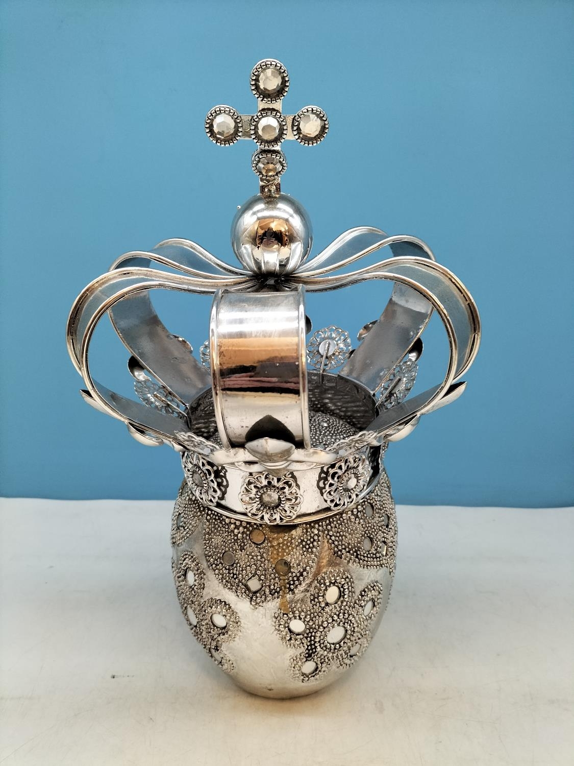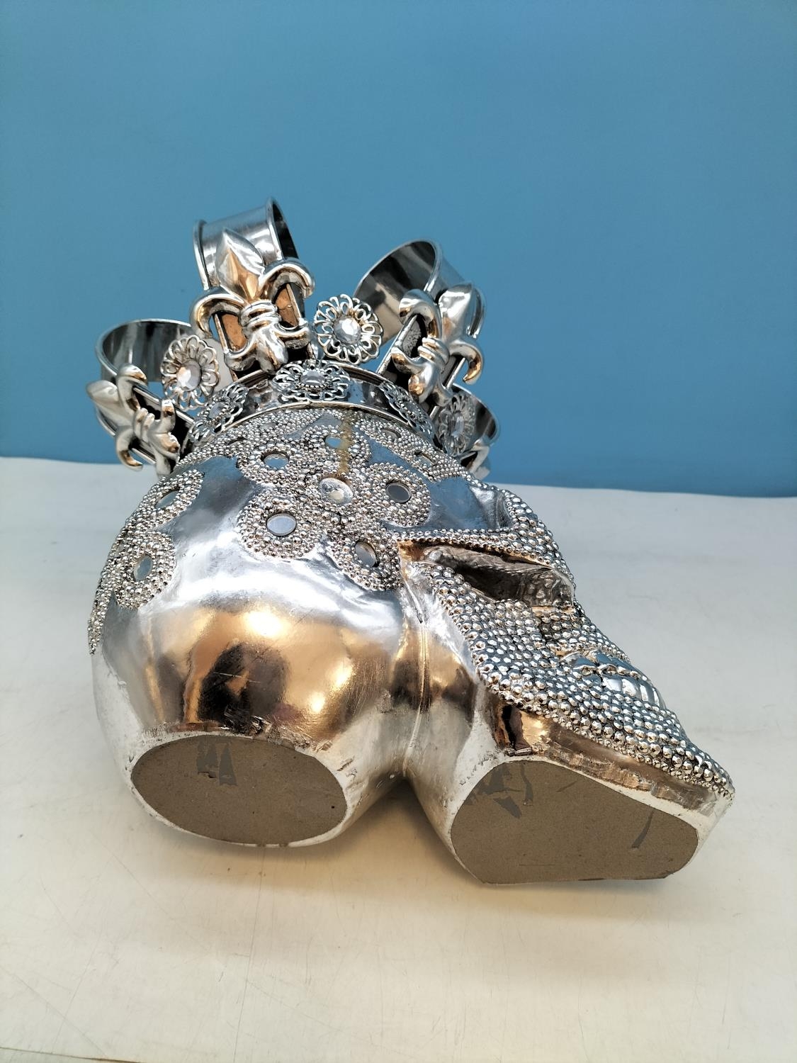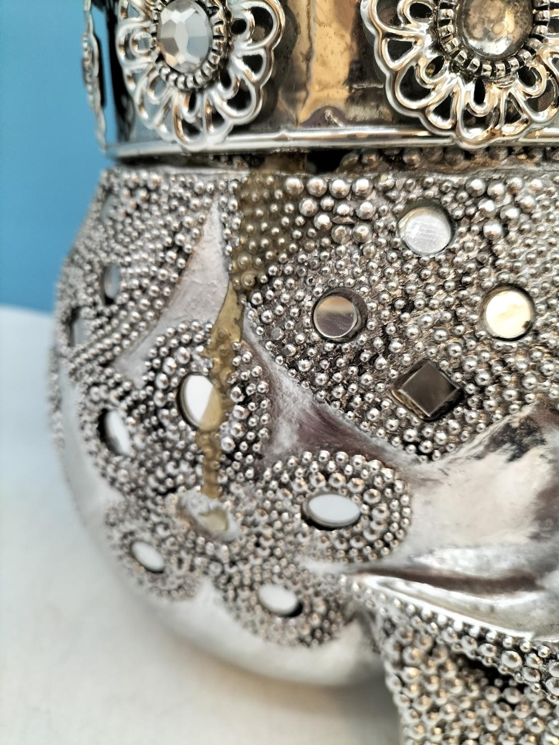 Large 40cm Silver Tone Studded Mosaic 'Fallen King' Crown/Skull Ornament.