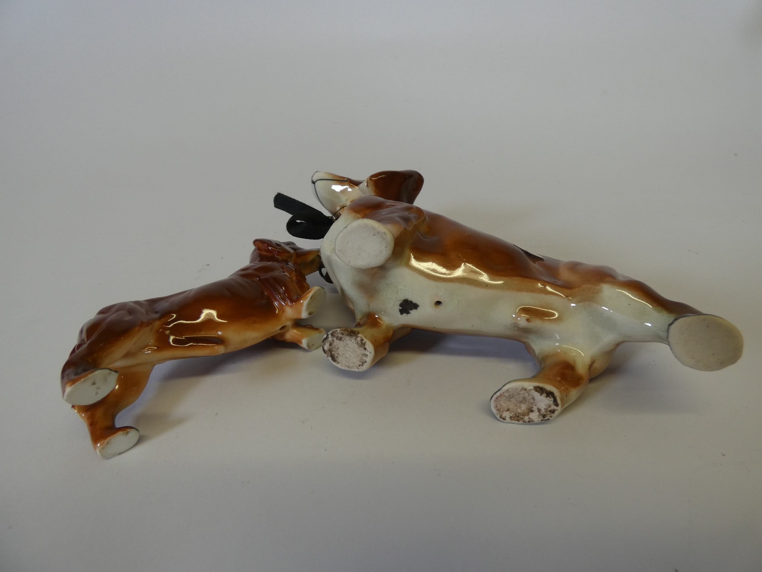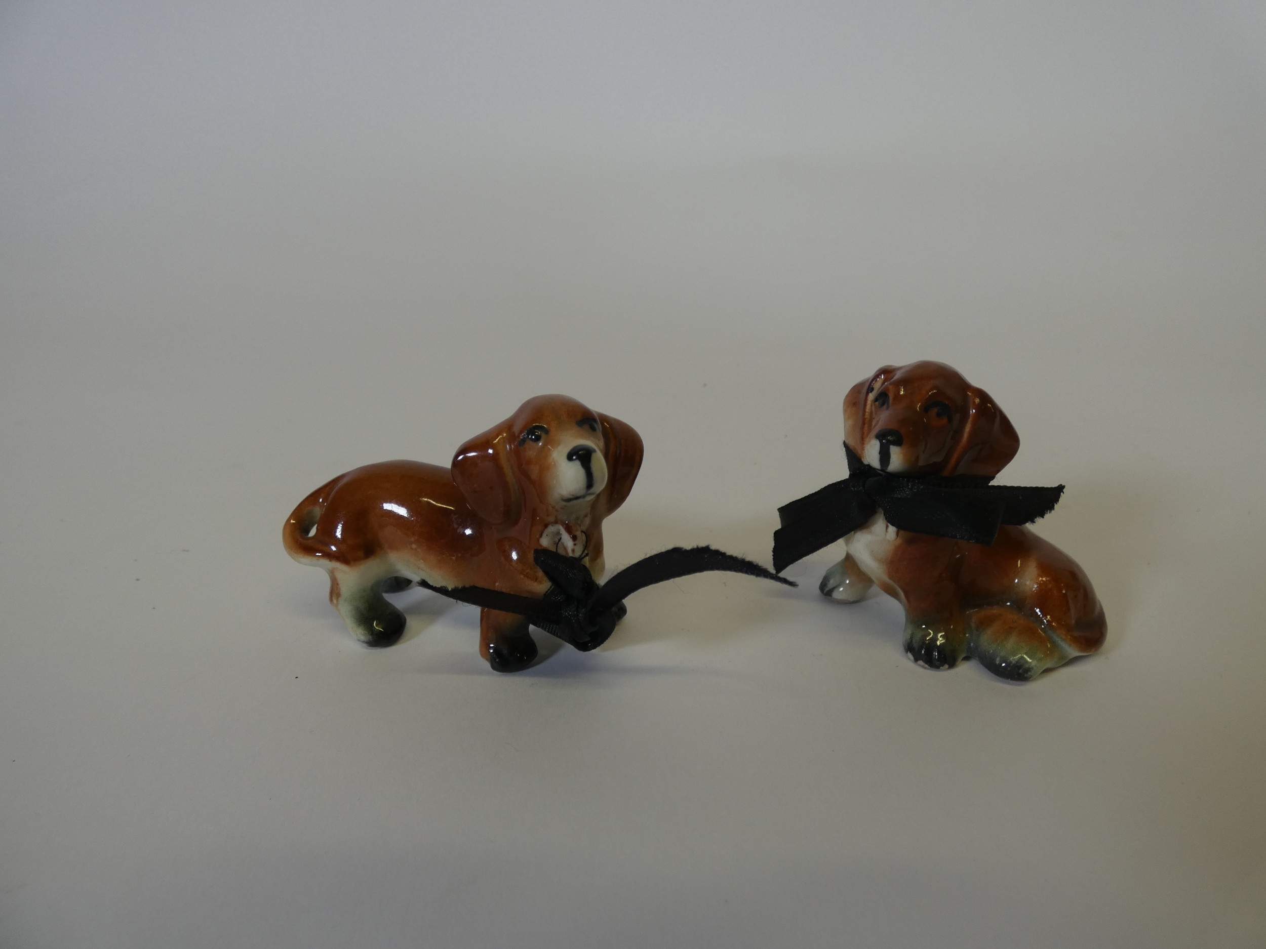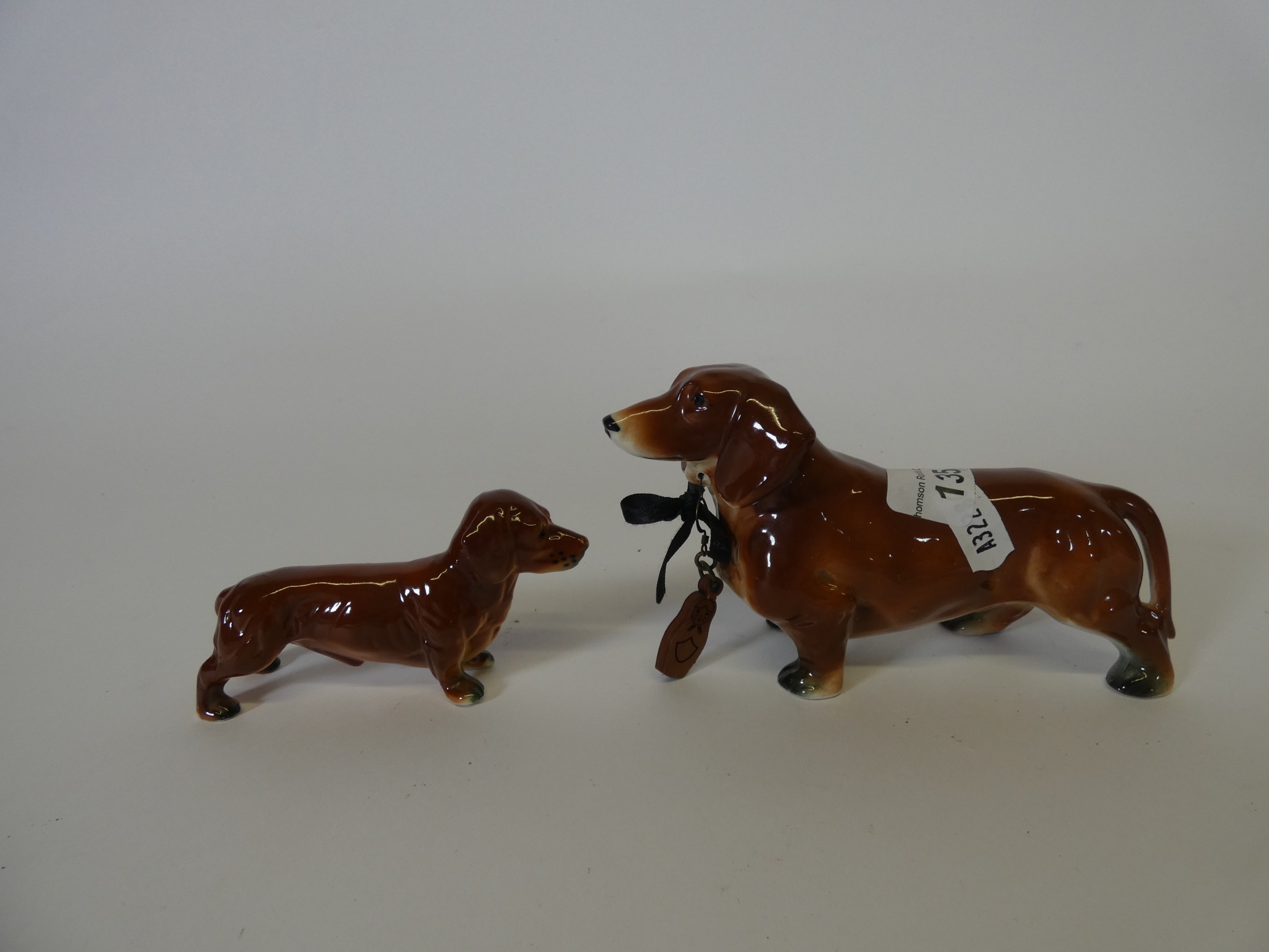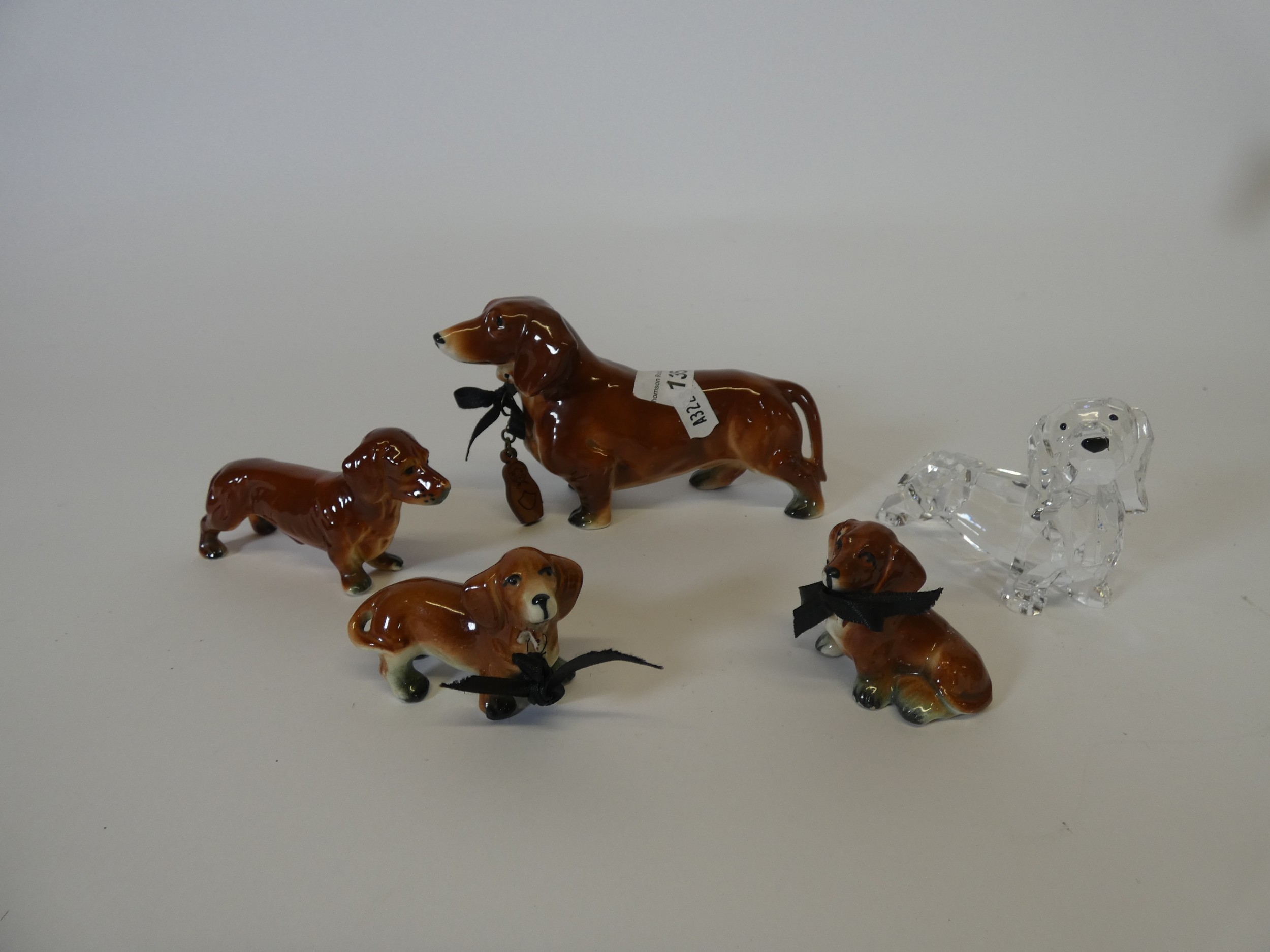 Group of graduated Dachshund figures, and another in glass. ...