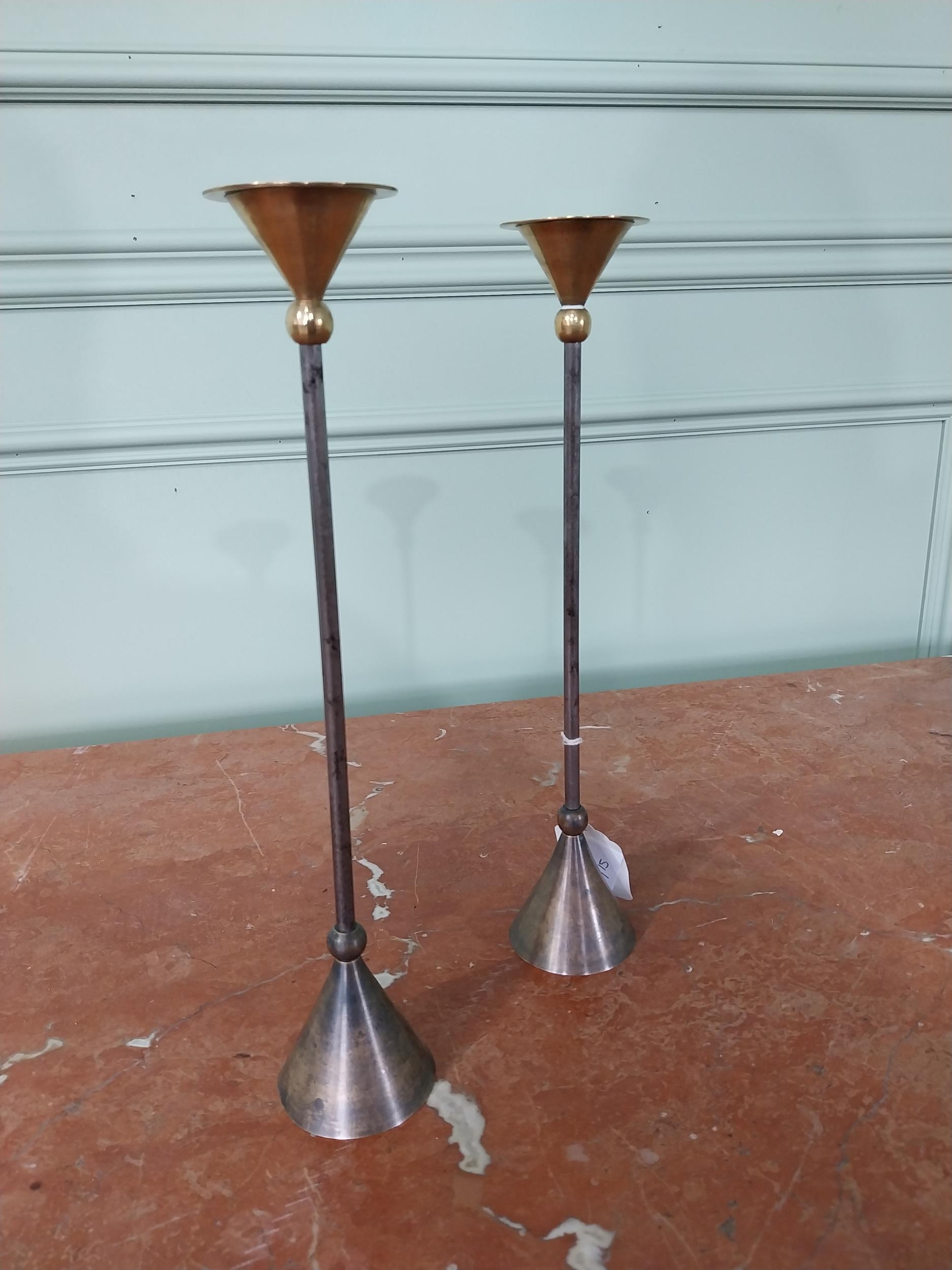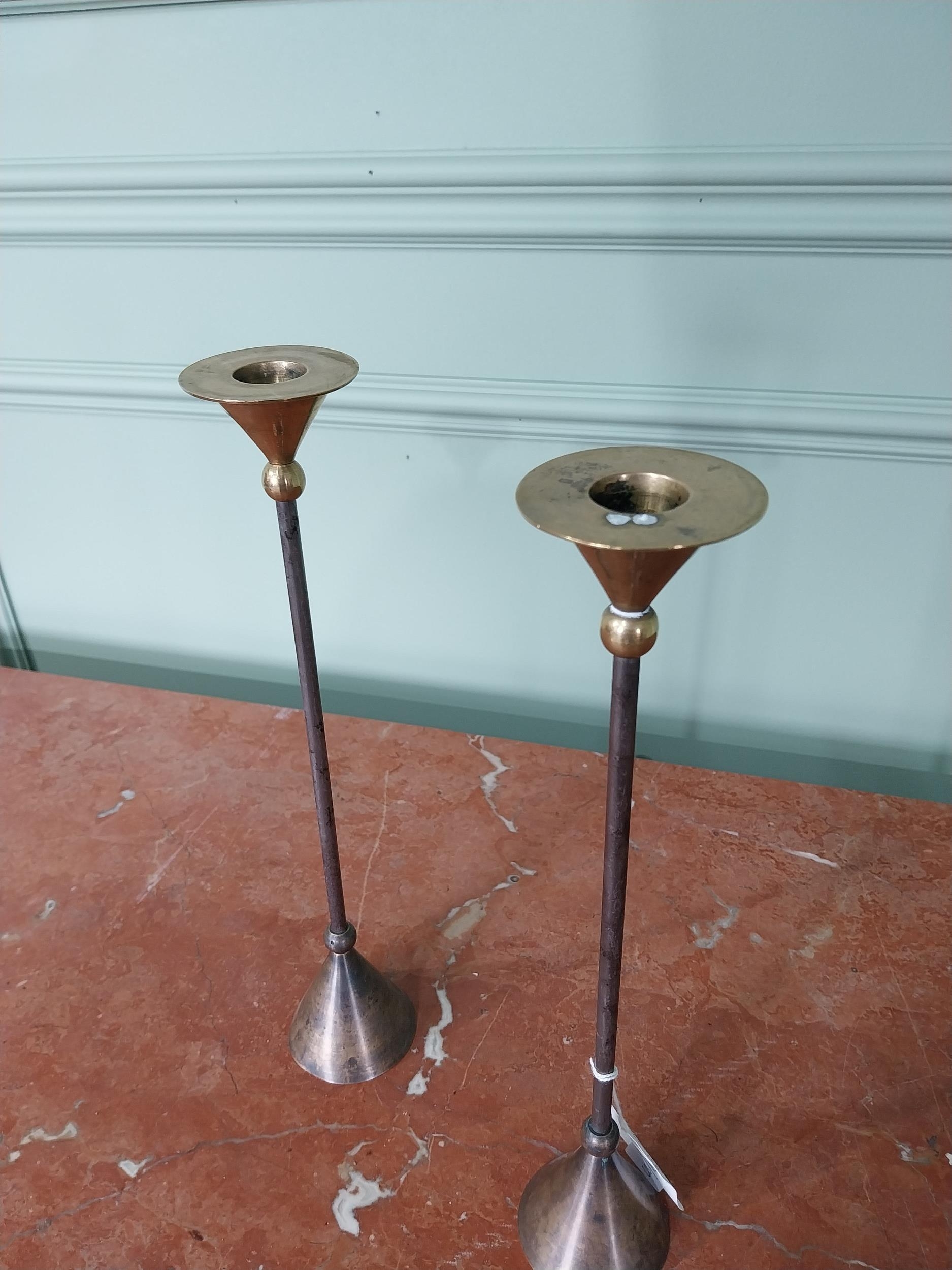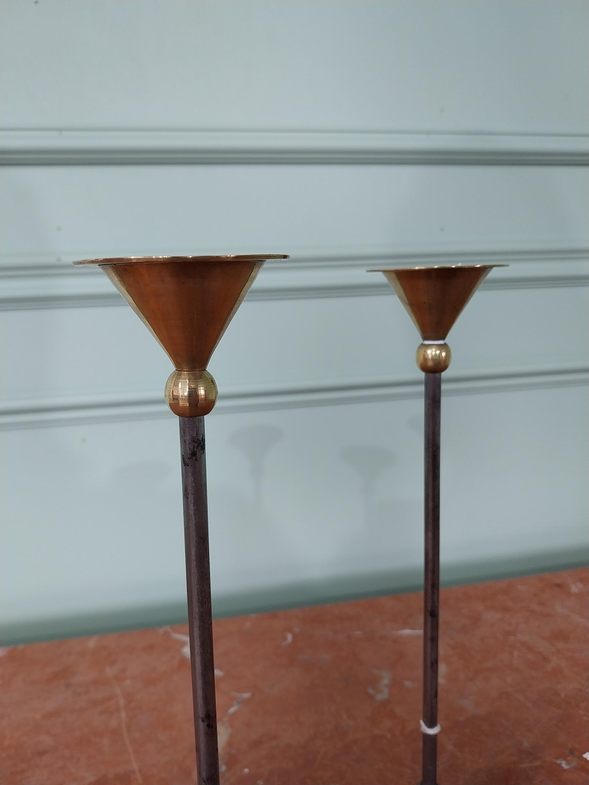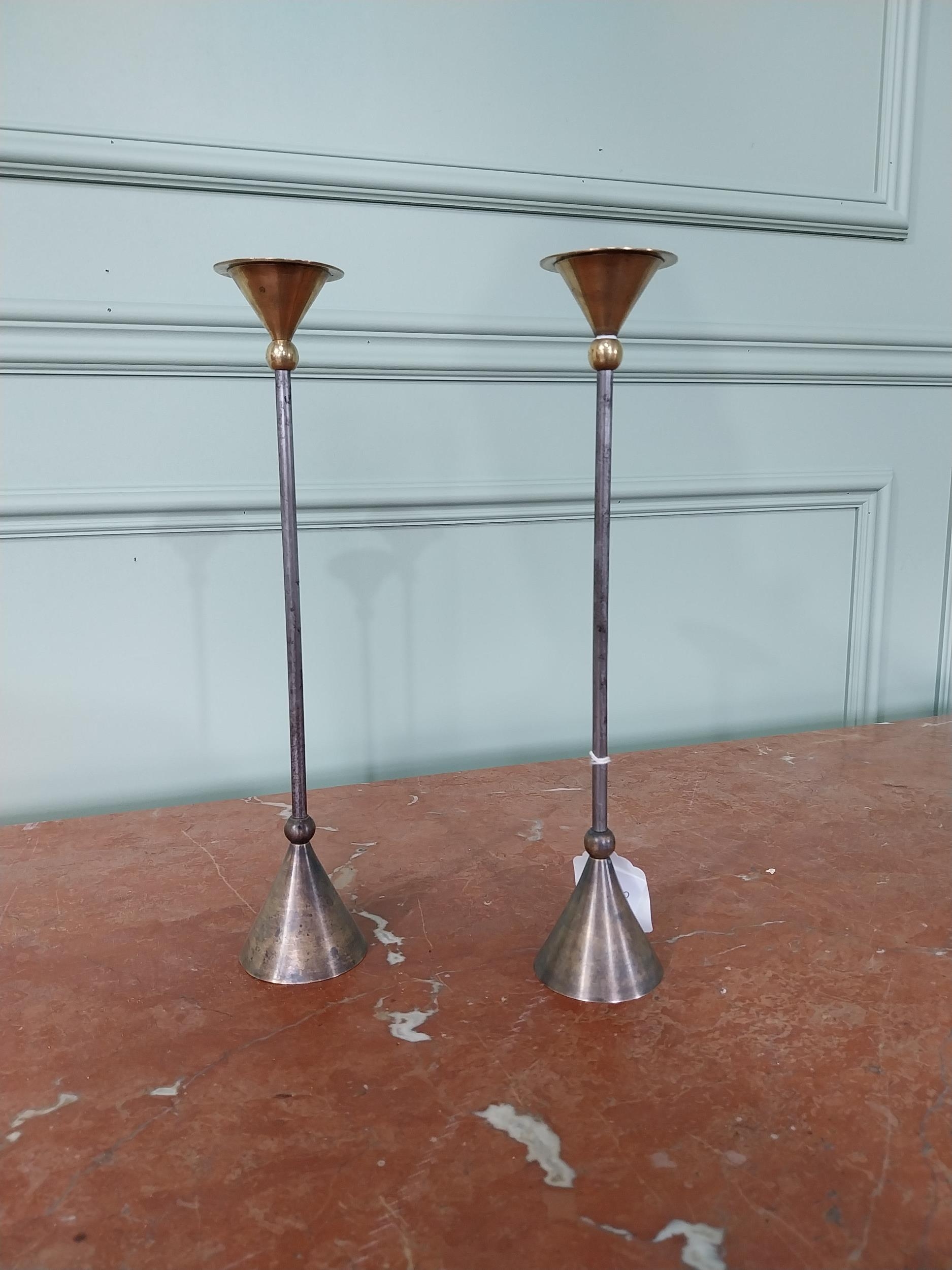 Pair of French 1960s Christian De Beaumont brass candlesticks {33 cm H x 7 cm Dia.}.